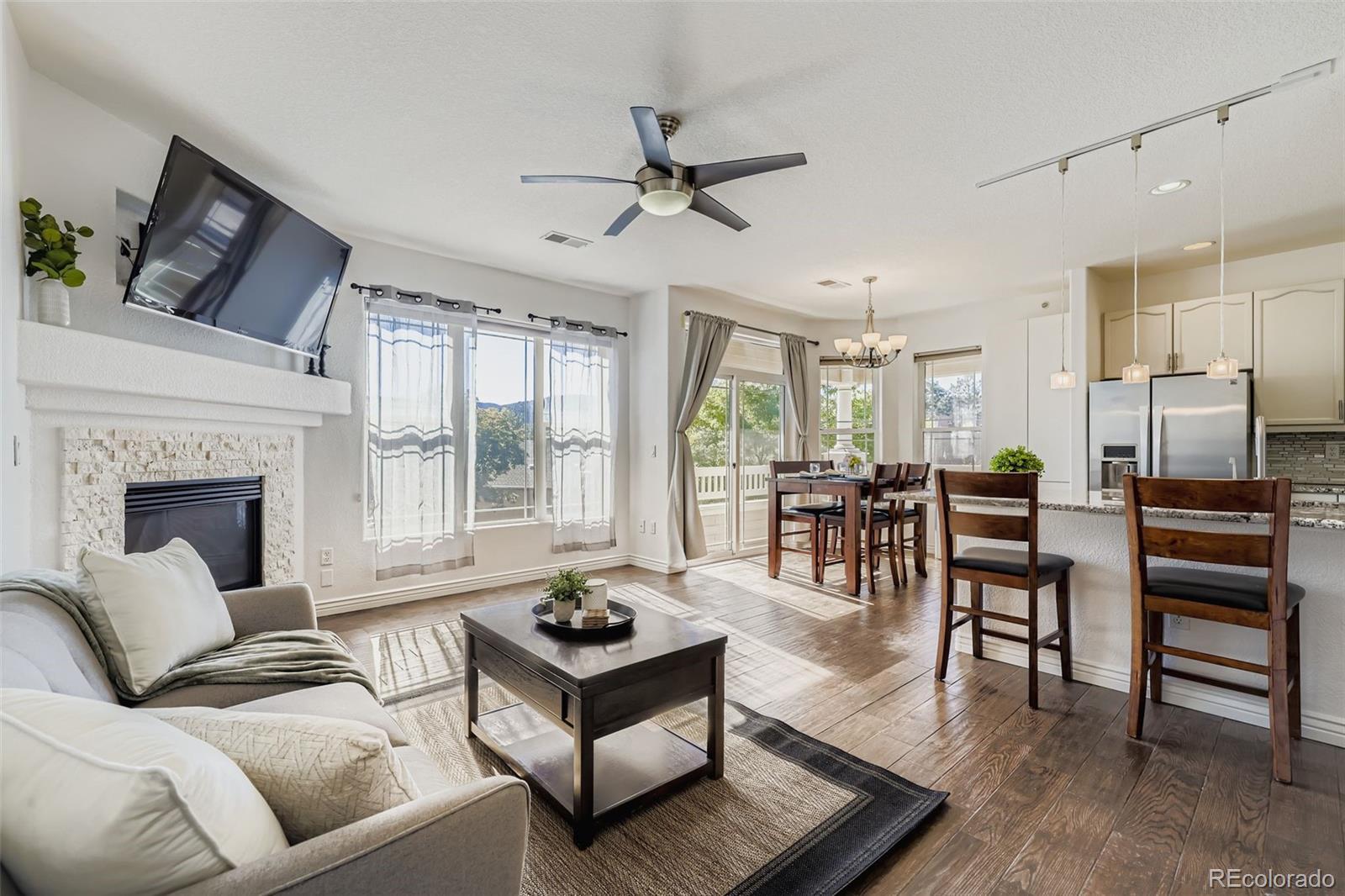Updated Littleton condo with a detached garage in a highly desirable location near Bear Valley, Ken Caryl, and the foothills. This move-in ready home offers low-maintenance living with fresh paint and new carpet throughout, plus brand new windows in the main living area and primary bedroom that fill the space with natural light. The open floor plan features a spacious living room with a cozy fireplace, a functional kitchen with ample counter space, and a private balcony ideal for relaxing or entertaining. Generously sized bedrooms and in-unit laundry add everyday convenience and value. Ideally located near C-470, Santa Fe Drive, and Wadsworth Boulevard, this Littleton condo provides easy access to downtown Denver, the Denver Tech Center, Chatfield State Park, and nearby mountain recreation. Enjoy close proximity to hiking and biking trails, neighborhood parks, shopping, dining, and daily conveniences. Perfect for first-time buyers, downsizers, or anyone seeking a lock-and-leave condo with a garage in Littleton, this home delivers comfort, location, and Colorado lifestyle in one exceptional opportunity.