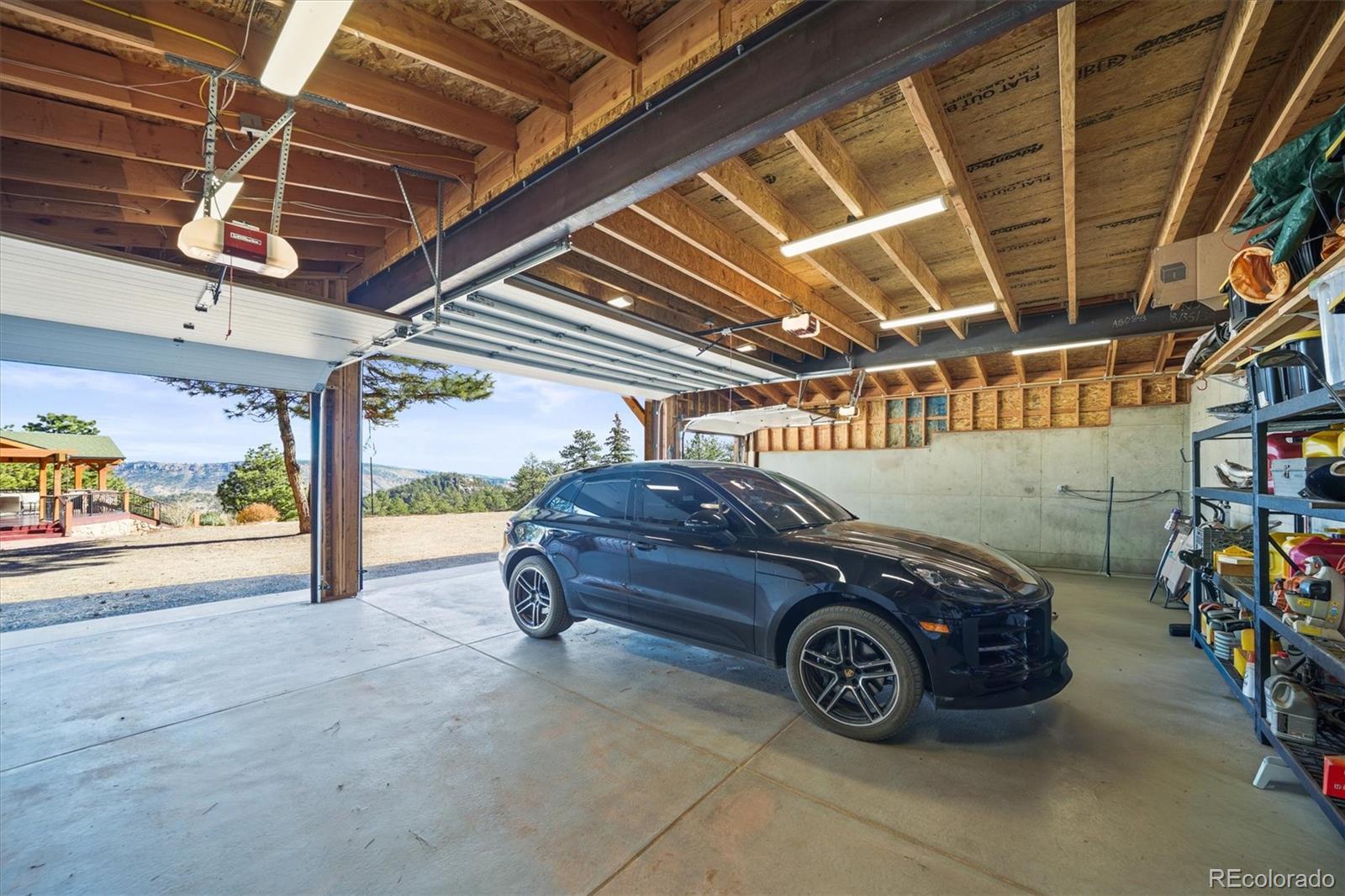 Dreamy Mountain Retreat on 33+ private acres with breathtaking mountain, valley and Denver city-light views from every room. You'll be intrigued by the Vail and Aspen inspired colors and design with stunning architecture including some timber-frame elements, hardwood floors, exposed beams and 9' ceilings. Sophisticated kitchen adjoins the dining area with fireplace and expansive windows framing the spectacular scenery. Wrap-around deck is perfect for outdoor entertaining or enjoying wildlife. Or cozy up in the living room with fireplace that provides a welcoming space for winter evenings while a separate living area extending to the covered porch that invites morning coffee or quiet time. Flexibility to use main floor 4th bedroom with ¾ bath as study or office. Bask in the elegant primary bedroom featuring en-suite bath, 2 closets & balcony overlooking the panoramic views. 2nd floor with 2 additional bedrooms, full bath and staircase leading to a finished loft — an ideal tree-house-style office or extra living space. There's a must-have finished walkout basement with rec room, office (could be non-conforming 5th bedroom) or easily convert to an ADU (has 2nd sink & laundry hook up). Car enthusiasts, hobbyists or those seeking a workshop will appreciate the detached 4-car garage (1,160 SF) with steel beams, concrete walls, cedar siding, COR-TEN metal roof. Breezeway-attached 3-car garage includes built-in shelving, workbench, 220V & 2 mini-splits for heating and cooling. The home is thoughtfully equipped with Central AC, two furnaces, tankless water heater and a high-producing domestic well water for effortless comfort. Nestled among natural forest, open meadows and rock outcroppings, this property feels like a private state park. Just outside Boulder with the hip town of Lyons just minutes away and larger shopping in Boulder or Longmont just a short drive further. A true sanctuary that offers privacy, beauty and an unmatched lifestyle. Hurry this one won't last long!