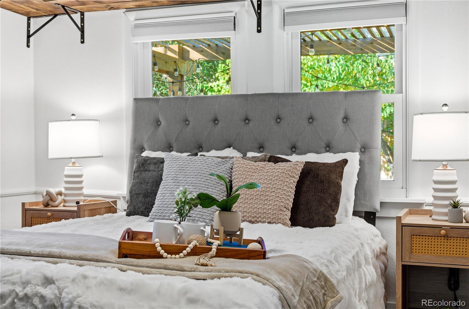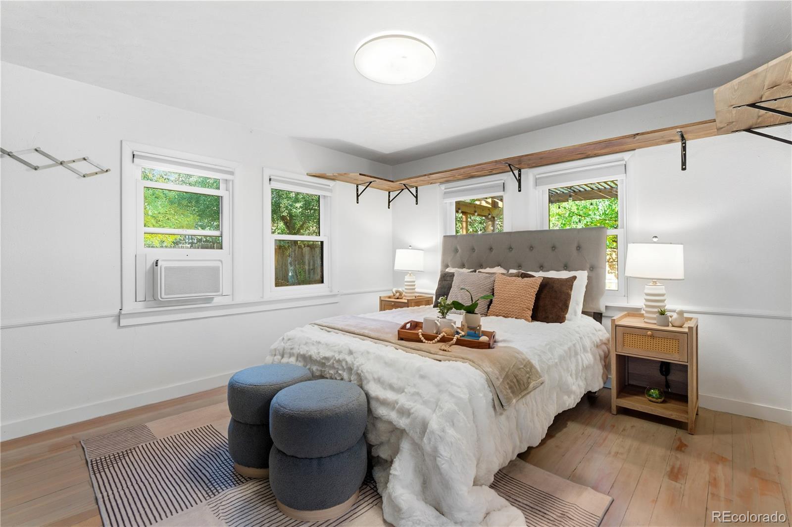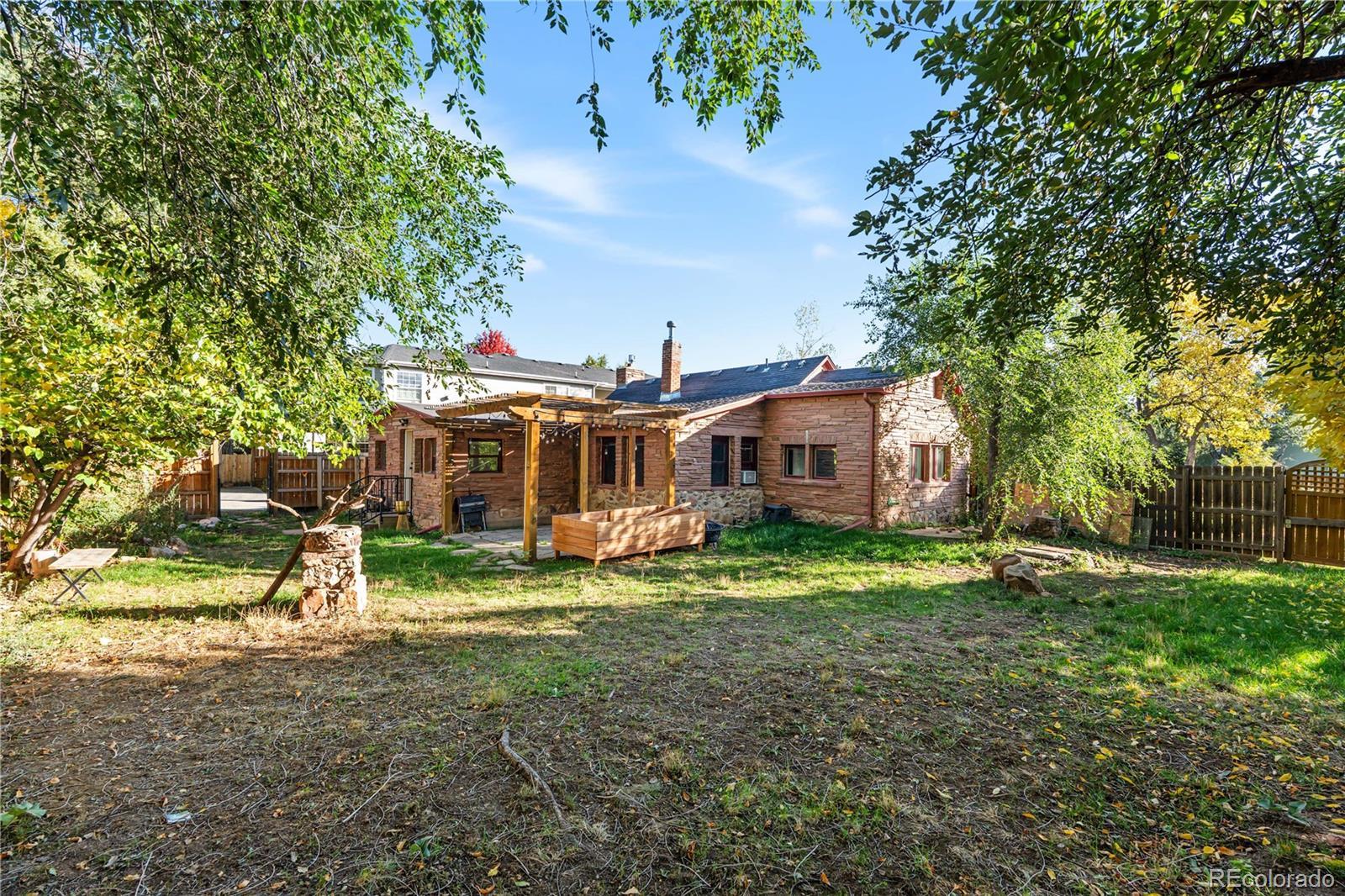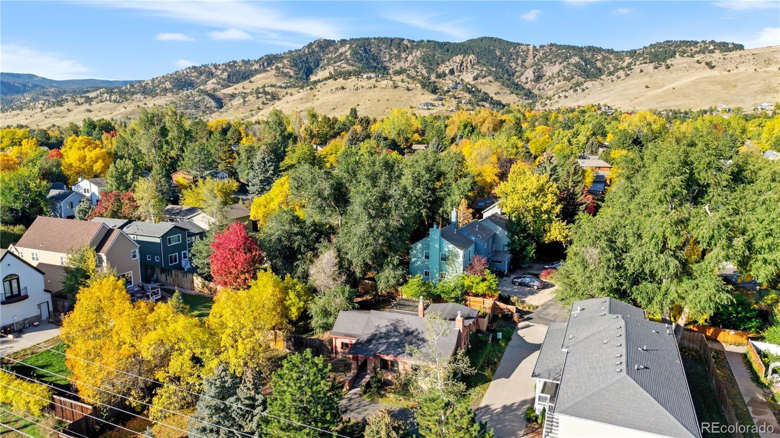 Boulder Charm with 1940s Character on a Spacious ¼-Acre Lot Tucked in the desirable Wonderland Hills neighborhood, just steps from Wonderland Lake, this beautifully updated 2-bedroom, 2-bath home with a versatile flex room blends modern comfort with classic 1940s charm—all on a rare 0.25-acre lot. A welcoming flagstone exterior sets the tone, complemented by mature trees and a large front lot with ample off-street parking and space for recreational vehicles. Inside, warm wood floors, colorfully designed wallpaper, and timeless details create a cozy, inviting feel. The main bedroom and a bright guest bedroom (currently used as an office with a built-in Murphy bed) each feature cedar closets and a new swamp cooler for added comfort. The third room—a whimsical, wallpapered space with a desk and chair—has no closet but offers endless possibilities as a nursery, guest space, creative studio, or additional office. The main renovated bathroom boasts luxurious marble tile flooring and a quartz-topped vanity, while the second bathroom offers a relaxing soaking tub with custom lighting. The updated kitchen pairs contemporary finishes with period character, and the unfinished basement provides laundry facilities plus abundant storage. Out back, a serene, private oasis awaits—complete with a flagstone patio and charming pergola—ideal for entertaining, gardening, or simply enjoying Boulder’s sunny days. With trails, parks, shops, and cafés nearby, this home offers the perfect mix of outdoor space, style, and location near Boulder’s foothills.