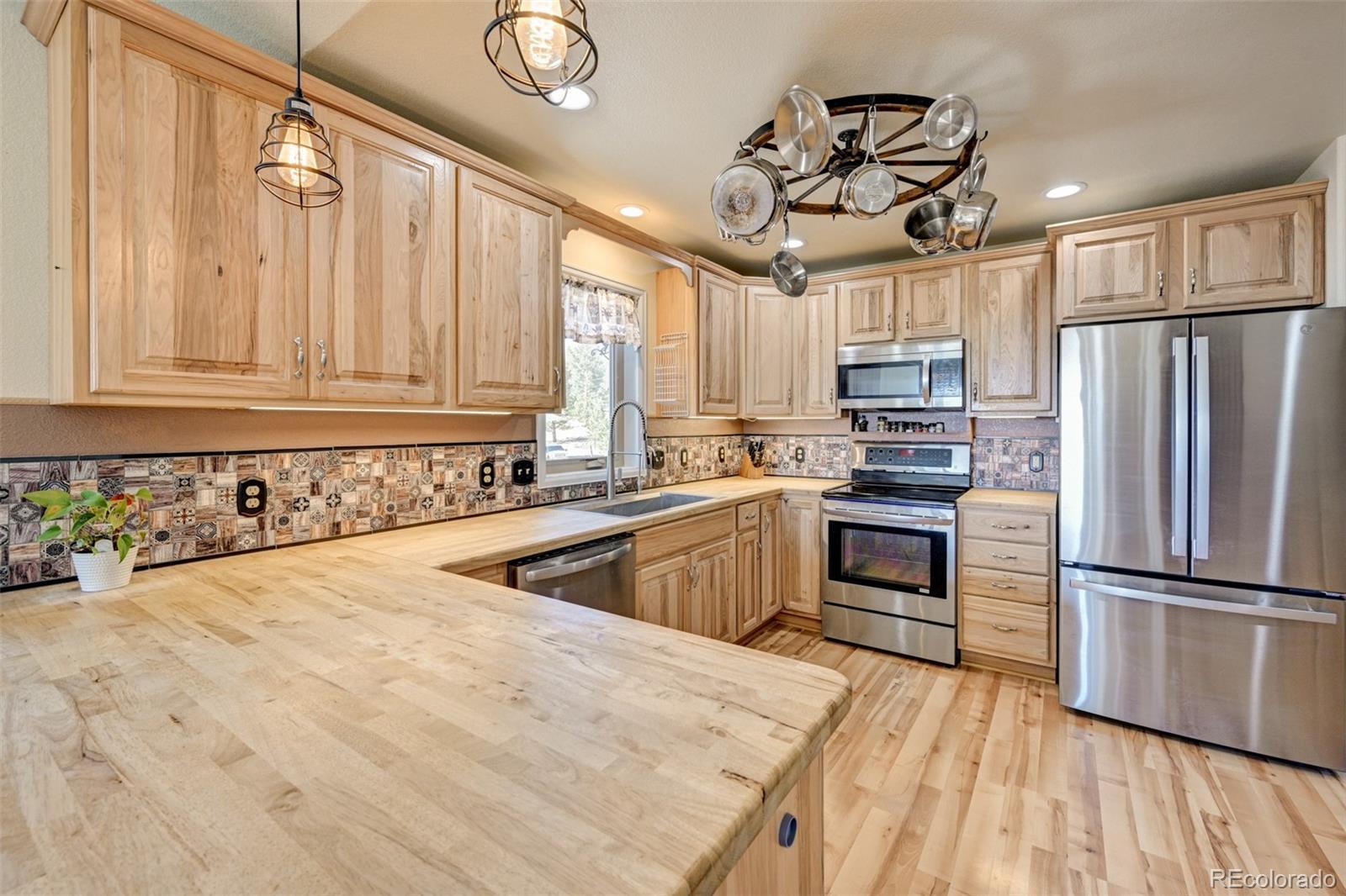 This well-kept 3-bedroom, 2-bath custom home offers the perfect blend of comfort, charm, and mountain living. Built in 2013 and sitting on 3 peaceful acres, you'll love the wide-open views of Black Mountain and the surrounding meadows filled with aspen and ponderosa pines. Whether you're looking for a full-time residence or a weekend getaway, this home is ready to go. Inside, the home features beautiful wood floors, large windows throughout, and vaulted ceilings in the living room and primary bedroom letting in tons of natural light and bringing the outdoors in. The kitchen is well thought out with high end cabinetry, new butcher block countertops, under-cabinet lighting, stainless appliances, and a pantry. Both bathrooms are finished with stylish tile and flooring, and the oversized garage is insulated and heated. Outside, there’s plenty to enjoy. A patio area is perfect for relaxing and soaking in the peaceful views. The property also includes three sheds—two with electricity—plus a chicken coop and a greenhouse. One shed even has a covered area for parking your 4-wheeler, side-by-side, or storing canoes and kayaks. There's also an RV hookup with water and septic access. Located in Ranch of the Rockies (RORA), you’ll also have access to great community amenities like horse pastures, a dog run, pavilion, burn pit, trash compactor, and a stocked fishing reservoir. Campers are welcome too, with a gated storage area and dump station available. Plus, all roads are county-maintained for easy year-round access. If you're looking for peaceful mountain living with room to roam and plenty of extras, this home has it all.