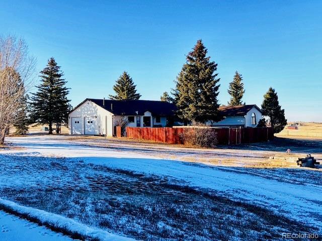 Experience the freedom of flight and the serenity of country living in this aviation-ready 3-bedroom, 2.5-bath ranch retreat located within the private Kelly Air Park Community in Elbert County, Colorado. Perfect for pilots and aviation enthusiasts, the property sits on over 5 acres with sweeping views of Pikes Peak, the Front Range, and open plains, and offers direct access to a recently resurfaced 3,800' × 44' VFR runway plus a crosswind runway. A standout feature is the 50' × 50' (2,500 sq. ft.) aircraft hangar with loft space, accommodating up to three airplanes and offering flexible use for office, studio, or storage. From the hangar, an airplane can be easily towed or taxied directly to the runway, making flight preparation simple and efficient. Inside the home, enjoy updated kitchen countertops, a cozy wood-burning fireplace, and recent upgrades such as a newer roof, gutters, hot water heater, and a spacious composite deck. Located a short flight or drive from Denver and Colorado Springs, this hangar home blends comfort, privacy, and convenience—ideal for those seeking a fly-in community retreat with runway frontage and space for multiple aircraft. Descend on this property before the opportunity soars away!