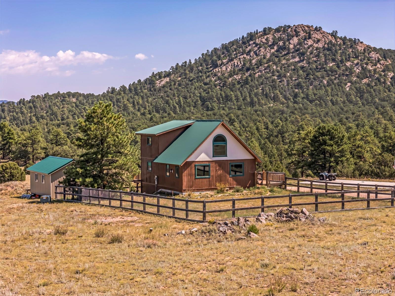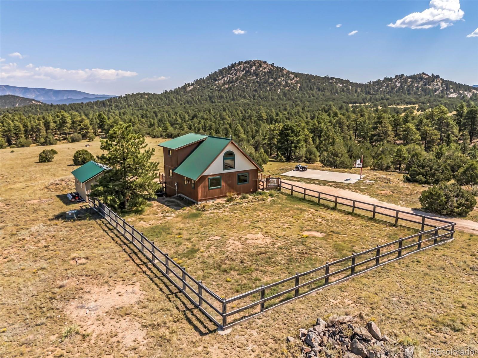 UPDATED MOUNTAIN HOME / 35 ACRES BORDERING 14,000+ ACRES BLM -- Nestled on 35+ treed acres bordering BLM, with sweeping 360° mountain views and direct access to the Grape Creek Wilderness Area, this beautifully updated 3-bedroom, 2-bath, 2,120 sq ft home perfectly blends comfort and adventure. The bright, updated kitchen features granite countertops, an island, and stainless steel GE appliances, while the spacious 5x13 pantry with adjustable shelving offers excellent storage and room for a deep freeze. The newly finished walk-out basement adds flexible living space, ideal for a second living room or guest area, and includes a stunning 8x13 custom walk-in closet with granite countertops. A cozy propane fireplace, relaxing Jacuzzi tub, and a mix of hardwood, carpet, and luxury vinyl flooring create a warm and inviting feel. Energy-efficient 2x6 walls, baseboard heat, metal roofing, and fresh paint inside and out add peace of mind. Outside, enjoy a 384 sq ft (16x24) barn/shed with loft, a 24x40 concrete pad ready for a barn or garage, a generator-ready pad, and two owned propane tanks (1,000 & 250 gal). End your day on the wraparound deck, taking in the views while pets enjoy the large fenced dog run -- your perfect Colorado mountain retreat!
