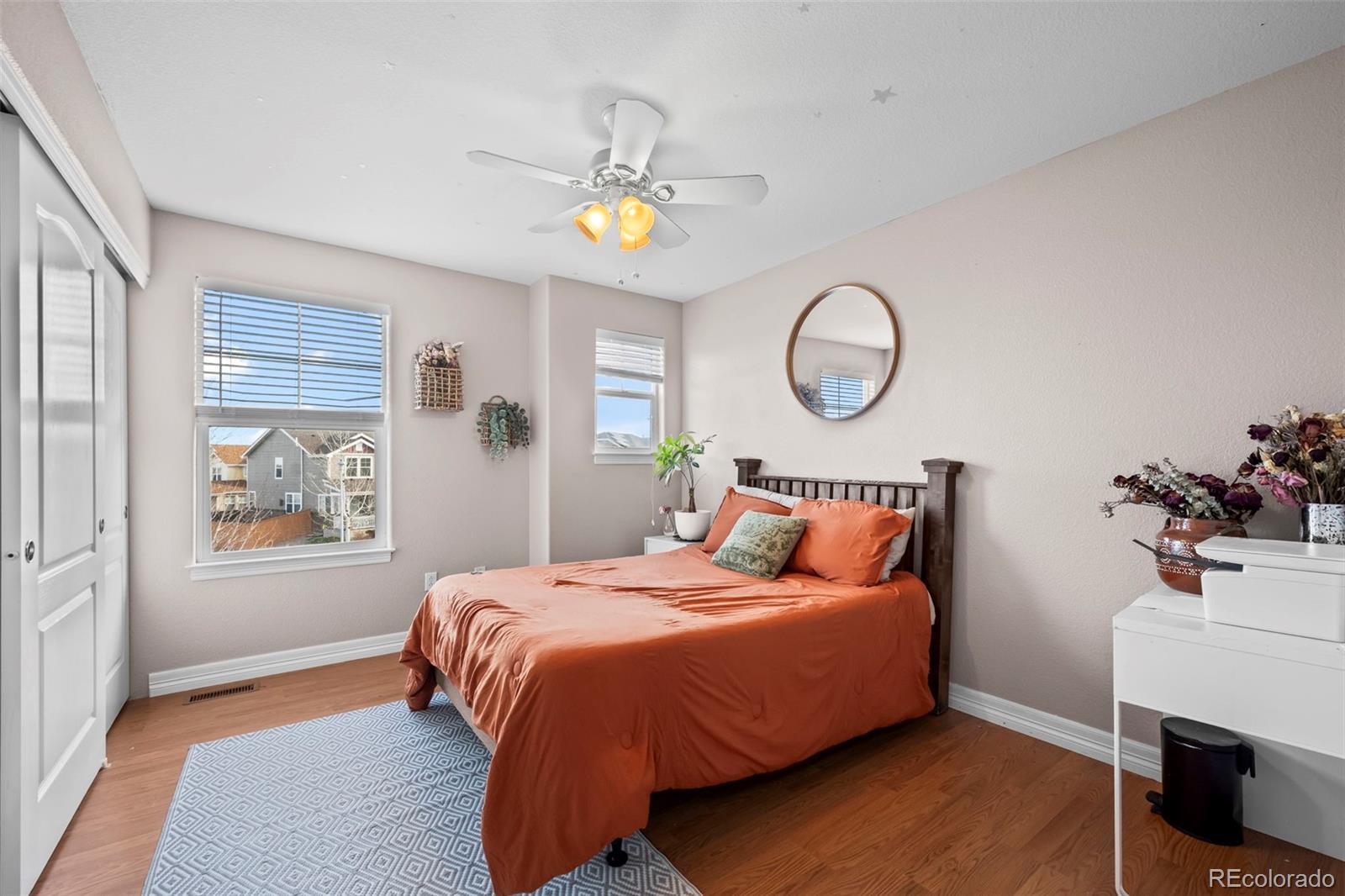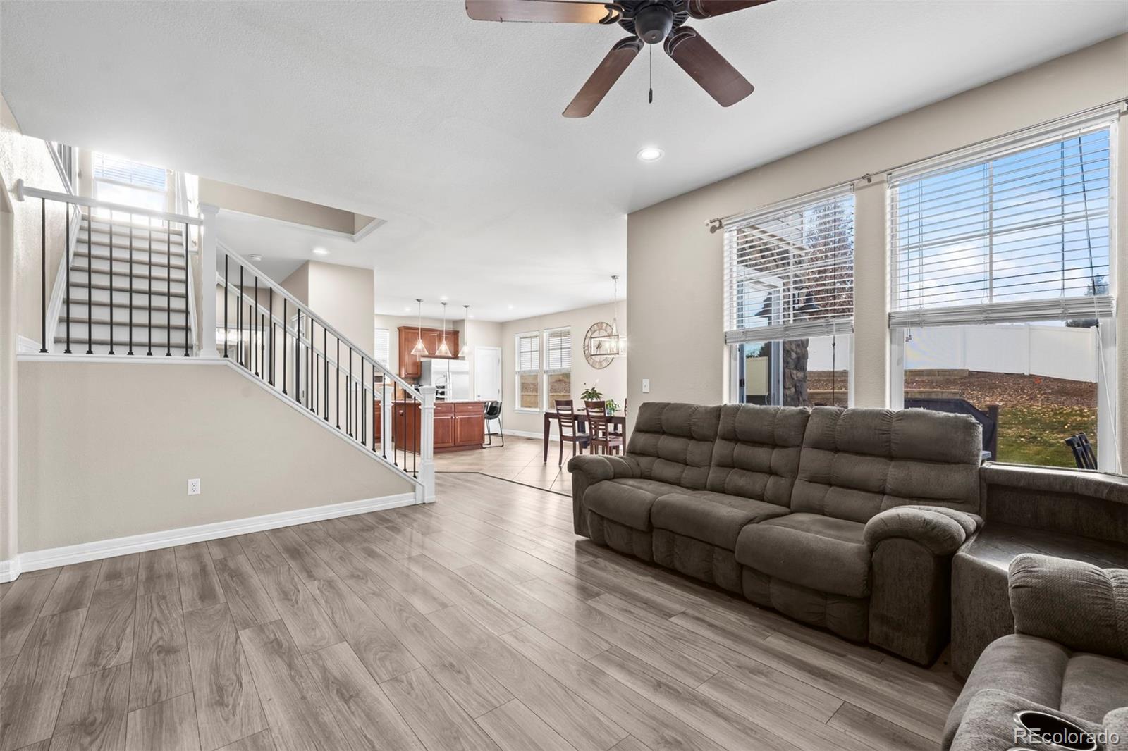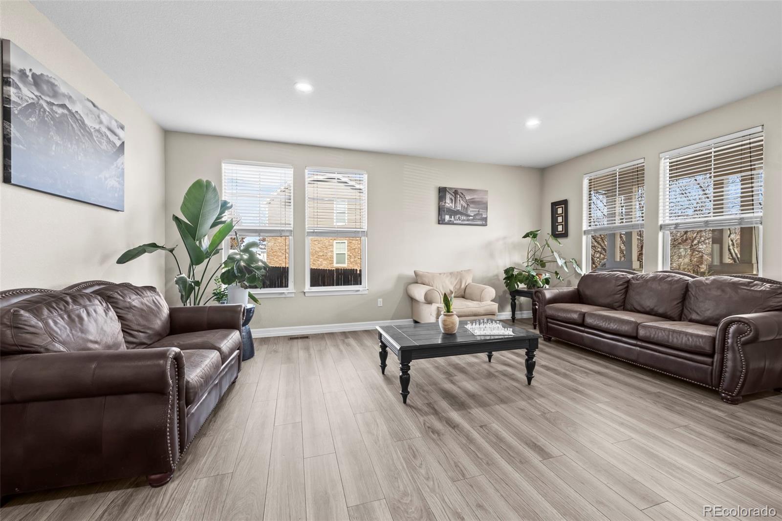 Updated and spacious two-story home with spectacular oversized lot! Situated in the sought-after Auburn Hill neighborhood, this property offers desirable community living with convenient proximity to the Aurora Frontier K-8 and Vista Peak Preparatory, major routes, and a short drive to Buckley Space Force Base. A truly unbeatable location within Aurora! The main level features a cohesive design beginning with the formal living room which transitions seamlessly into the family/TV room and a large, spacious kitchen. The second floor is dedicated to rest and utility, hosting the primary bedroom with a generous ensuite bathroom, two additional spacious bedrooms, a flexible loft area, and a conveniently located laundry room. Head to the finished basement, which significantly expands the living area, offering two additional bedrooms, a versatile living space ideal for a media room, home office, or gym, and a full bathroom. Ample storage space remains available. The defining feature of this property is the oversized, private lot which is just over a quarter of an acre. This rare and substantial backyard provides exceptional space for entertaining, recreation, and outdoor enjoyment within a structured neighborhood setting. A true must-see! This property represents a compelling opportunity for a buyer seeking extensive interior and exterior space all within in a desirable Aurora location.