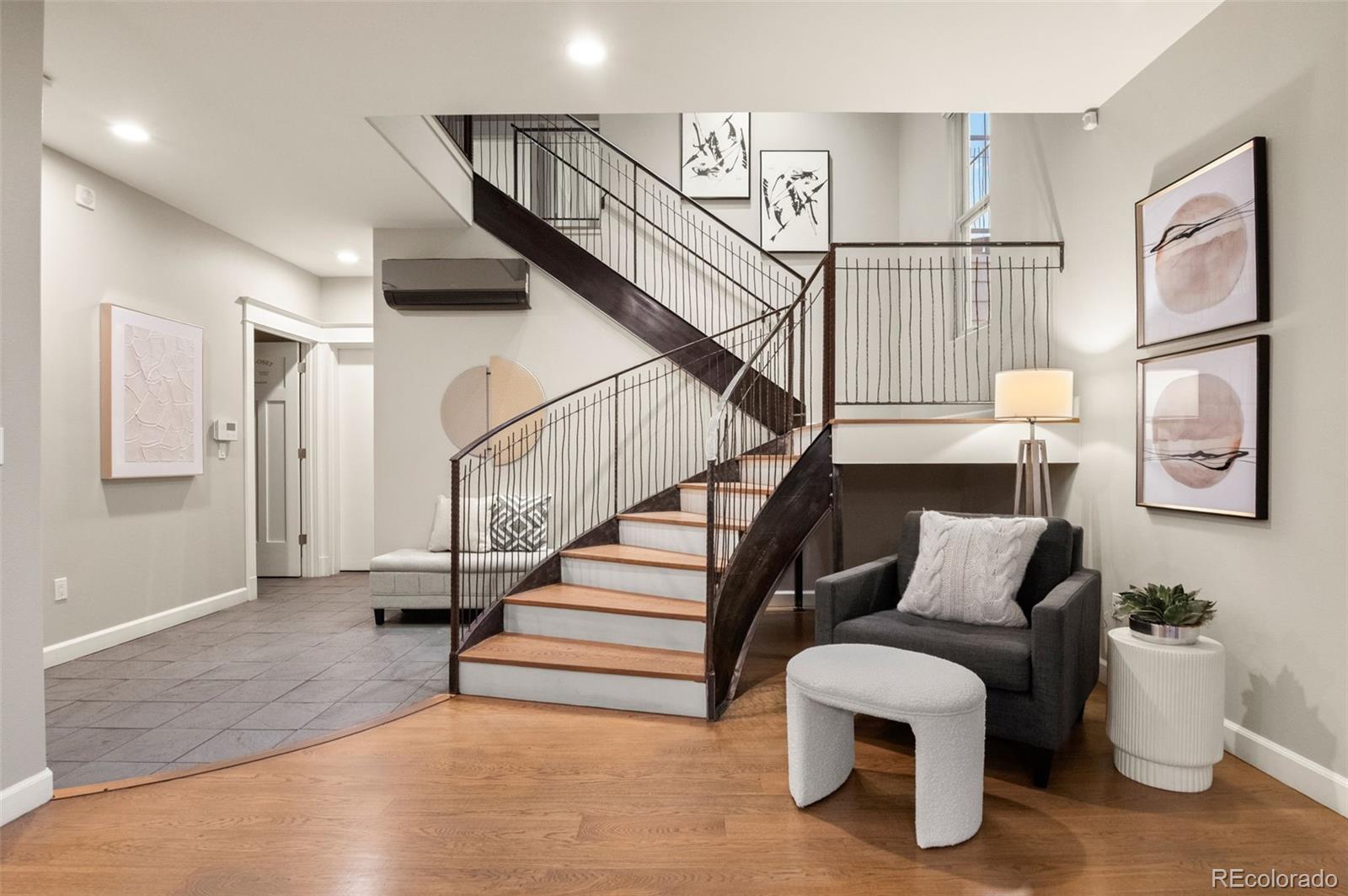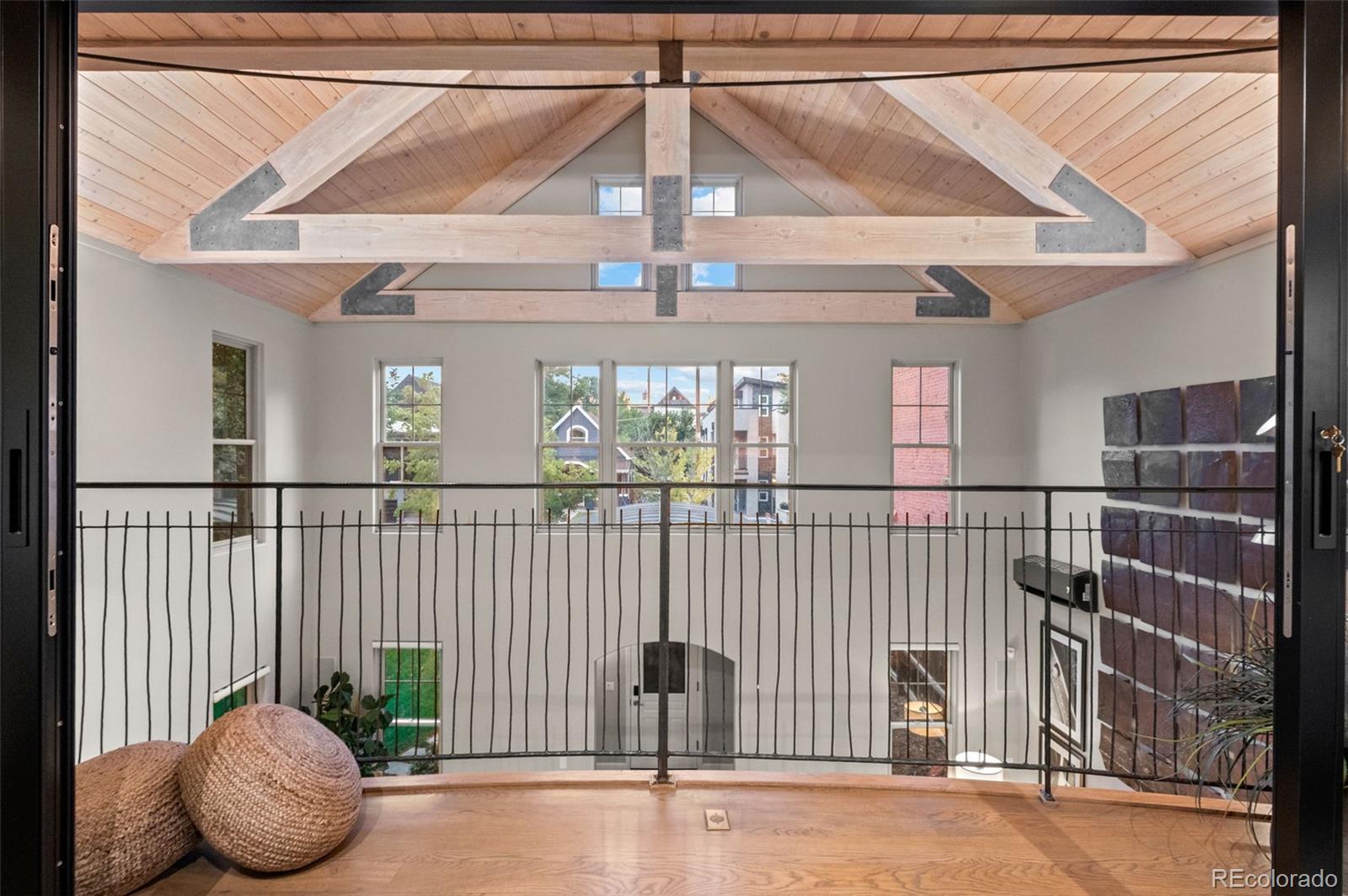 One of a kind stunner! The attached 3 car garage is climate controlled and has 20' ceilings with ample storage and the ability to install a car lift for even more parking. Behind a custom metal gate and framed by lush landscaping on a rare double lot in the heart of LoHi, this beautiful home appears unassuming. Once you step through the front archway, though, into a light-filled interior where 25-foot vaulted ceilings and a flowing, open floor plan you'll be amazed. Designed for modern living and entertaining, the main level seamlessly connects the living room, dining area, and kitchen—anchored by rich wood floors, clerestory windows, and a gas fireplace. The kitchen blends style and function with marble countertops, custom wood cabinetry, a walk-in pantry, built in wine rack and bar seating for 8. French doors in the dining room open to a spacious covered patio perfect for relaxing or hosting. Upstairs, the loft-style primary suite with a full gable glass folding wall offers a private retreat with a 5-piece bath and generous walk-in closet. Two additional bedrooms, a full bath, laundry room and a balcony complete the upper level. The finished basement adds even more flexibility, with 8-foot ceilings, a large bedroom, full bath, and extra storage space. The basement could be reimagined into a mother in law suite for multi generation living or additional income. Stylish, functional, and full of personality, this one-of-a-kind LoHi home is made to impress. Lohi is one of Denver's most walkable neighborhoods, and features landmarks like the La Raza park, Little Man Ice Cream Co., Linger, Avanti, Happy Camper Pizza, Root Down, Highland Tavern, Prost Brewing and so many more! You won't find anything like it in Denver or a better location. Video walk through here: https://youtube.com/shorts/4eN84FMoHHM?feature=share Welcome home!