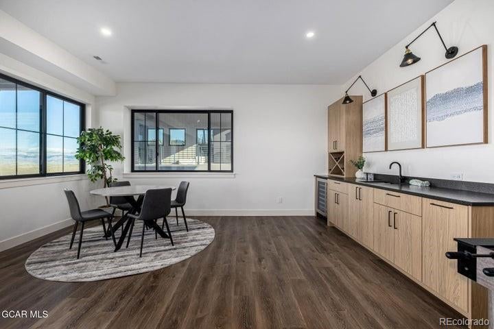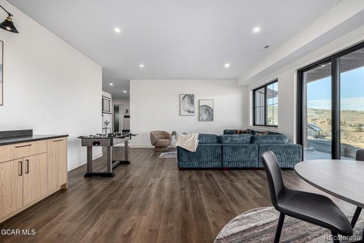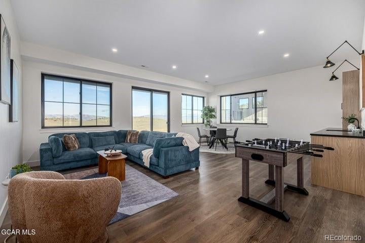 Wow! This extraordinary 7-bedroom retreat in Granby Ranch is truly a dream come true! Escape the city and savor crisp mountain air in this contemporary masterpiece, where spectacular vistas and impeccable craftsmanship take center stage. Step through the custom entry door to discover breathtaking design defined by clean lines, high-end finishes, and a modern, airy ambiance. The spacious living room welcomes you with an entertainer's wet bar, while upstairs a stunning great room impresses with soaring ceilings and an in-wall gas fireplace. Thoughtful details shine throughout—recessed lighting, LVP flooring, stylish fixtures, sleek ceiling fans, and sweeping views of the snow-capped mountains from nearly every window. A showpiece worthy of a magazine, the kitchen radiates sophistication, with custom black cabinetry, stained shiplap accents, marble countertops & backsplash, stainless steel appliances, and a large waterfall island. The owner's suite offers a luxurious escape, featuring a spa-inspired ensuite with a dual vanity, freestanding soaking tub, and beautifully tiled shower. A second primary suite elevates the experience further with its own lavish ensuite adorned with striking gold fixtures. Even the oversized garage impresses with custom lighting & pristine epoxy flooring. Enjoy serene moments on the cozy balcony or fire up the grill on the back patio. This one-of-a-kind gem truly has it all. Don't miss the chance to make it yours! The driveway has been recently widened to accommodate large groups and ease of access into the property. With rental estimates in the 200k range because of the dual Masters, secondary family room and endless Views, this dream home is worth your time to explore. You will love all the Granby Ranch homeowner benefits to include ski passes, rounds of golf and Granby Ranch benefits!