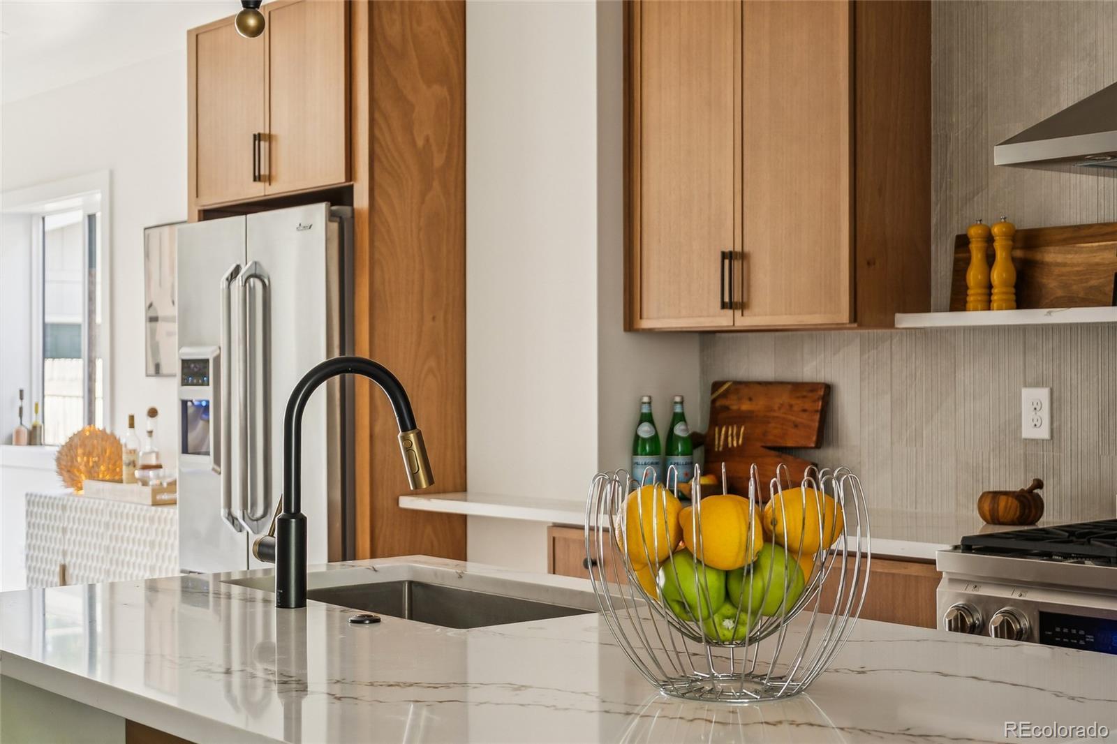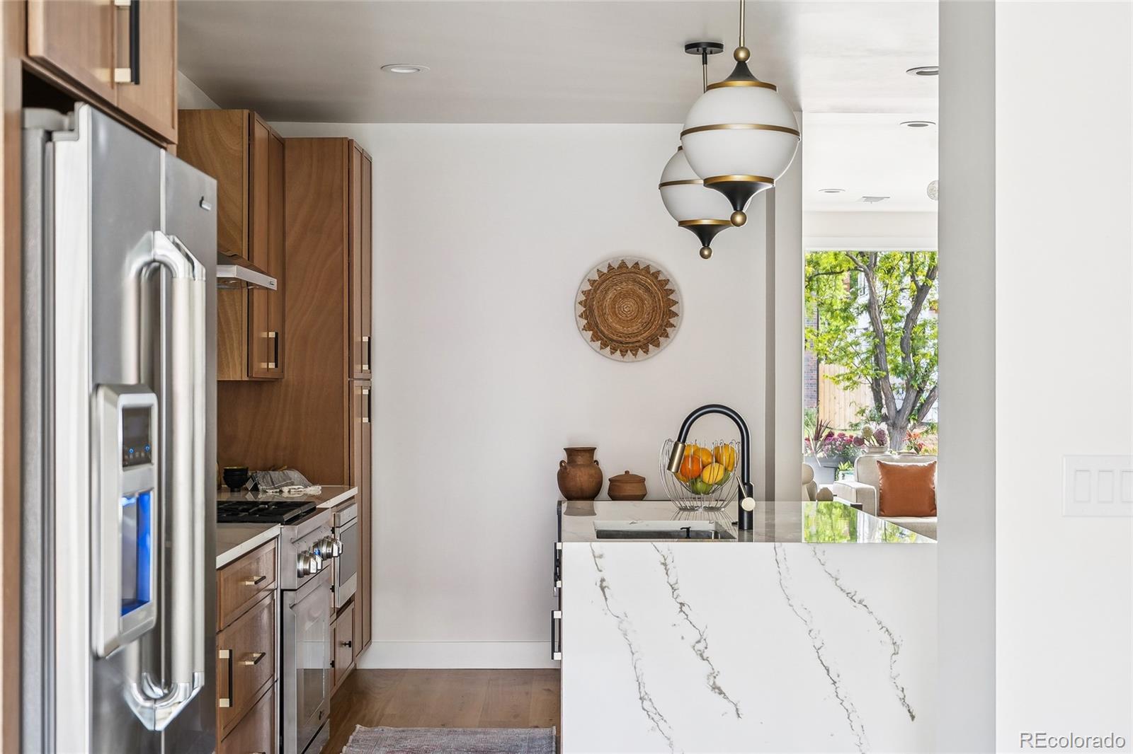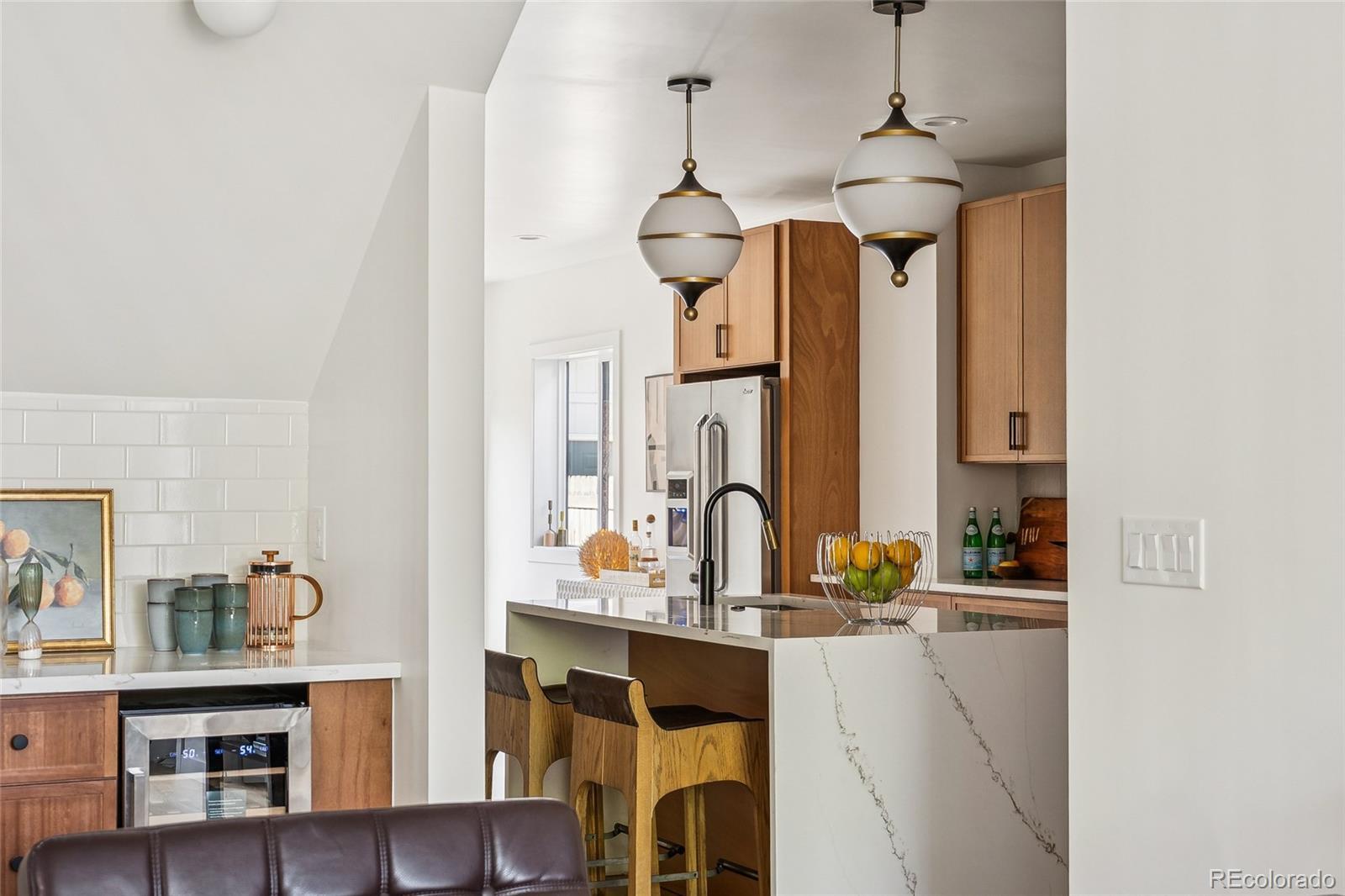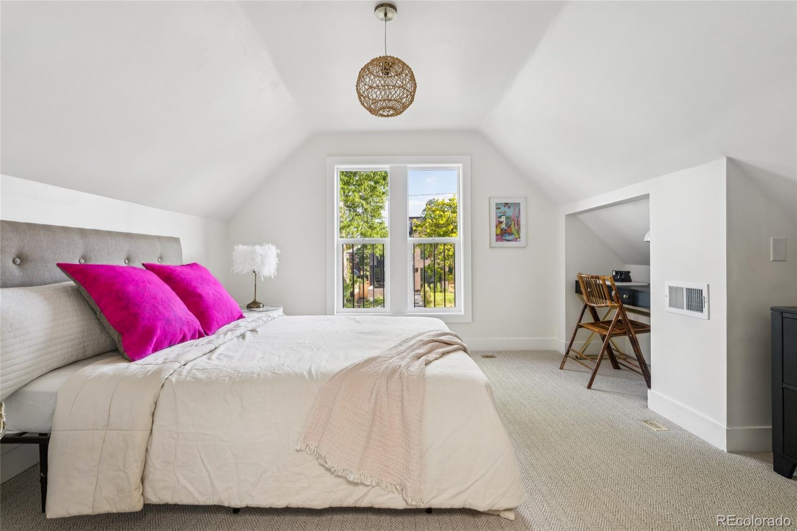 SELLERS HAVE APPLIED FOR 2 CAR GARAGE PERMIT, PLAN TO PULL PROPERTY OFF MARKET WHILE THEY BUILD GARAGE. Extraordinary FULLY PERMITTED down-to-the-studs remodel in vibrant, bustling Highland Square! The best of both worlds: Victorian charm combined with architect-designed addition, totally upgraded systems, and spectacular Designer Finishes throughout. Entryway with Custom Tile leads to Living Room boasting Solid White Oak Flooring, fantastic Picture Window, and darling Entertainment Nook with Wine Fridge + Convenient Main Floor Bedroom or Office. Kitchen is a showplace: Commercial-Grade Stainless Appliances, Quartz Counters, Waterfall Island, Custom Cabinets and Designer Tile Backsplash. Addition features huge Dining Room/Family Room with 1/2 bath and Glass Doors welcoming the outdoors in. Ascend the open, airy Stairway to the sun-filled 2nd Floor. Primary Suite with sky-high Vaulted Ceilings, multiple Closets, and En-Suite Full Bath. 3rd Bedroom oozes charm, overlooking the neighborhood and also featuring Vaulted Ceilings. A Custom-Designed Full 3rd Bath and Laundry Room complete the upper floor. All New HVAC: Central Air + New Furnace. New Plumbing and Electrical. New Roof. New Windows. New Interior and Exterior Paint. New Landscaping. Completely Turnkey - move in and love your life in the best neighborhood in Denver! Fabulous Restaurants, Boutiques, Ice Cream Shops, Salons, Fitness Centers, Yoga Studios, Farmers Markets. Incredibly walkable, desirable area. You will love this place!