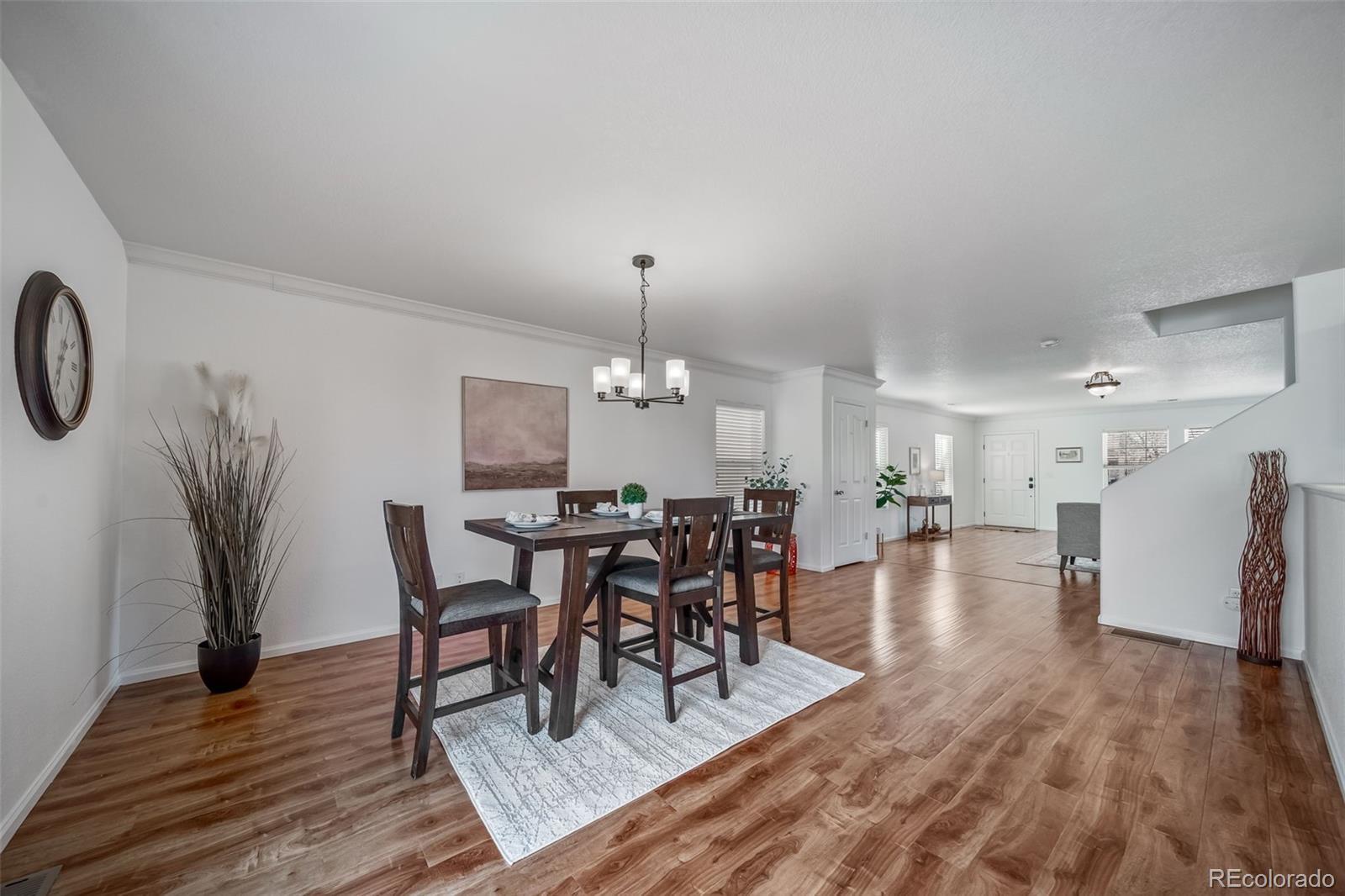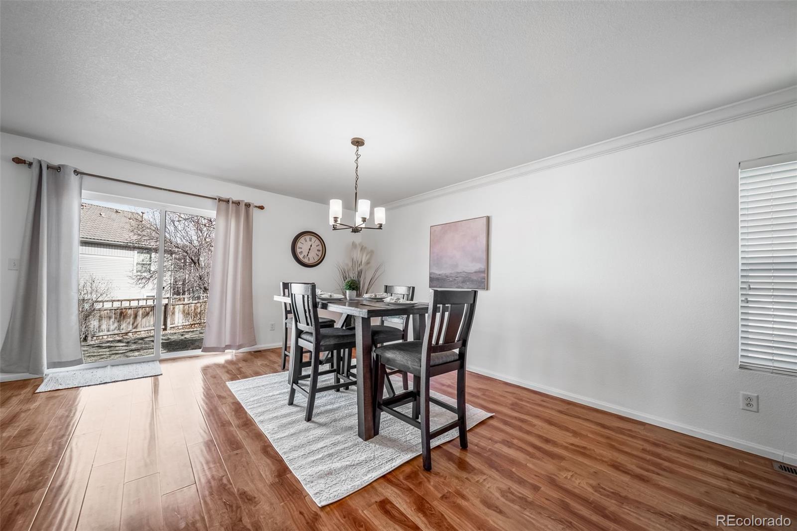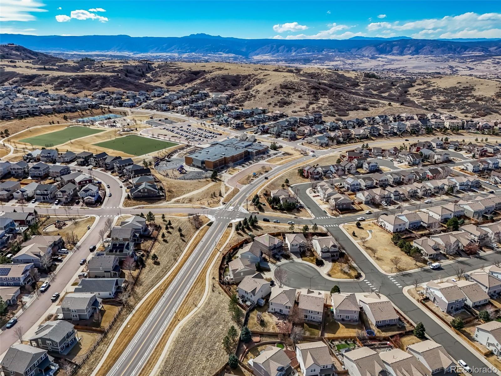 Welcome to The Meadows! Light-filled and ideally located on a quiet cul-de-sac just a short walk to Clear Sky Elementary, this spacious 4-bedroom, 3½-bath home offers easy access to Bison Park and the scenic trails of The Meadows and Ridgeline Open Spaces. The open floor plan features expansive living spaces and generous room sizes throughout, along with a highly desirable east-facing backyard (perfect for sunny morning coffee and comfortably shaded summer afternoons!) Stylish LVP flooring throughout the main level offers both durability and easy maintenance. *** The main-floor laundry is paired with a generous walk-in pantry featuring a window that fills the space with natural light. Upstairs, the sunlit primary suite includes an oversized walk-in closet with built-in shelving and a spacious five-piece ensuite bath. Three additional bedrooms provide excellent flexibility, including one with its own private full ensuite bath. Another bedroom features a walk-in closet, while a well-appointed hall bath serves the remaining bedrooms. *** The full unfinished basement with bathroom rough-in offers excellent potential to expand living space and create additional value, ready for a new owner's custom design and finish. The southwest-facing driveway helps snow melt quickly after winter storms. With parks, trails, and top-rated schools nearby, this home offers the perfect blend of comfort, convenience, and Colorado outdoor living.