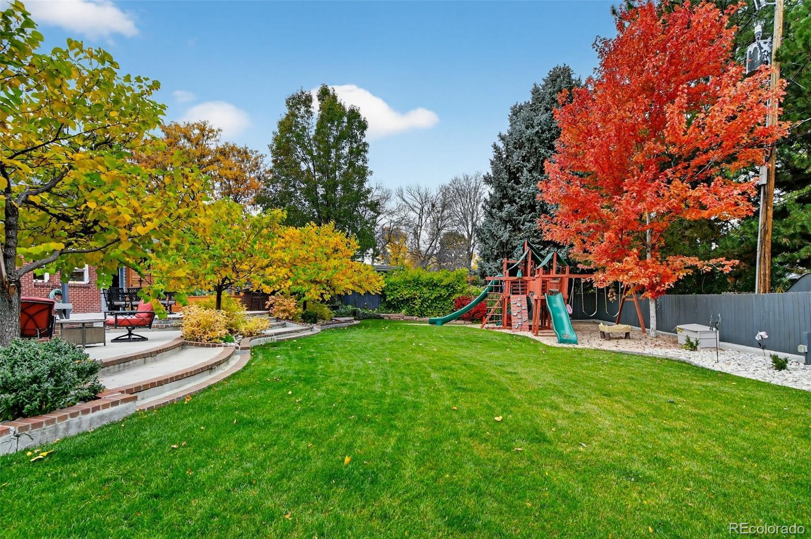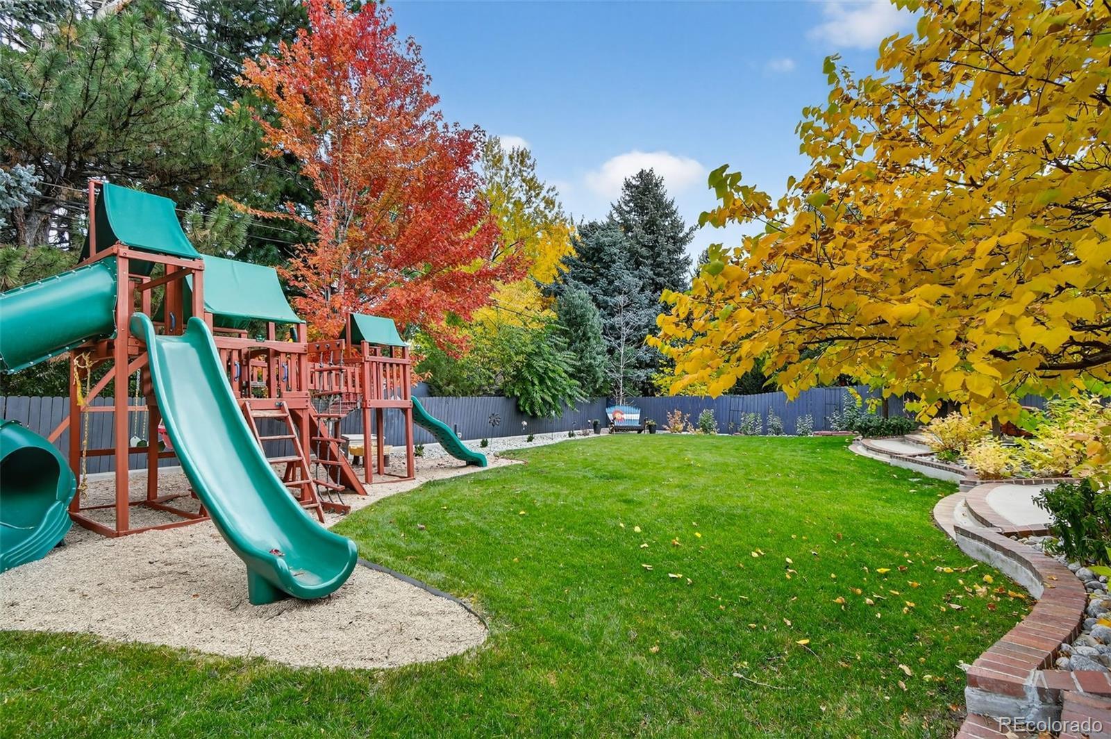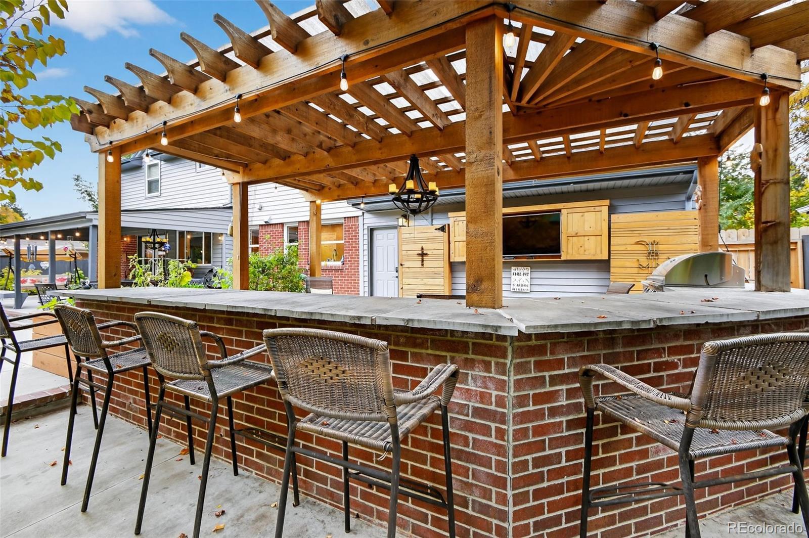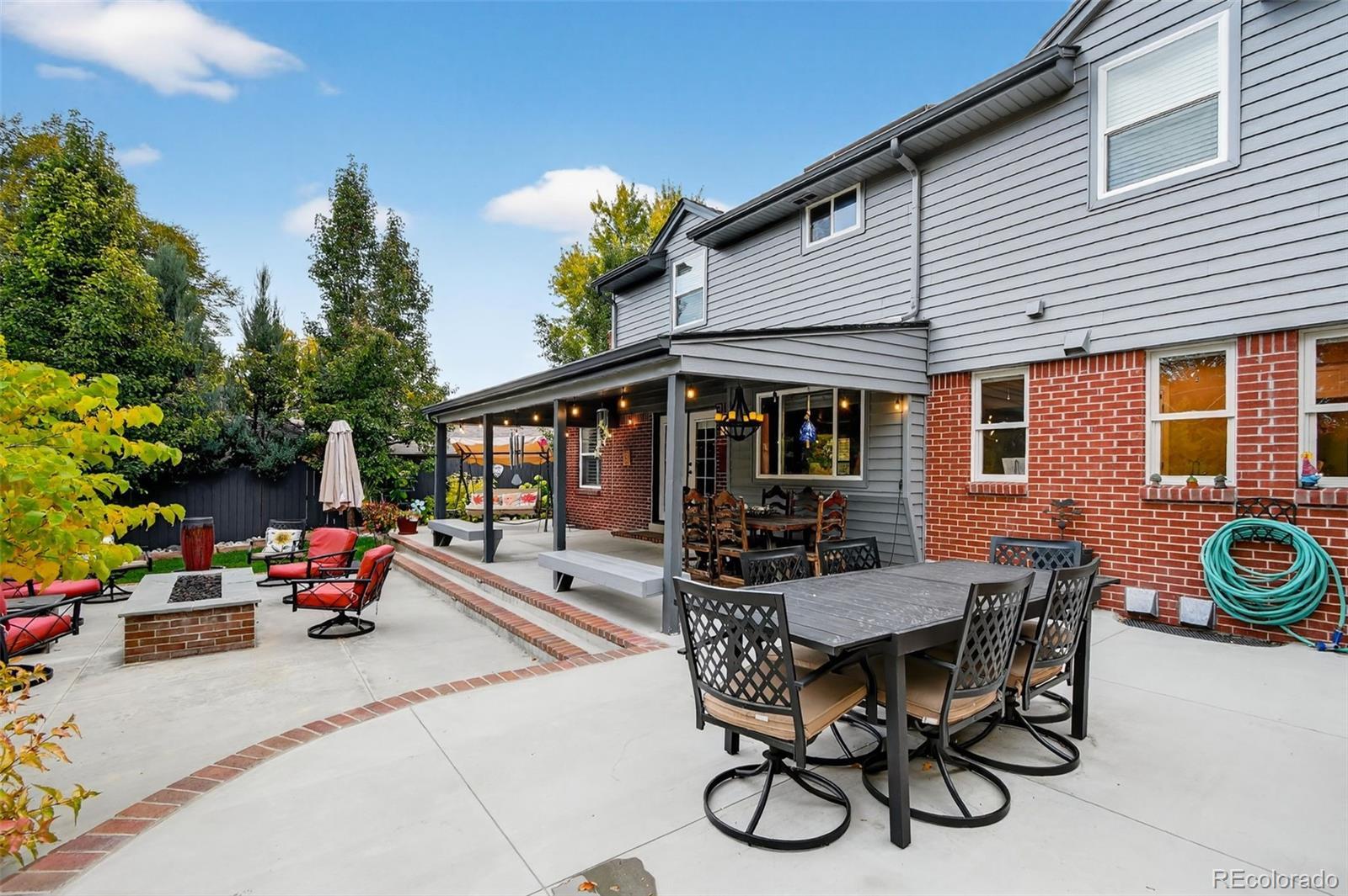 Updated, stylish, with one of the best backyards ever offered in Holly Hills. With over six-figures invested into the outdoor spaces, this is an entertainer’s oasis. The outdoor spaces include a incredible extended patio, multiple gas fire-pits, outdoor bar and pergola with tons of seating and TV lounge area, covered patio, raised planter beds, a huge level grass area, play-set, and professionally designed landscaping. Inside the main level features a bright, open layout with an updated kitchen equipped with shaker cabinets, quartz counters, and stainless steel appliances with gas-range. The dining room is spacious, even for the largest of dinner parties, while the family room flows seamlessly from the kitchen to the backyard patio. Multiple living areas provide flexibility for everyday living, entertaining, or working from home, while the thoughtful floor plan offers great separation between living and sleeping spaces. Upstairs there are four bedrooms, with a beautifully appointed primary suite with en-suite bath. The lower level includes a sizable rec-room, another bedroom with en-suite bath, and tons of storage spaces. Other updates include gutter guards throughout the roof, a whole house water filter, all the appliances (except the fridge) are approx. 5 years old, the roof is approx. 5 years old, and a solar panel system is installed on the home. An attached 2-car garage rounds out the home’s offerings. This is the rare combination of move-in-ready updates, functional space, and an incredible yard—all in a centrally located Denver neighborhood.