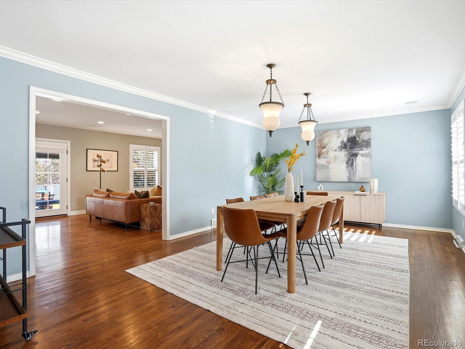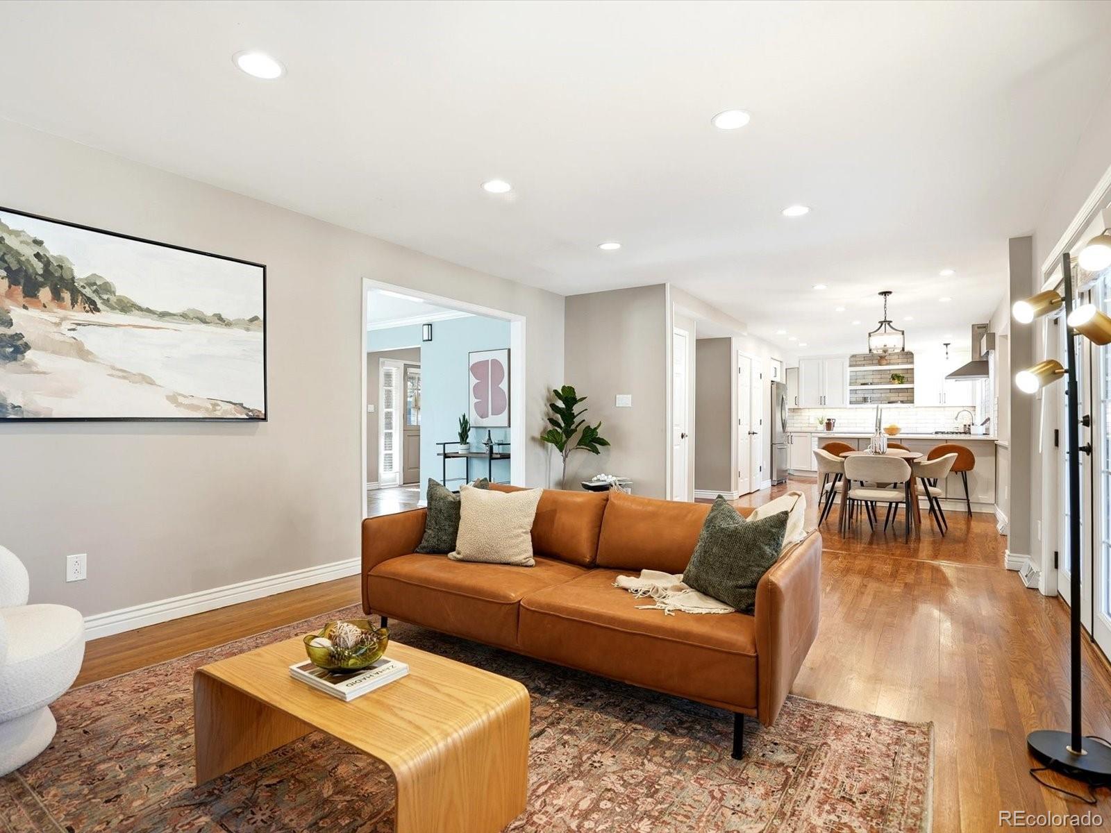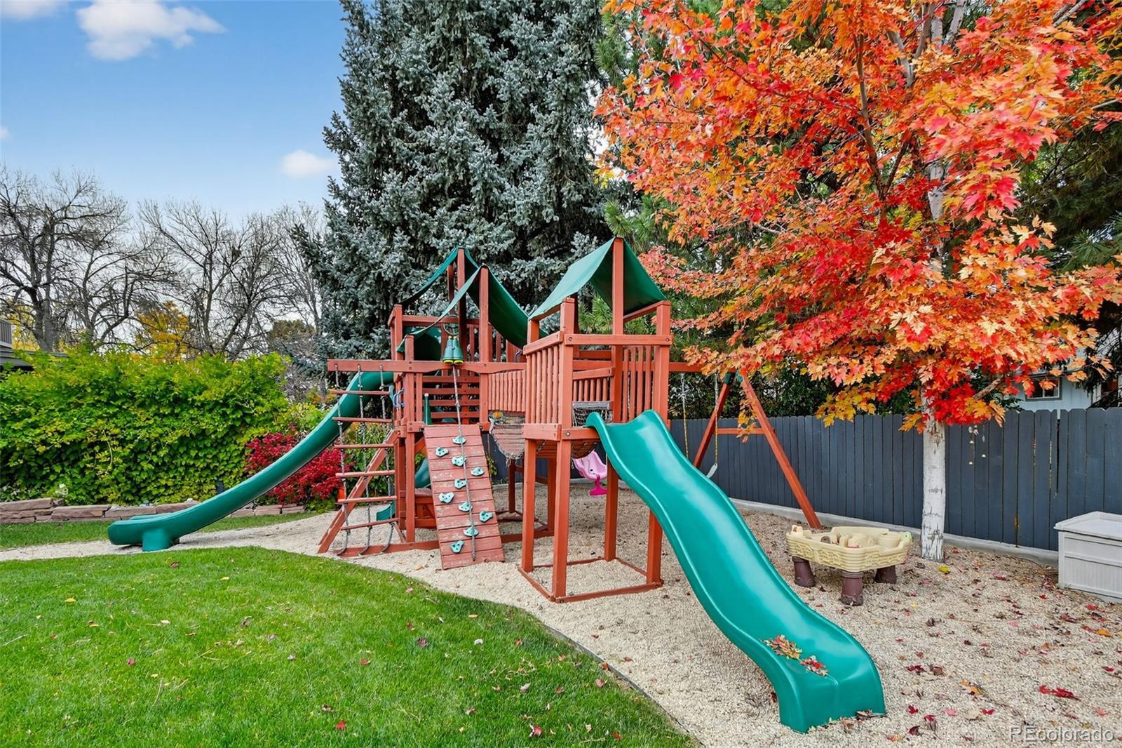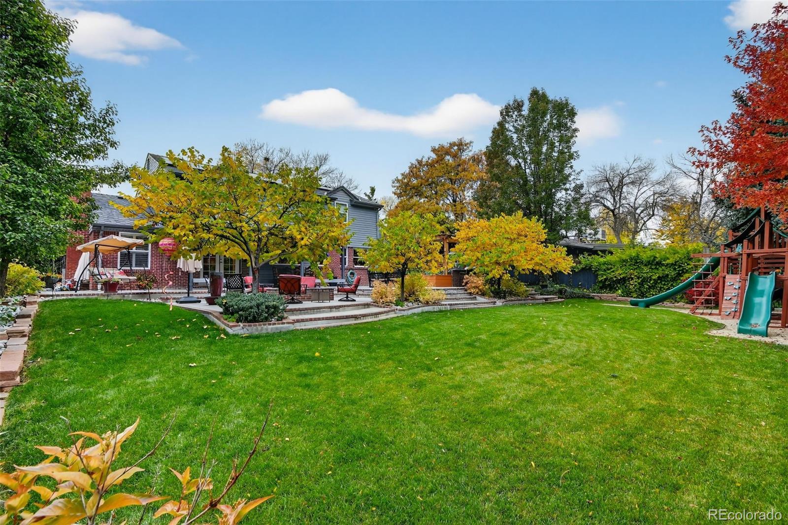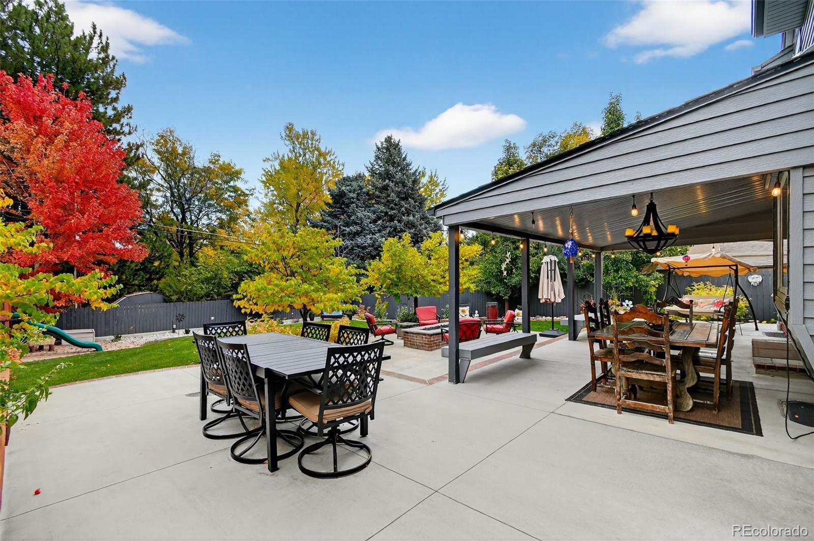 Updated, stylish, with one of the best backyards ever offered in Holly Hills. With over six-figures invested into the outdoor spaces, this is an entertainer’s oasis. The outdoor spaces include a incredible extended patio, multiple gas fire-pits, outdoor bar and pergola with tons of seating and TV lounge area, covered patio, raised planter beds, a huge level grass area, play-set, and professionally designed landscaping. Inside the main level features a bright, open layout with an updated kitchen equipped with shaker cabinets, quartz counters, and stainless steel appliances with gas-range. The dining room is spacious, even for the largest of dinner parties, while the family room flows seamlessly from the kitchen to the backyard patio. Multiple living areas provide flexibility for everyday living, entertaining, or working from home, while the thoughtful floor plan offers great separation between living and sleeping spaces. Upstairs there are four bedrooms, with a beautifully appointed primary suite with en-suite bath. The lower level includes a sizable rec-room, another bedroom with en-suite bath, and tons of storage spaces. Other updates include gutter guards throughout the roof, a whole house water filter, all the appliances (except the fridge) are approx. 5 years old, the roof is approx. 5 years old, and a solar panel system is installed on the home. An attached 2-car garage rounds out the home’s offerings. This is the rare combination of move-in-ready updates, functional space, and an incredible yard—all in a centrally located Denver neighborhood.
