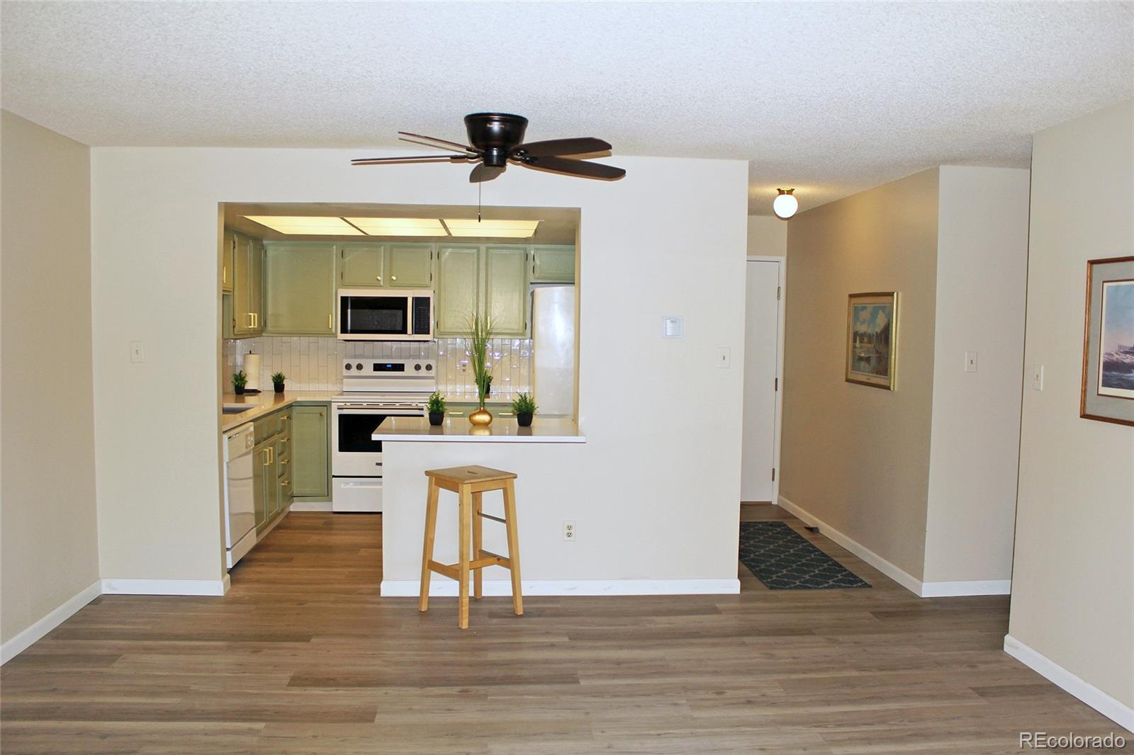 This stunning, remodeled top floor end unit has a wonderful location overlooking the Seville pool/hot tub, pickleball courts and koi pond! Step through the door onto the new luxury vinyl plank floors that extend to the living room and kitchen and enjoy the fresh paint throughout. Cook your favorite meals in the remodeled kitchen with freshly painted cabinets with new hardware, tile backsplash, Quartz countertops, breakfast bar, double deep stainless sink with new faucet and disposal, and new electric range with a glass top. Relax in either bedroom with new blinds, including room darkening blinds in the 2nd bedroom. New ceiling fan in the living room and an upgraded electrical panel too. Drink your coffee on the enclosed lanai and enjoy views of Pikes Peak and the manicured grounds of the Seville area. Appreciate the lovely “community within a community” that the Seville area provides, or head to the clubhouse to enjoy the activities, fitness center, indoor/outdoor swimming pools, pickleball courts, tennis courts, golf course, restaurant and more! Learn about all the amenities at https://www.heathergardens.org/ One under building garage parking space.