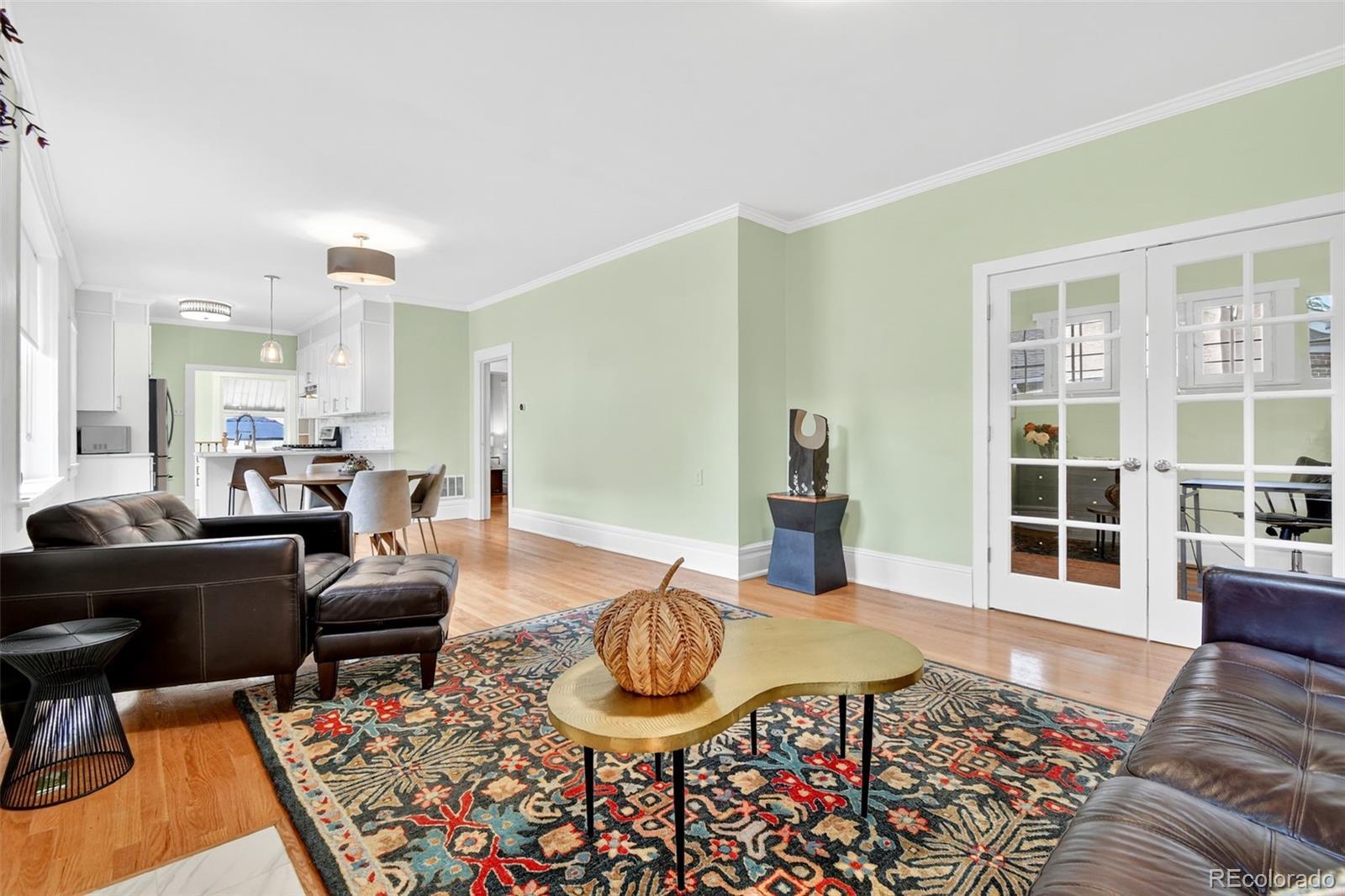 Welcome to this meticulously remodeled Craftsman bungalow, perfectly nestled in the heart of Park Hill. Boasting 2,304 square feet of living space, this home features 4 bedrooms (3 on the main level) and 2 beautifully updated and remodeled bathrooms. As you enter, you'll be captivated by the open floor plan enhanced by custom lighting, large windows that flood the space with natural light and gorgeous wood floors. The light filled living room and dining room are open to the Chef's eat-in Kitchen and is ready to entertain! Featuring white cabinets, quartz countertops, and stainless LG Appliances and gas cooktop oven. The Primary Suite is oversized and features custom closets and built-ins. The main level bath is gorgeous with playful custom tile, frameless shower and penny tile. The Secondary Bedroom is large and has custom closet slider. The front bedroom with french doors is a perfect place to work or relax! The full basement is remodeled and updated with new LVP flooring, wet bar that can be a "mini kitchen", rec room, spacious 4th bedroom with egress, remodeled full bath and spacious family room ready to host movie and game nights. Added bonus is the walk-out exterior access, offering lock-off potential —ideal for an-in-law suite, or house hacking. Outside, you are ready to host friends and family on the large patio, run around in the fenced back yard with southwest exposure and entertain, relax this fall. Additionally there is a "modern" two-car garage ready for gear and cars + the front drive provides extra off street parking and space on the lot. Experience modern living in a home that beautifully retains its original charm while offering all the modern space you require. This home is perfectly located and just moments from the shops at 22nd & Kearney, treelined Montview Blvd and Iconic 17th Ave Pkwy. This is the perfect place to call your next home — don’t miss this incredible opportunity!
