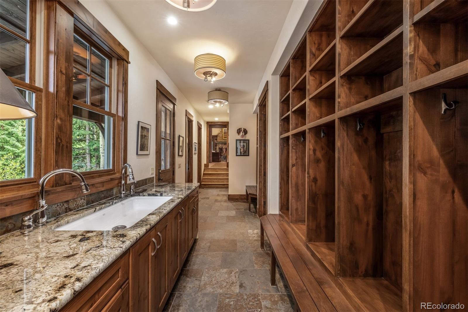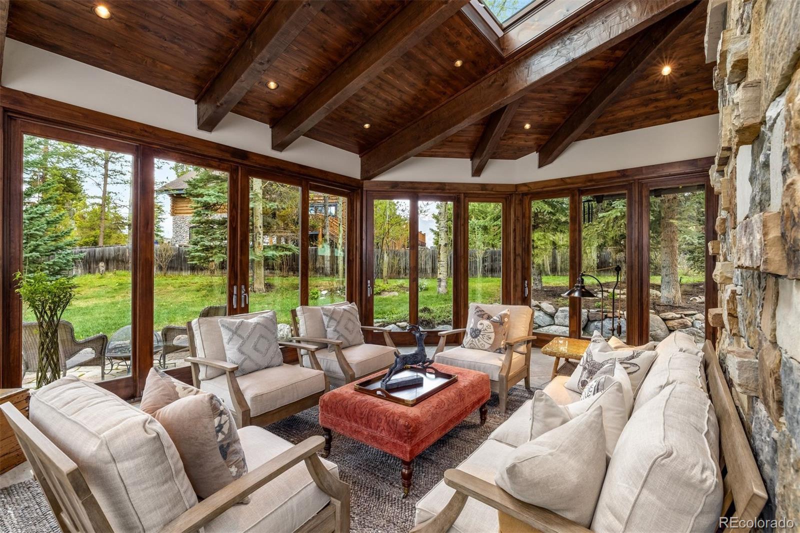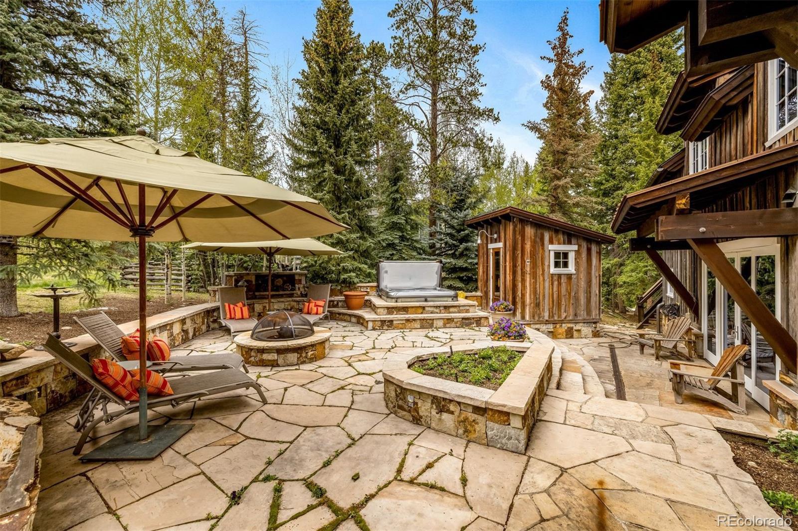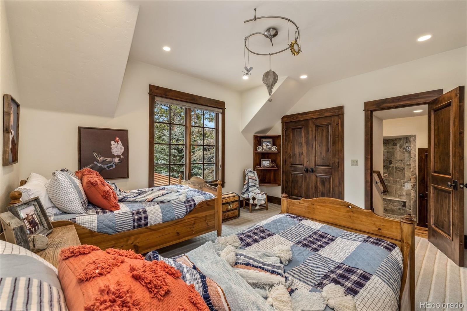 Located in the coveted Weisshorn neighborhood, this lovely mountain residence was built by Summit County’s premier custom home builder, Ivan Stanley. The “walkability” rating to Breckenridge’s historic Main Street is remarkable from this in-town property. If privacy matters, this residnece takes full advantage of its hillside location with its serene backyard setting. The expansive stone patio boasts a one-of-a-kind outdoor sauna cabin, gas firepit, custom hot tub and plenty of lounging and dining space for the entire family. The main level centers around a dramatic great room, where a floor-to-ceiling stone fireplace sets the tone for cozy evenings and effortless entertaining. The space flows into the dining area and a well-appointed kitchen, where style and function come together beautifully. The rich hickory floors, vaulted ceilings, and granite surfaces lend a warm refined feel throughout. Just off the great room, a light filled sunroom offers an inviting space to start the day with coffee, unwind with a book, or explore our creative side with music or art. Upstairs, the spacious primary suite serves as a quiet retreat, complete with two separate closets and a generous bath. Guest and family bedrooms are thoughtfully separated, offering flexibility for kids and visitors alike. Two additional flex rooms can serve as extra sleeping areas, an art studio or work out room. The oversized three car garage with electric vehicle charger and built-in storage provides room for all of your gear, while the well-preserved historic shed adds a touch of character and year-round storage.