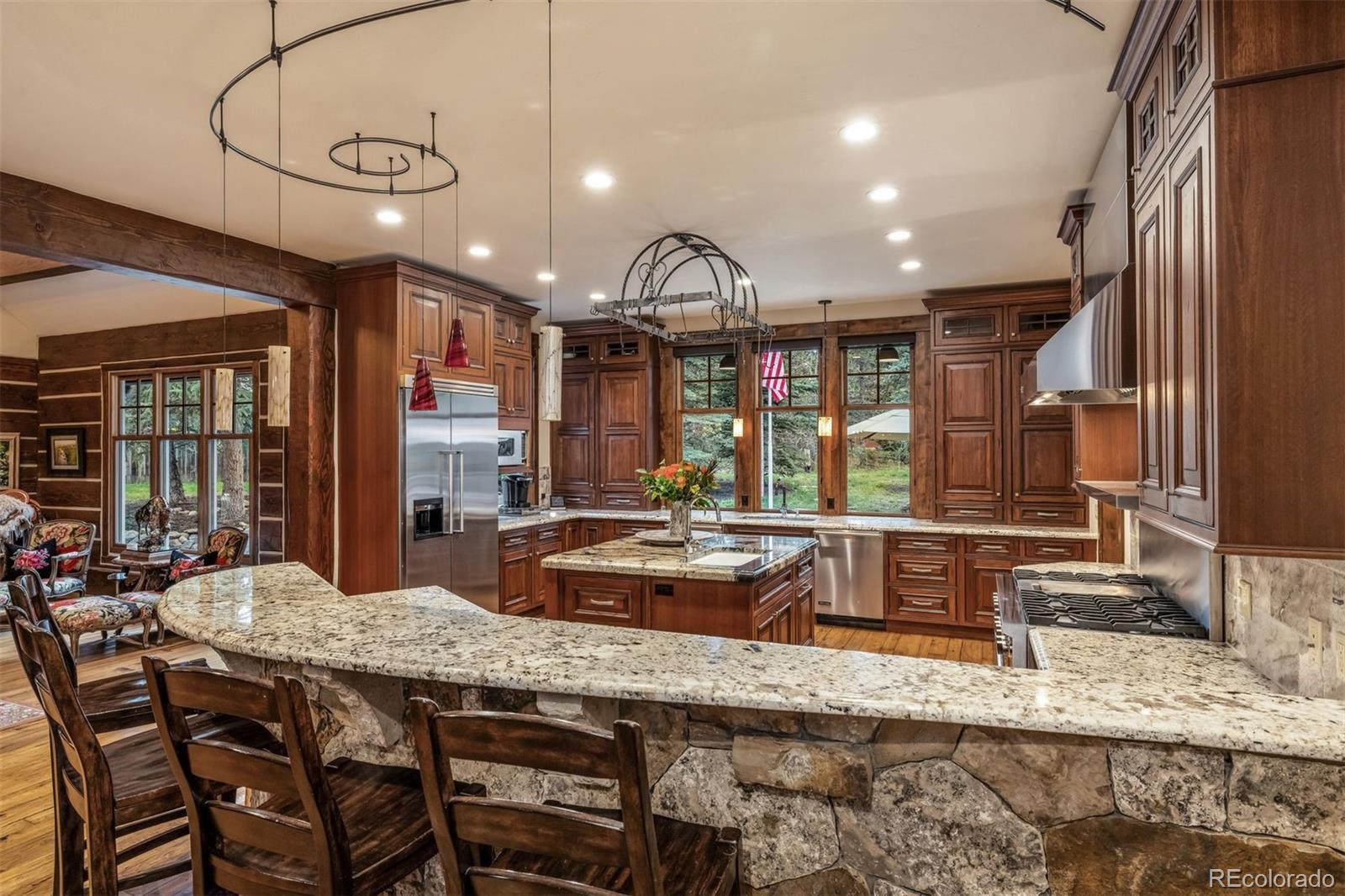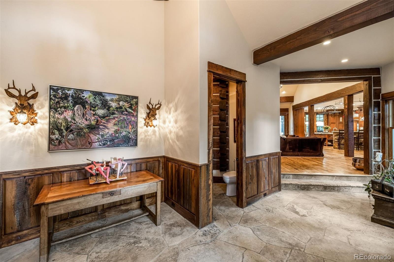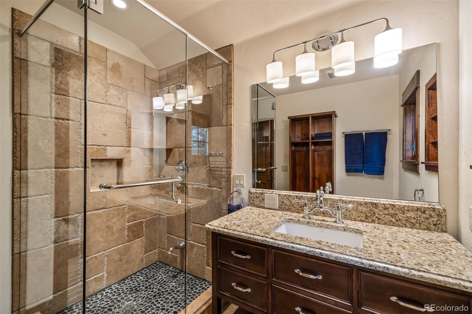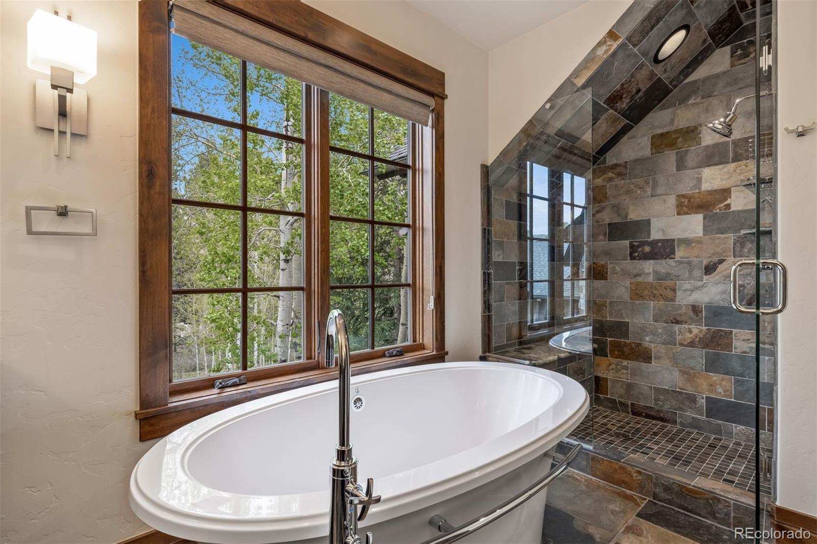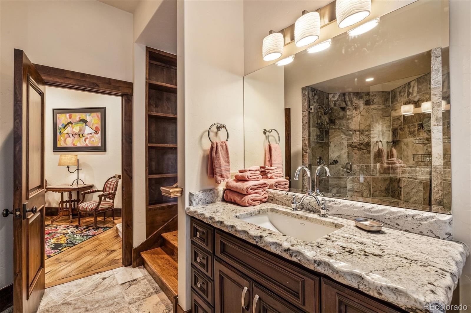 Located in the coveted Weisshorn neighborhood, this lovely mountain residence was built by Summit County’s premier custom home builder, Ivan Stanley. The “walkability” rating to Breckenridge’s historic Main Street is remarkable from this in-town property. If privacy matters, this residnece takes full advantage of its hillside location with its serene backyard setting. The expansive stone patio boasts a one-of-a-kind outdoor sauna cabin, gas firepit, custom hot tub and plenty of lounging and dining space for the entire family. The main level centers around a dramatic great room, where a floor-to-ceiling stone fireplace sets the tone for cozy evenings and effortless entertaining. The space flows into the dining area and a well-appointed kitchen, where style and function come together beautifully. The rich hickory floors, vaulted ceilings, and granite surfaces lend a warm refined feel throughout. Just off the great room, a light filled sunroom offers an inviting space to start the day with coffee, unwind with a book, or explore our creative side with music or art. Upstairs, the spacious primary suite serves as a quiet retreat, complete with two separate closets and a generous bath. Guest and family bedrooms are thoughtfully separated, offering flexibility for kids and visitors alike. Two additional flex rooms can serve as extra sleeping areas, an art studio or work out room. The oversized three car garage with electric vehicle charger and built-in storage provides room for all of your gear, while the well-preserved historic shed adds a touch of character and year-round storage.