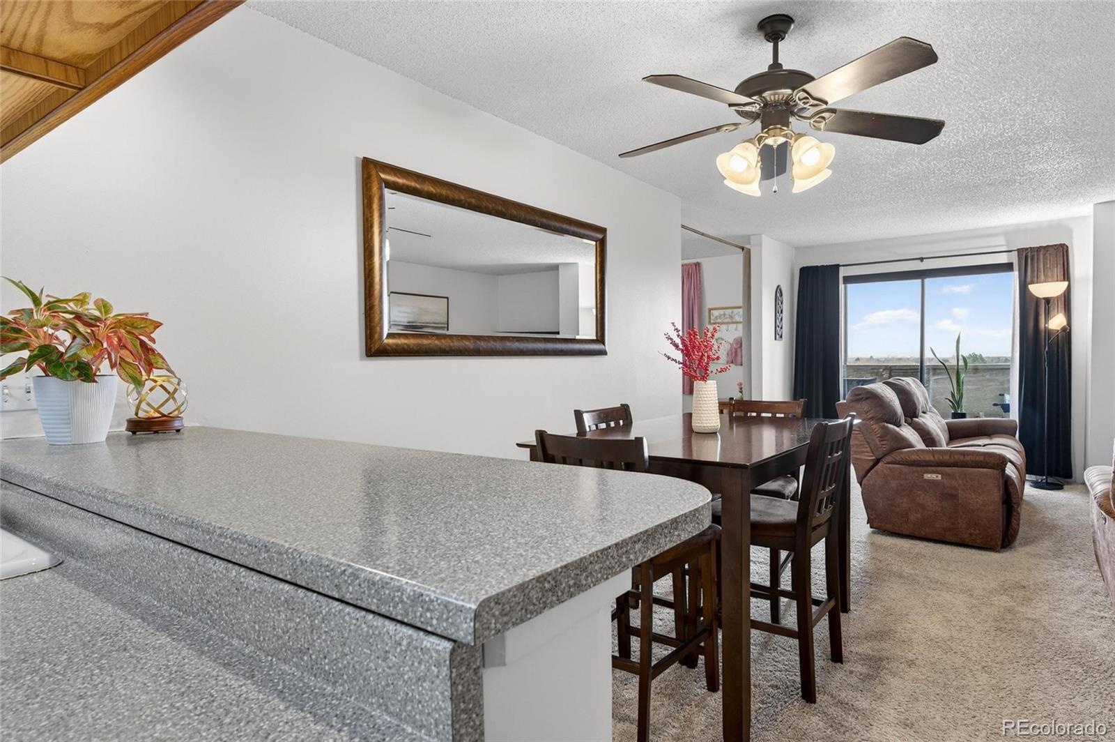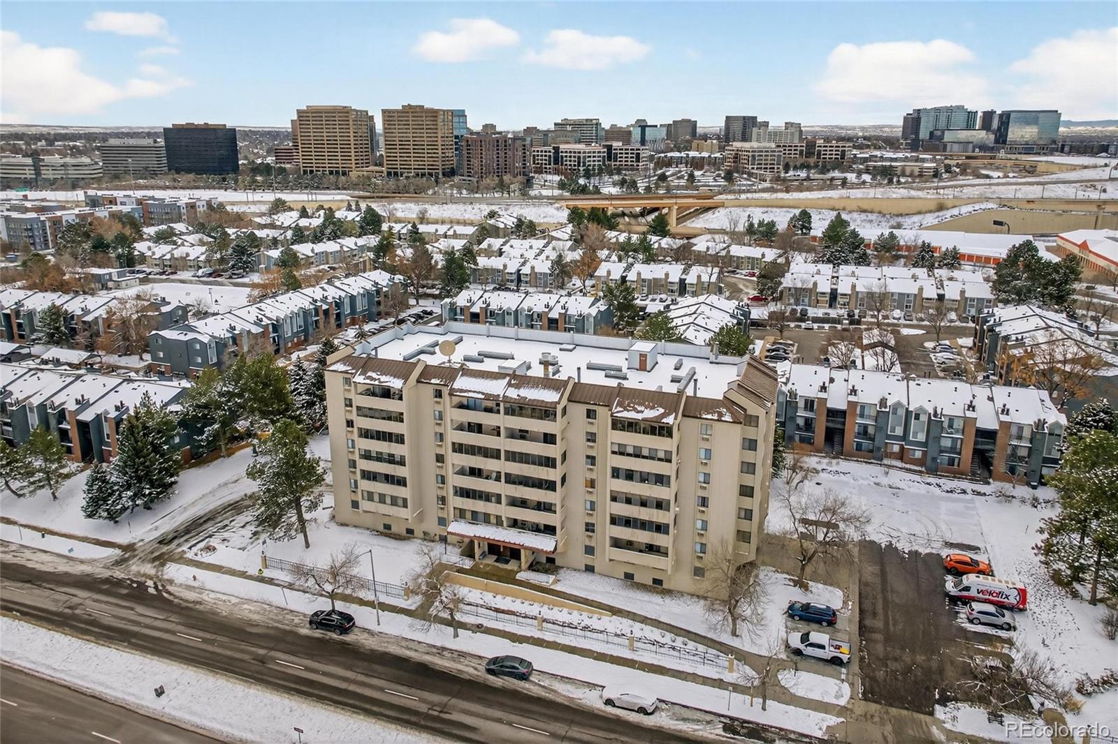 Beautiful Top-Floor Condo in Prime DTC Location. Welcome to this centrally located top-floor condo offering impressive city and mountain views. Situated in a secure, well-maintained building, this residence includes an attached community garage, dedicated storage, and fresh paint throughout. The spacious sunroom provides year-round enjoyment, while the office can easily be converted into an additional bedroom. Ample closet space adds to the home’s convenience. The strong HOA covers heat, insurance, internet, cable TV, water, hot water, recycling, and comprehensive building maintenance—including the roof and landscaping—making for truly low-stress living. Perfectly positioned just minutes from the Denver Tech Center, I-225, and I-25, with quick access to DIA and downtown. Enjoy exceptional nearby amenities such as Whole Foods, King Soopers, Target, parks, restaurants, and miles of trails along the High Line Canal and Cherry Creek. The Southmoor light rail station is only one mile away, offering effortless transit options. This condo is an incredible value for its unbeatable location, amenities, and sweeping views.