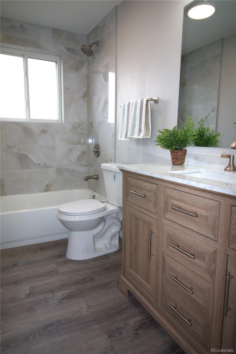 Welcome home to this remodeled and updated 3-bedroom, 3-bathroom home in one of Westminster’s most desirable neighborhoods. The spacious open floor plan is great for everyday life, family get together and entertaining. The lower level has a large family room with a beautiful fireplace and plenty of room to play and watch TV. The oversized gourmet style kitchen features new cabinets with soft-close doors and drawers, solid quartz countertops and new stainless-steel appliances. The private primary bedroom suite includes it's own bathroom with twin sinks, separate wet room and 3 closets. Plenty of room for all or your cloths and more. The bathrooms have all new fixtures, designer tiles and marble-topped vanities. The huge backyard is fully fenced and abuts Westminster open space and miles of walking and biking paths. Cotton Creek Elementary School, Cotton Creek Park and ball field are just across the street. This quiet neighborhood is centrally located near shopping and dining, and only 20 minutes from Denver, Boulder, Interlochen Business Park and just around the corner from Legacy Ridge Golf Course. The house vacant and ready for you to move in today!