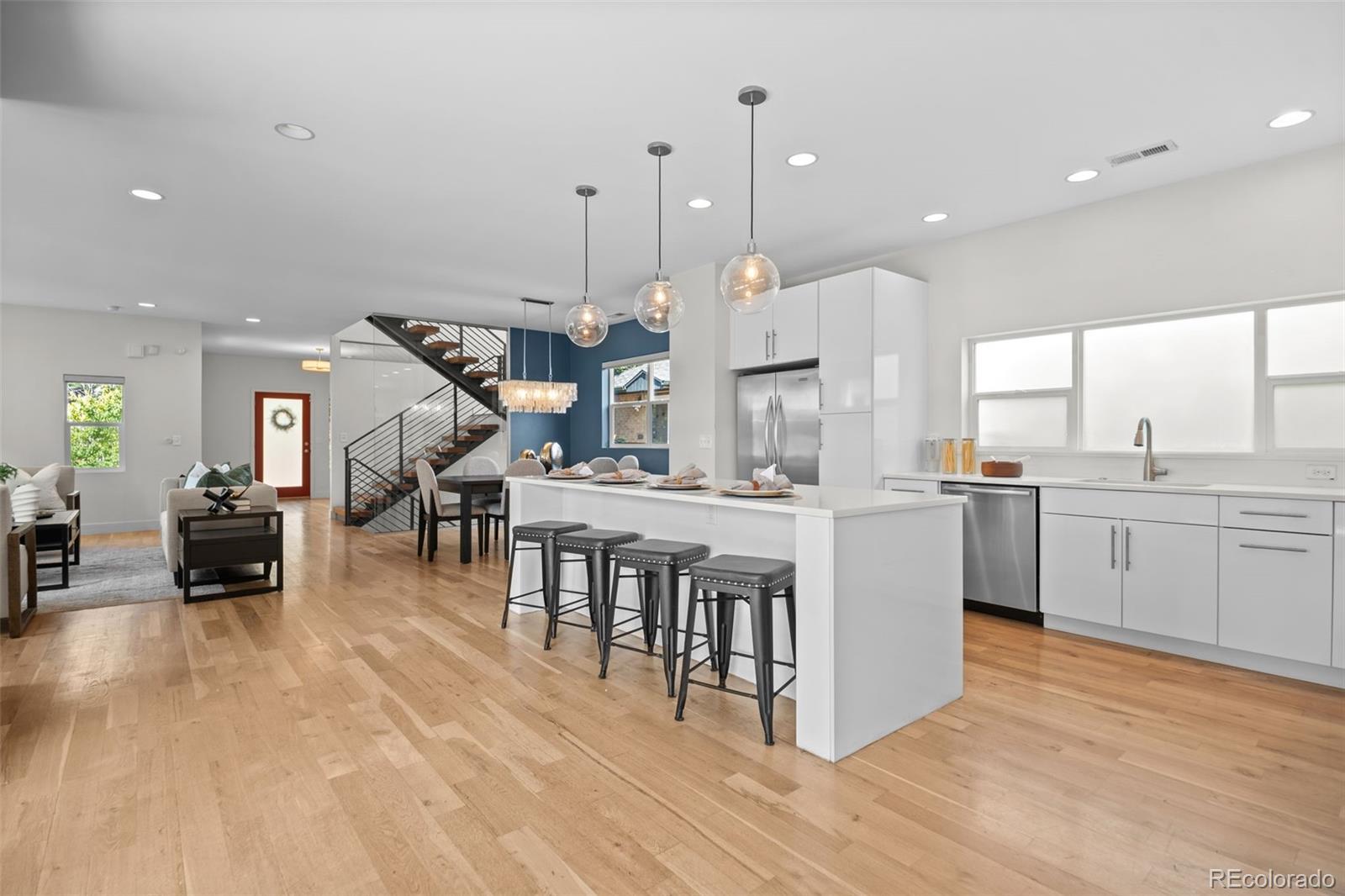 PRICE REDUCED! This is the BEST OPPORTUNITY IN BERKLEY/HIGHLANDS right now! Look at year of construction- MODERN SINGLE FAMILY HOME! NO attached walls! Private yard! Attached 2-car garage! THIS IS A RARE FIND in this neighborhood! Modern Luxury Meets Historic Charm in Denver's Coveted West Highlands Neighborhood! Nestled in one of Denver’s most desirable historic neighborhoods, this rare gem offers the best of both worlds—a contemporary home built in 2012 with sleek, modern finishes, just steps from the character-rich streets of the Highlands and Tennyson Street. This stylish residence features an open-concept floor plan designed for effortless entertaining, anchored by a stunning chef’s kitchen with high-end stainless steel appliances and an oversized quartz island. The living space flows seamlessly to a private fenced yard and patio, perfect for summer gatherings or quiet evenings under the stars. Upstairs, retreat to the spacious primary suite with a luxurious 5-piece bath and walk-in closet. Two additional bedrooms, a full bath, and a conveniently located laundry room complete the upper level. Additional highlights include smart blinds throughout, a rare two-car garage with ample storage, central A/C, and thoughtfully curated finishes throughout. All this, just a short stroll to the restaurants, cafés, and boutiques of both Highlands Square and Tennyson Street. Modern living. Historic location. Welcome home. Huge Price Reduction! Motivated Seller! BRAND-NEW CARPET THROUGHOUT! Easy to show and move-in ready!