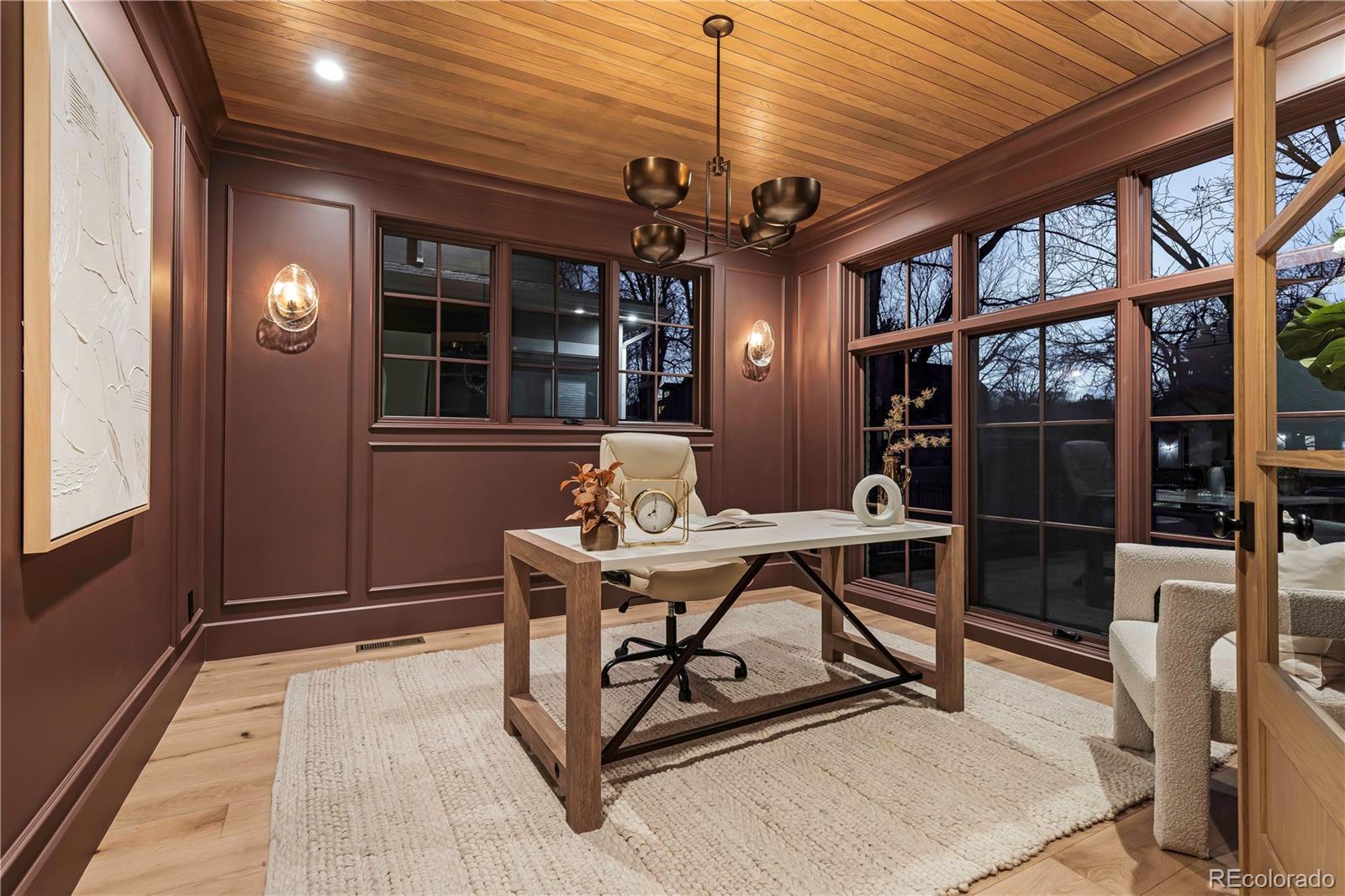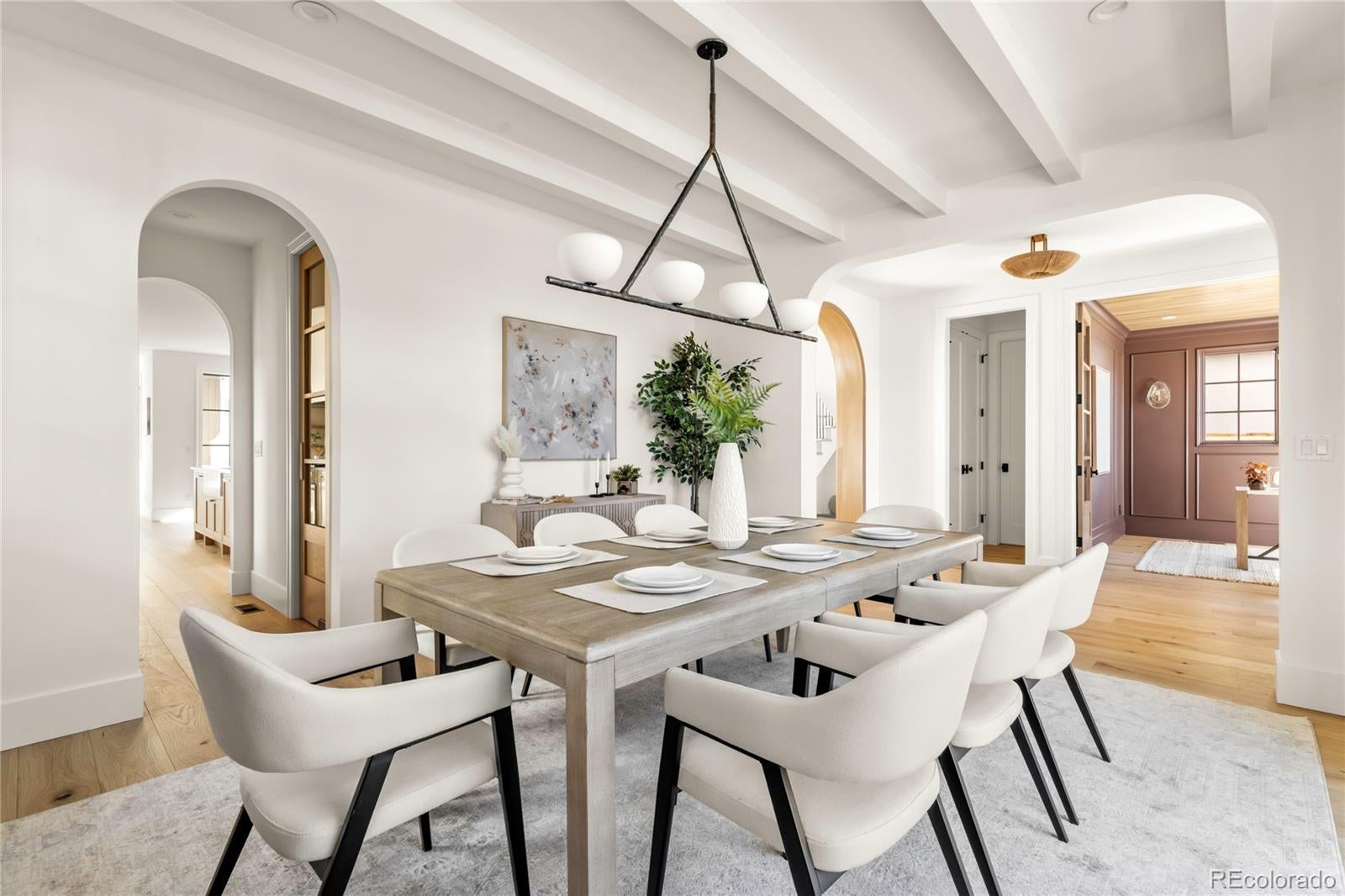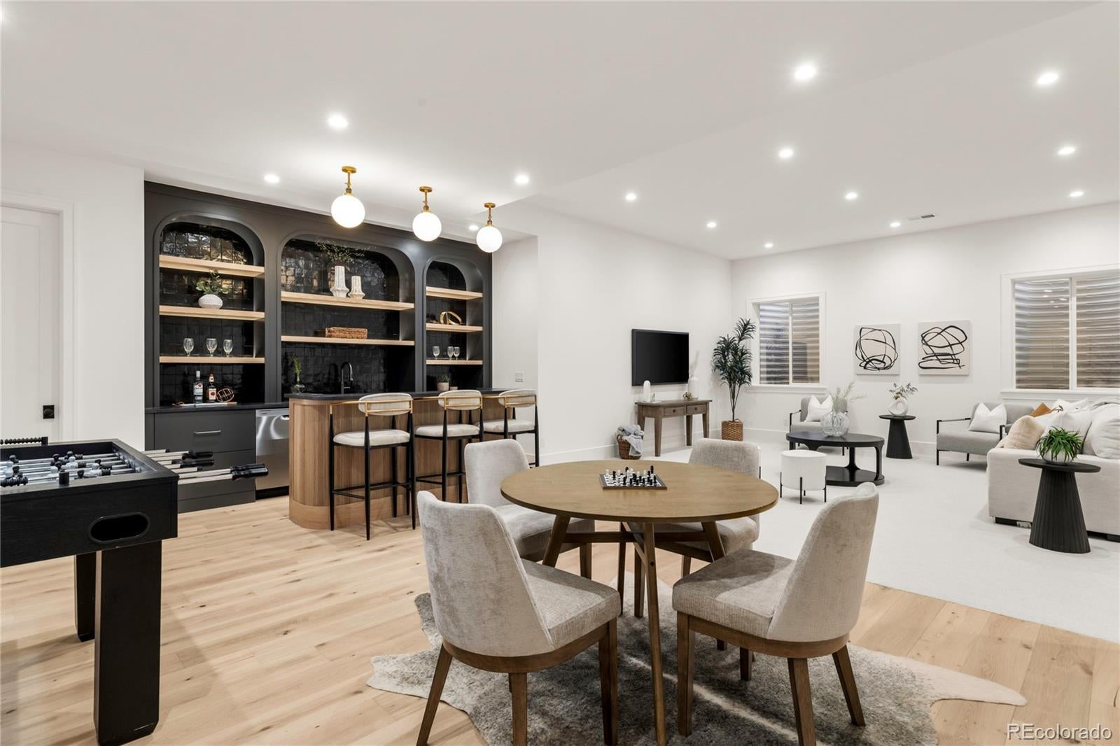 Timeless English Tudor by ATK Construction, offering a refined blend of classic architecture & modern luxury. Striking beamed ceilings, wood-clad arches & handcrafted built-ins create warmth and character throughout. The slurried brick exterior evokes charm, while limestone patios/walkways create seamless indoor-outdoor living.The showcase kitchen features custom cabinetry, oversized refrigeration units, a dedicated bar area with wine+beverage, and a massive island perfect for gatherings. A handcrafted hood surrounds the chef’s range, serving as a striking centerpiece. A sun-filled breakfast nook, encased by floor-to-ceiling windows, overlooks the outdoor oasis with multiple entertaining areas & a stunning exterior fireplace-ideal for quiet evenings. The butlers and walk-in pantry provide ample space to keep small appliances out of sight. The great room is anchored by a stone fireplace & beautiful built-ins, with graceful arches & wood-clad details providing elegance. A sophisticated office features paneling & a French oak ceiling. The mudroom off the attached garage includes a spacious built-in bench, while the powder is finished with an Arabescato marble vanity. The primary suite is a true retreat, vaulted ceilings w/exposed beams and shiplap detailing, a custom built-in corner unit forming a fireside reading nook, and a spa-like bath with honed marble & separate vanities. The walk-in closet connects to a beautiful laundry room for exceptional convenience. Additional upper bedrooms are all ensuite and filled with natural light. The lower level showcases a tavern-inspired bar, large game and dining area, family room, two bedrooms-including one styled as a home gym, ceilings tall enough for a golf simulator and ample storage throughout. With thoughtful design, exceptional craftsmanship, and outstanding indoor-outdoor spaces, this home offers an unparalleled lifestyle in one of Denver’s most coveted neighborhoods—a truly distinctive offering not to be missed.