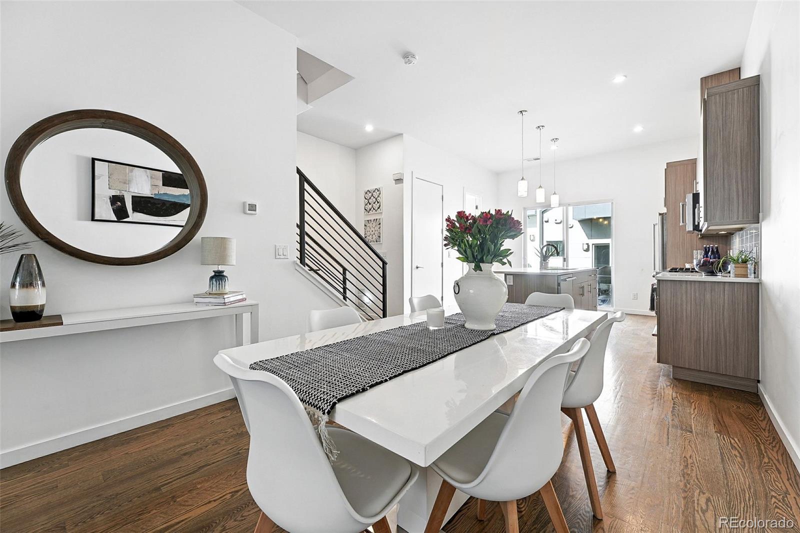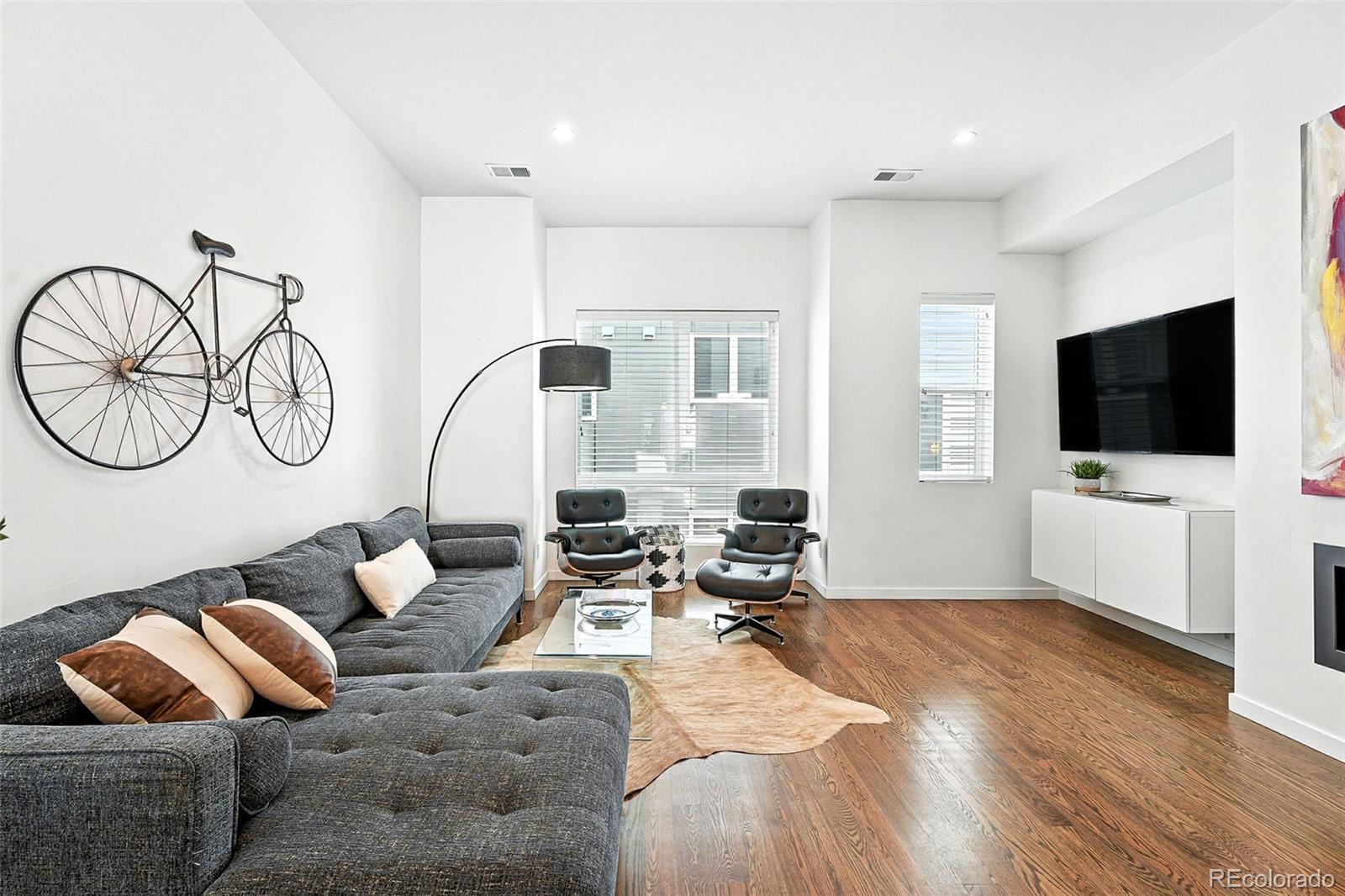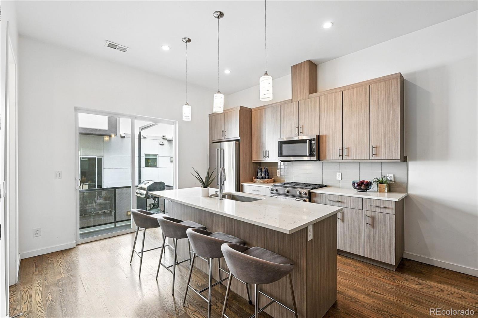 Sophisticated 3 bedroom,4 bathroom townhouse with 1776 ft.² of stylish comfort. From the moment you step inside, the polished stained concrete floors in the entry level set the tone for the homes modern vibe. Upstairs, rich hardwood floors flow seamlessly throughout all of the main living spaces creating warmth and exceptional livability at every turn. The chef inspired kitchen is a show piece with sleek quartz countertops, premium KitchenAid appliances, and plenty of space to gather around the island with friends. The light filled living area with modern gas fireplace and the open dining area make entertaining effortless. The homes smart layout provides privacy and comfort for all. Each of the three bedrooms offers its own en suite bathroom, giving everyone the perfect mix of luxury and convenience. When it’s time to unwind, head up to the expansive rooftop deck – your own private retreat with incredible views of Mile High Stadium and the city skyline. Whether it’s morning coffee, a quiet evening under the stars, or game day celebrations this space was made for FUN! All of this in the prime Sloan’s Lake location. Just a short walk to Denver‘s largest lake and surrounding park with fantastic restaurants nearby and unbeatable accessibility to downtown.