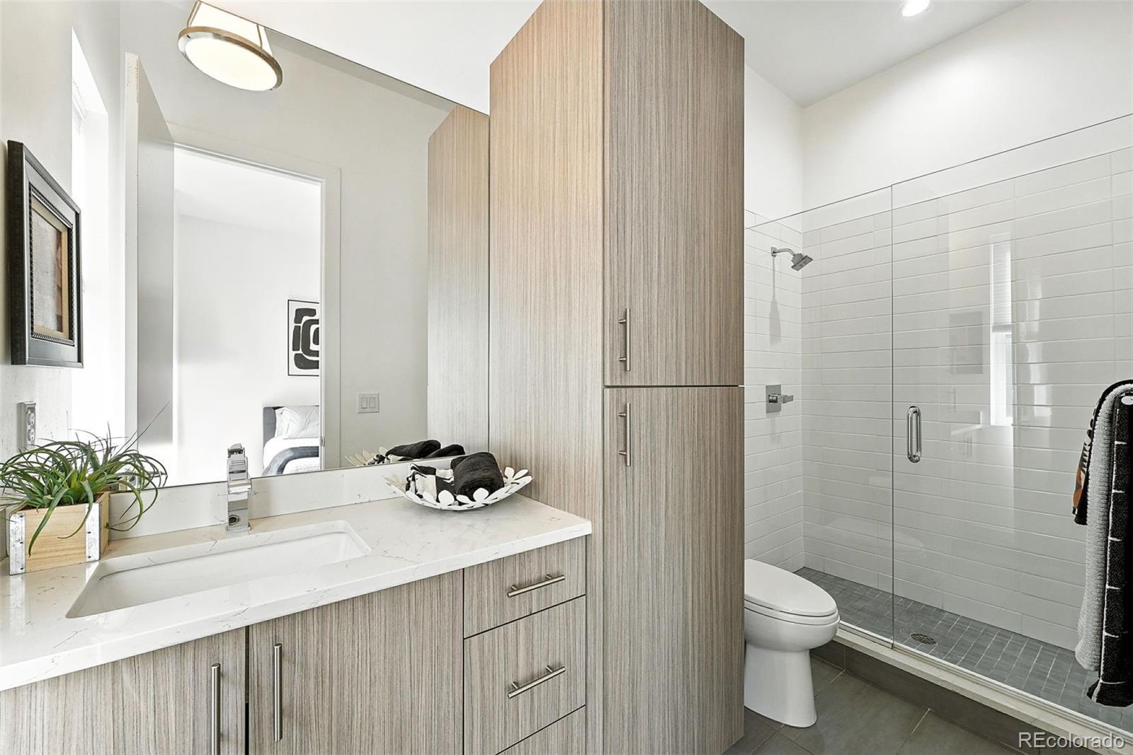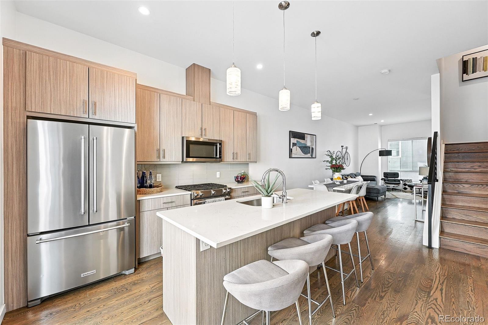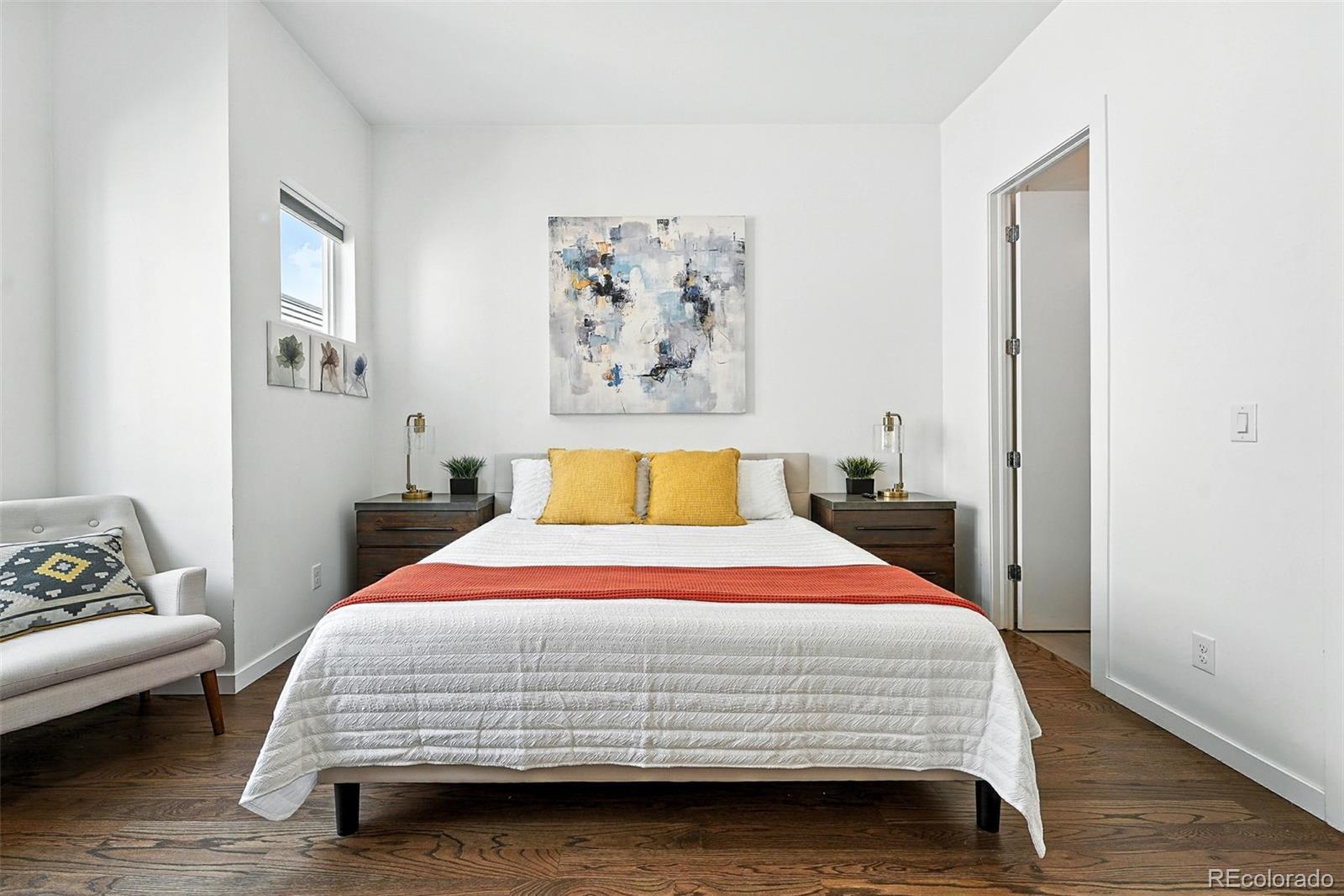 Sophisticated 3 bedroom,4 bathroom townhouse with 1776 ft.² of stylish comfort. From the moment you step inside, the polished stained concrete floors in the entry level set the tone for the homes modern vibe. Upstairs, rich hardwood floors flow seamlessly throughout all of the main living spaces creating warmth and exceptional livability at every turn. The chef inspired kitchen is a show piece with sleek quartz countertops, premium KitchenAid appliances, and plenty of space to gather around the island with friends. The light filled living area with modern gas fireplace and the open dining area make entertaining effortless. The homes smart layout provides privacy and comfort for all. Each of the three bedrooms offers its own en suite bathroom, giving everyone the perfect mix of luxury and convenience. When it’s time to unwind, head up to the expansive rooftop deck – your own private retreat with incredible views of Mile High Stadium and the city skyline. Whether it’s morning coffee, a quiet evening under the stars, or game day celebrations this space was made for FUN! All of this in the prime Sloan’s Lake location. Just a short walk to Denver‘s largest lake and surrounding park with fantastic restaurants nearby and unbeatable accessibility to downtown.