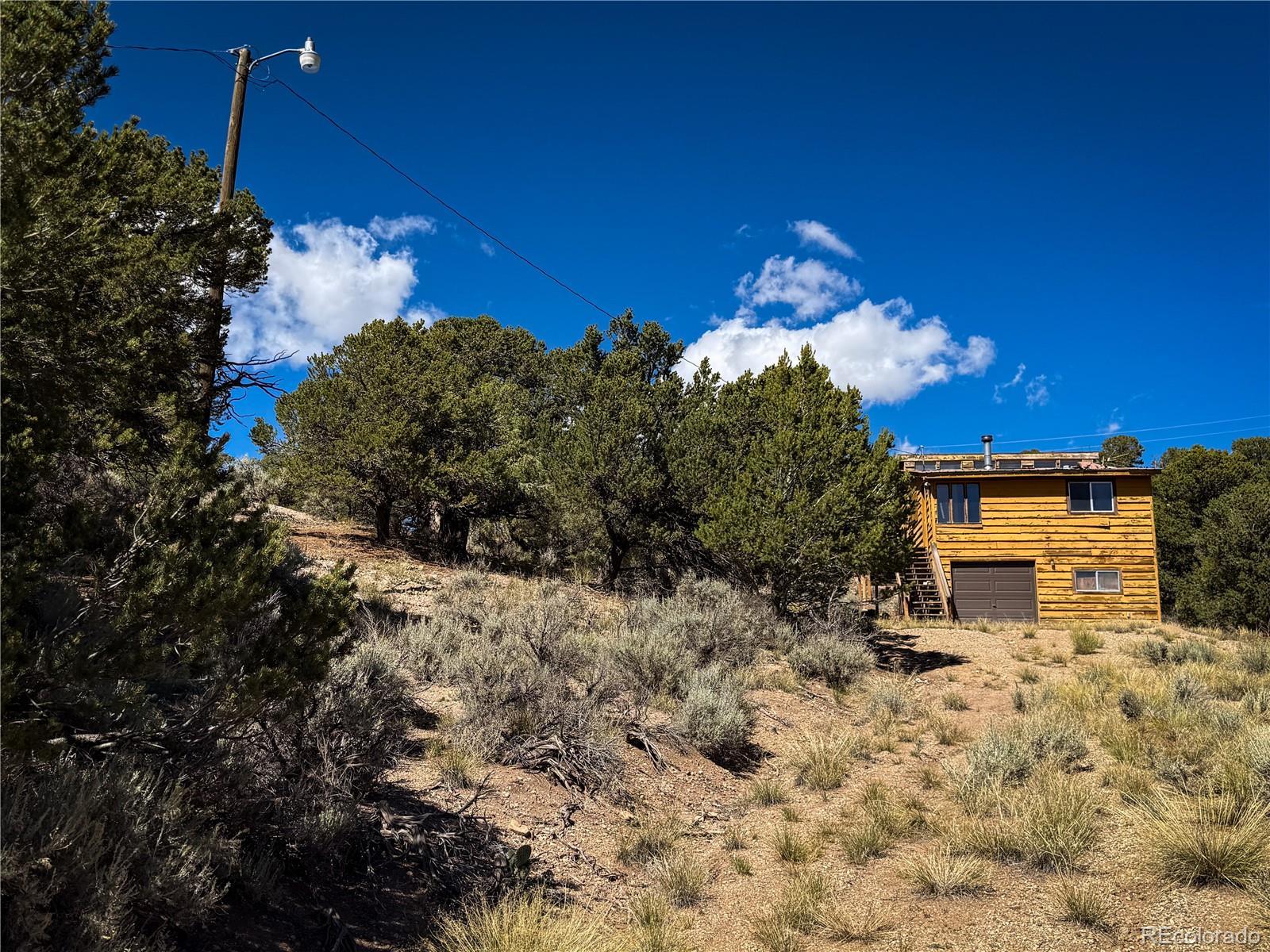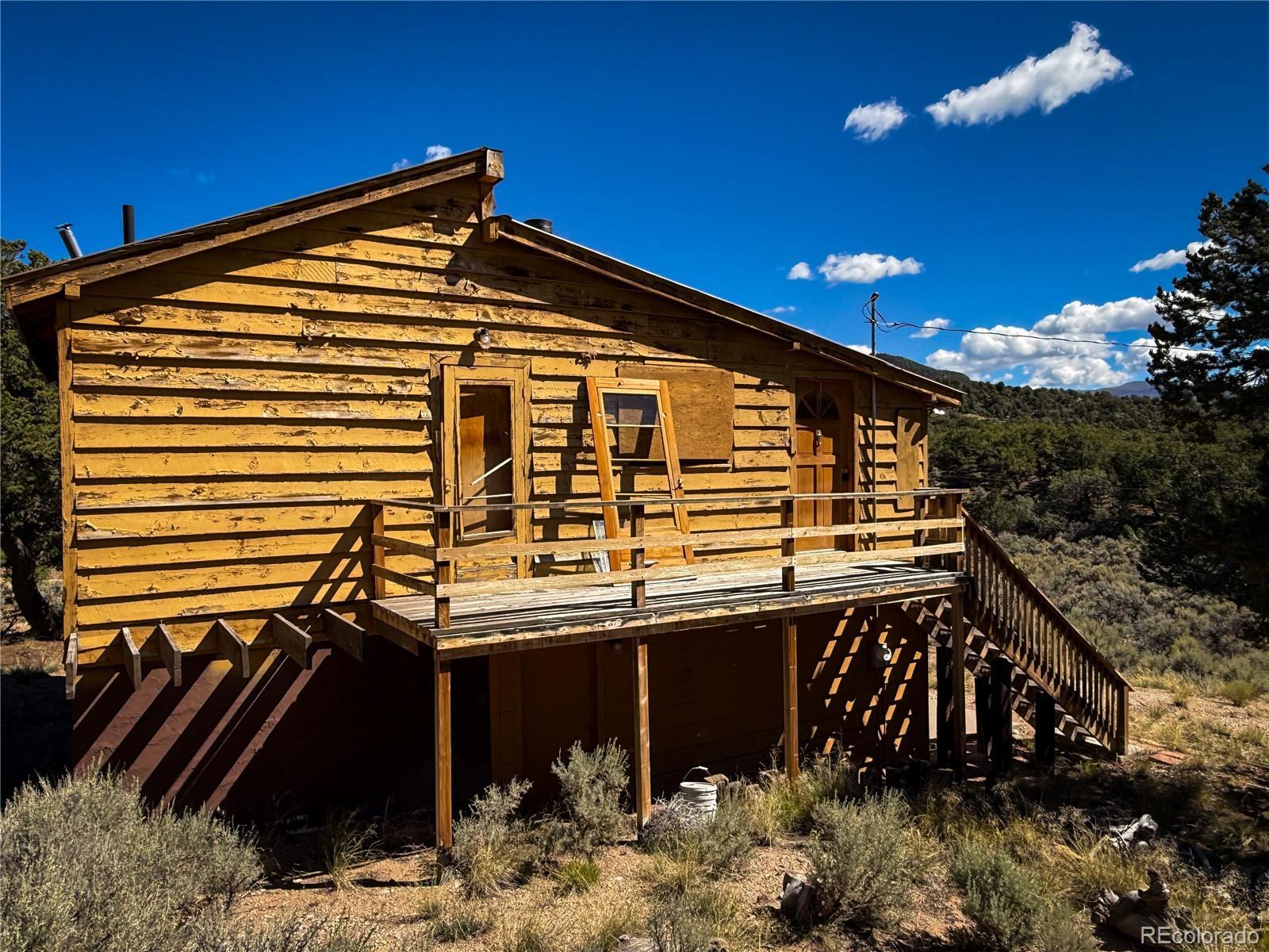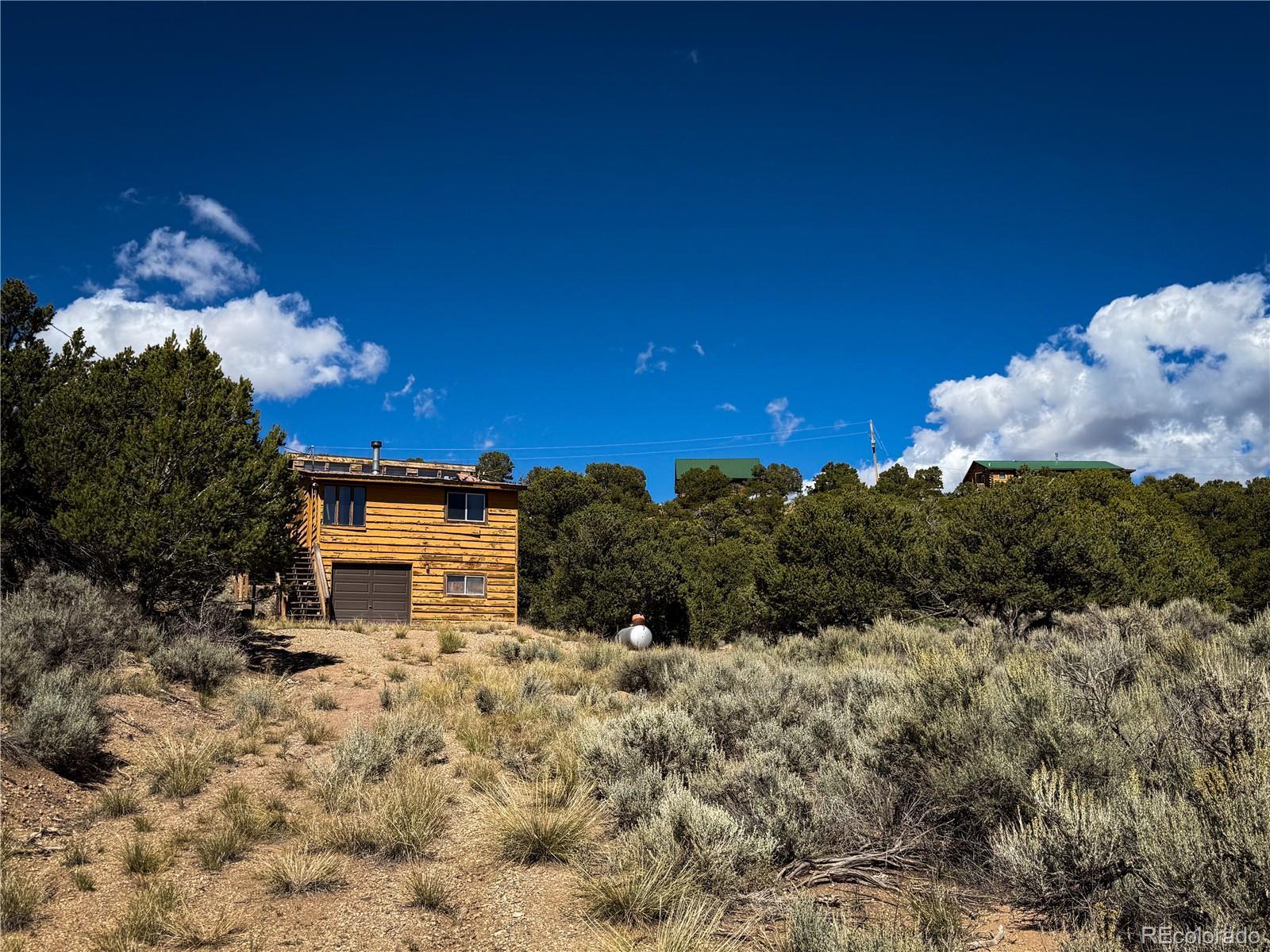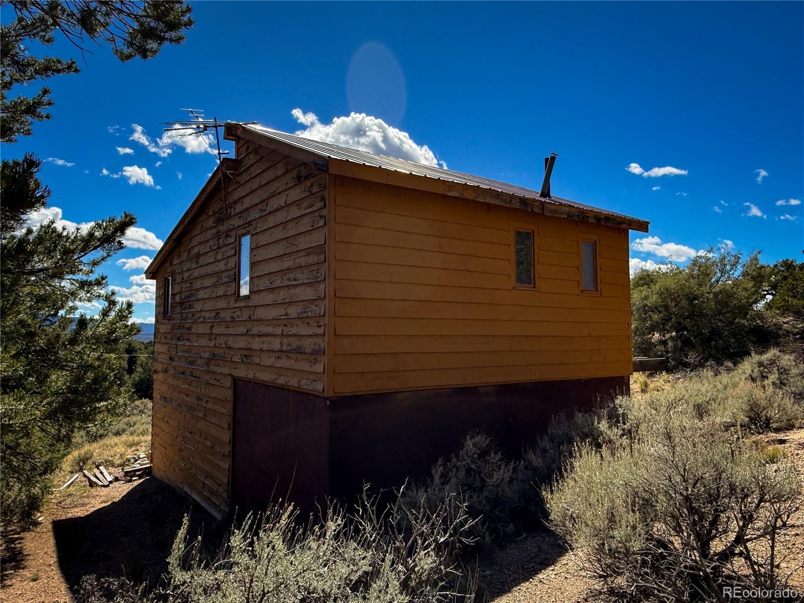 This cozy mountain cabin in the Sangre de Cristo Ranches offers a great opportunity for anyone seeking a hunting retreat, weekend getaway, or off-grid-style living with modern comforts already in place. Built in 1979, the cabin sits on 5 acres with beautiful mountain surroundings and views of Mountain Home Reservoir from the driveway. The home features an open floor plan on the second level, where the bedroom, family room, and living room flow together, creating a warm and inviting atmosphere. A wood stove and propane furnace keep the cabin heated. The lower level includes a garage/workshop space, along with utility rooms for the water pumps and water heater. The property is already connected to power and includes a septic system and cistern for water. Surrounded by nature and located in a designated Dark Sky Sanctuary area, you’ll enjoy abundant wildlife, crisp mountain air, and star-filled night skies. This cabin has been vacant for over five years, and while some routine maintenance and updates may be needed, the essentials are already in place—making it a solid foundation for your vision. Located just minutes from Mountain Home Reservoir and close to Trinchera Ranch and countless outdoor opportunities, this property offers both privacy and convenience. Being sold as-is.