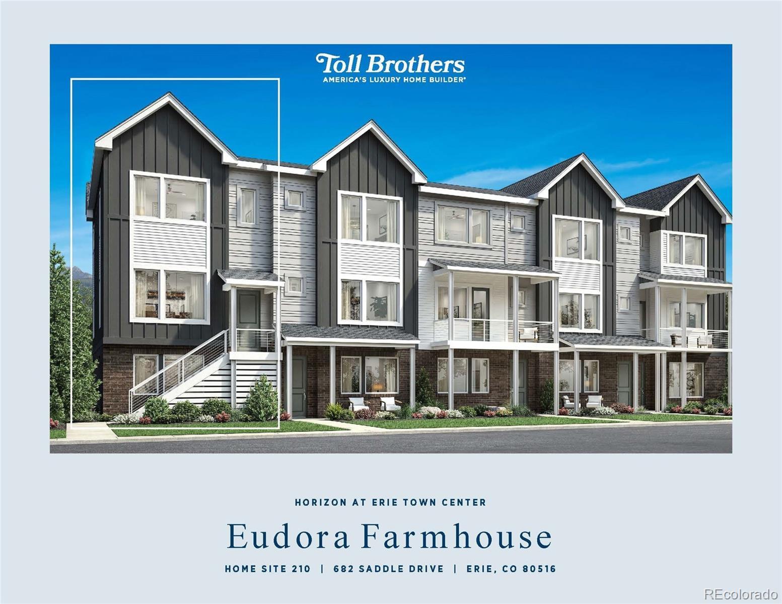 The Eudora plan showcases refined, open-concept design with a floor plan ideal for entertaining and everyday living. You'll love the corner location with views of the community open space. Enter the second level of the townhome to a beautiful open and airy living space with elegant 10' ceilings, generous windows, and open rail. Central to the home is a spacious kitchen, perfect for entertaining, featuring plentiful counter and cabinet space and a large center island with breakfast bar. A comfortable great room features large windows with views to the green space at this corner homesite. A light-infused casual dining space features direct access to the balcony to enjoy time outdoors. A convenient powder bath completes the space. Upstairs at the 3rd floor, the primary bedroom is an elegant retreat with a generous walk-in closet and a charming bath with a dual-sink vanity, shower with seat, and a private water closet. The large secondary bedroom has an en-suite private bath. You'll appreciate the convenient laundry near the bedrooms. Make this townhome yours soon and enjoy the opportunity to select interior colors and finishes with our professional designers at the Toll Brothers Design Studio. *Additional costs apply for design upgrades. Don't miss this opportunity to enjoy low-maintenance living at Erie's newest luxury new home community, Erie Town Center. Schedule an appointment today!