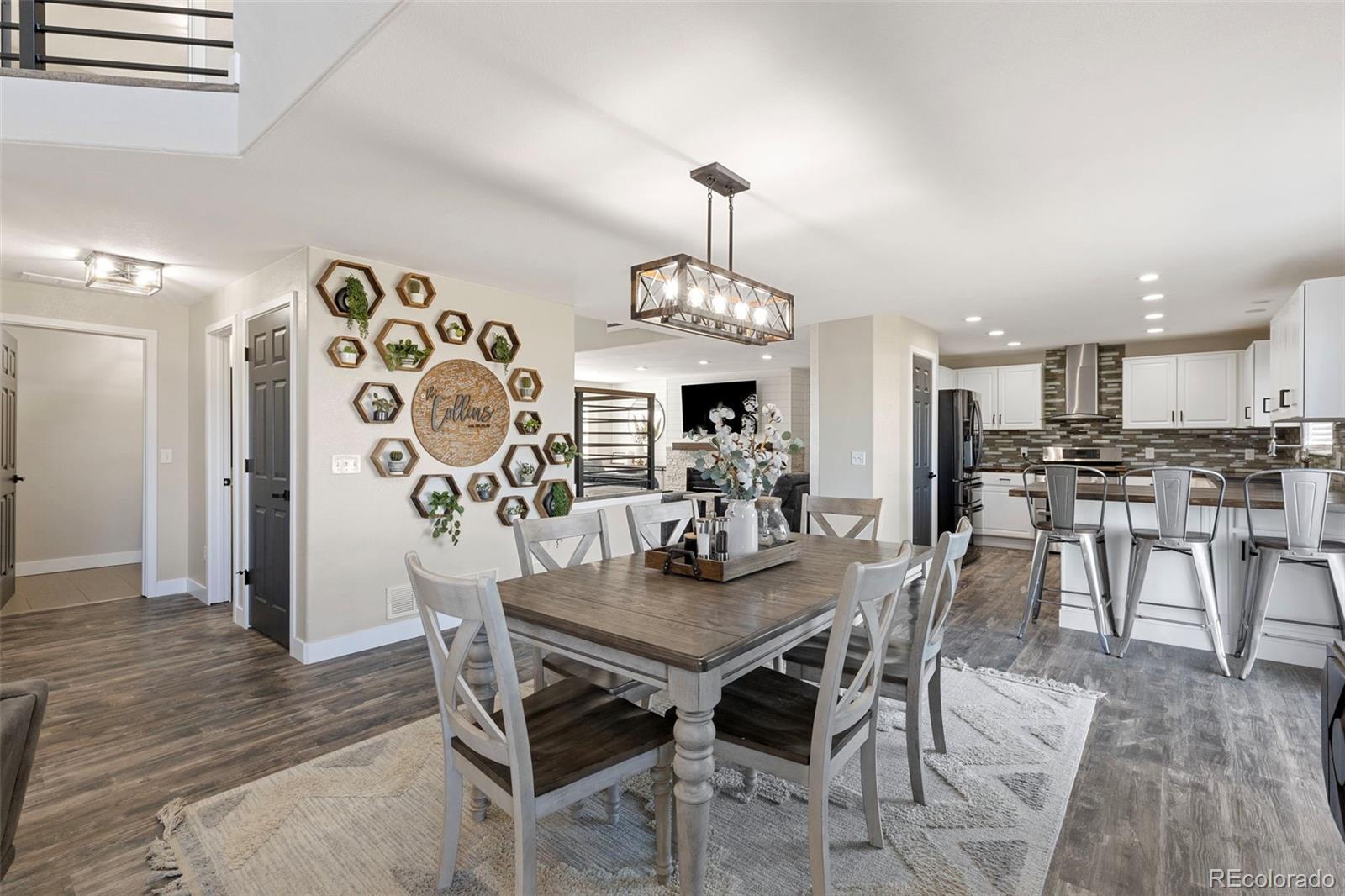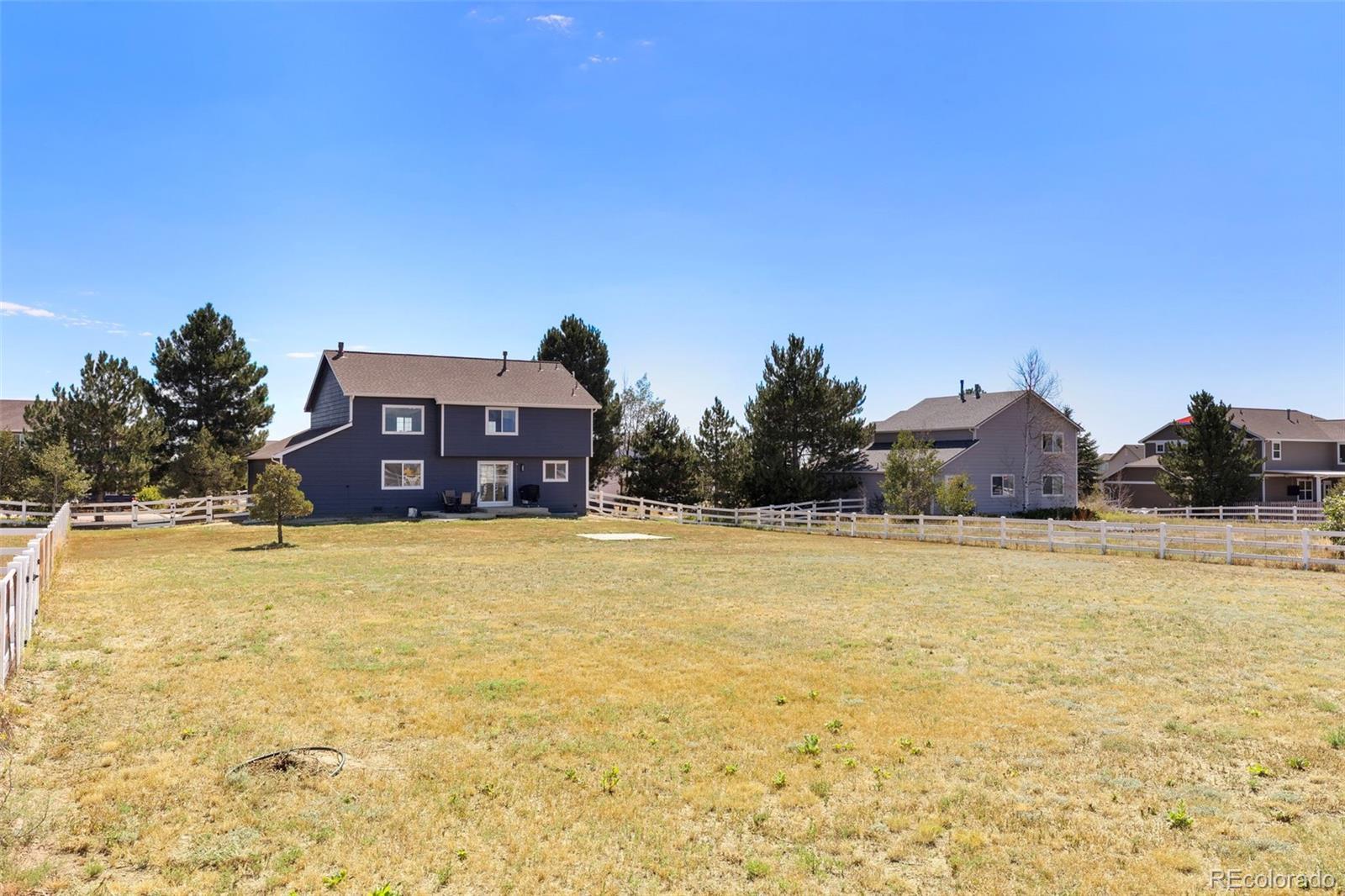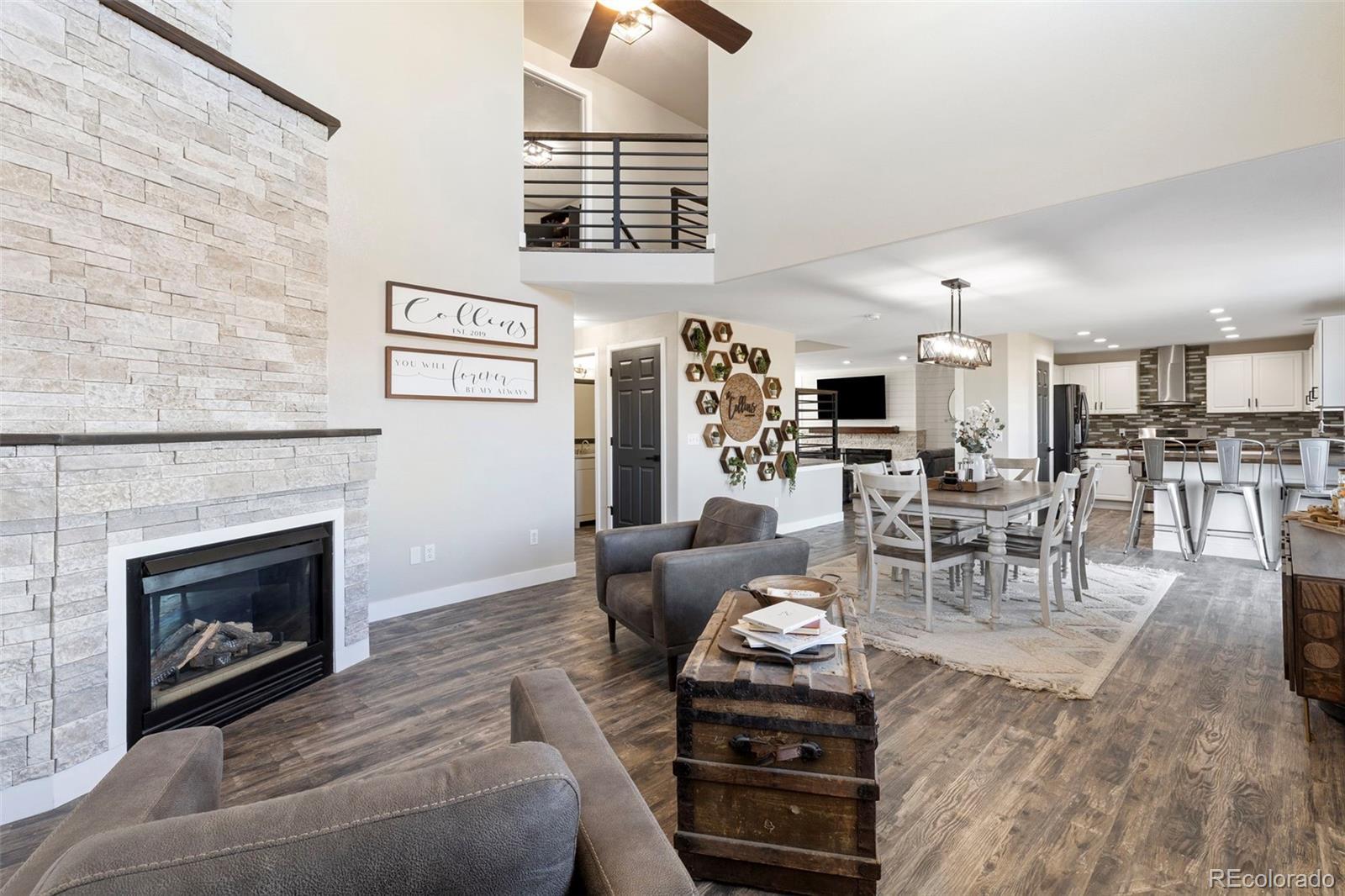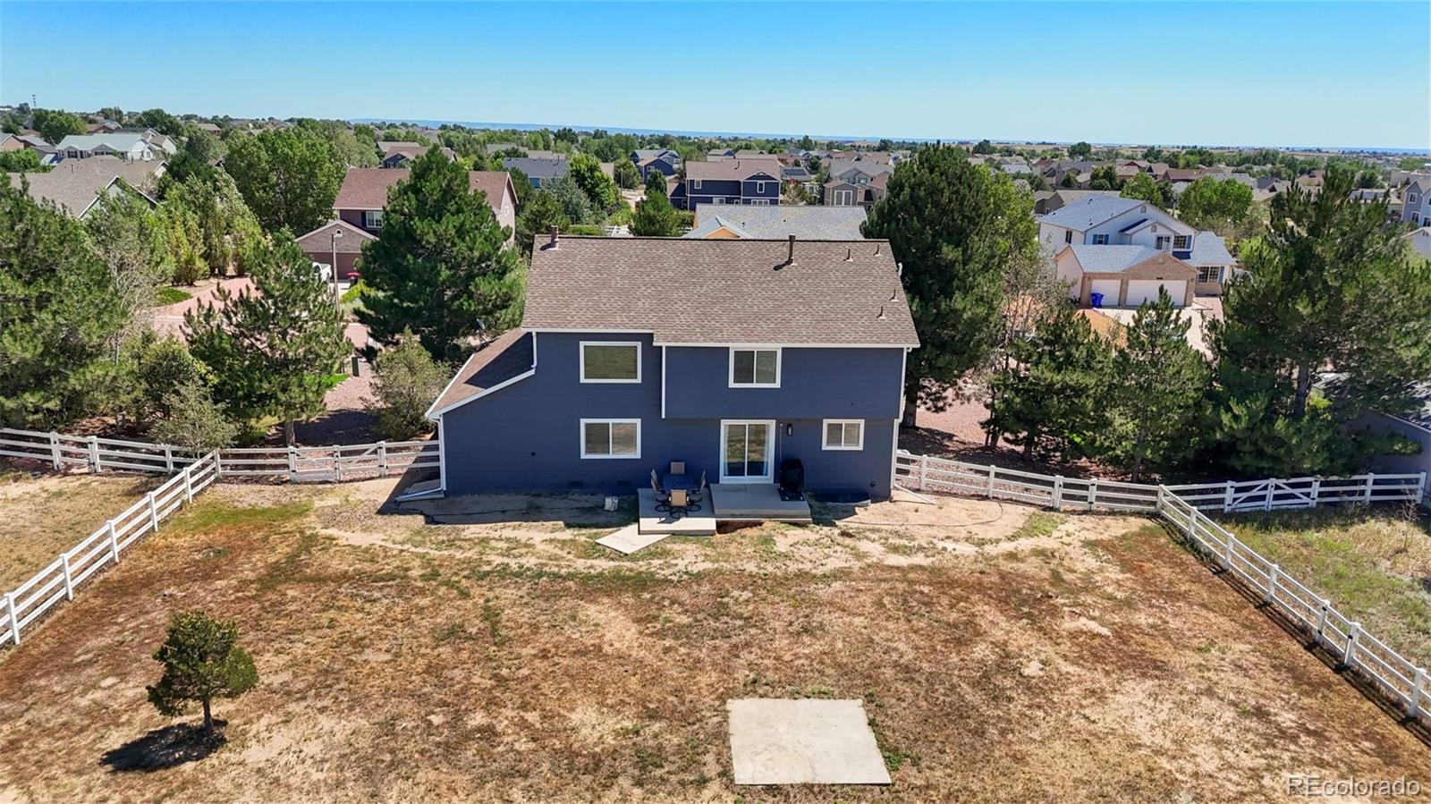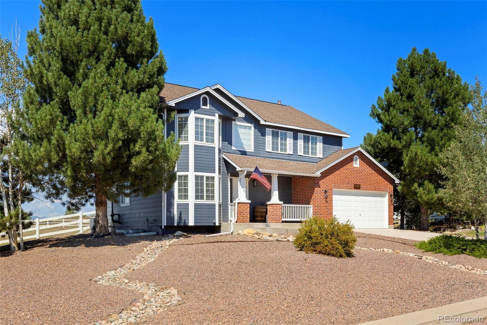 Welcome to this beautifully updated 5-bedroom, 4-bathroom two-story home in the heart of Falcon, where modern comfort meets wide-open Colorado living. Set on a generous lot with low-maintenance landscaping and mountain views, this home offers space, style, and flexibility both inside and out. The main level features an open-concept layout with durable wood-look flooring, abundant natural light, and seamless flow between the living, dining, and kitchen areas—perfect for everyday living and entertaining. The family room, with its soaring ceiling and stacked-stone fireplace, creates a stunning focal point while remaining warm and inviting. The kitchen shines with white cabinetry, stainless steel appliances, space for a large dining table with ample seating, and contemporary finishes that feel fresh and timeless. Sliding doors lead to the backyard, extending the living space outdoors. Upstairs, you’ll find well-sized bedrooms with neutral finishes and plenty of natural light, including a spacious primary suite designed for rest and relaxation. The home also includes a fully finished basement offering incredible versatility—ideal for a second living area, home gym, office, or guest space. Stylish lighting, modern railings, and thoughtful updates throughout give this home a cohesive, move-in-ready feel. With an attached garage, room to spread out, and easy access to schools, shopping, and commuting routes, this property delivers both comfort and convenience in one of Falcon’s most desirable settings. Located in D49 schools, with easy access to Highway 24 east toward Falcon and west to Colorado Springs. With continued growth in the area, you’ll enjoy a country feel paired with abundant city amenities. This is Colorado living done right—space to breathe, room to grow, and a home that’s ready for what’s next.
