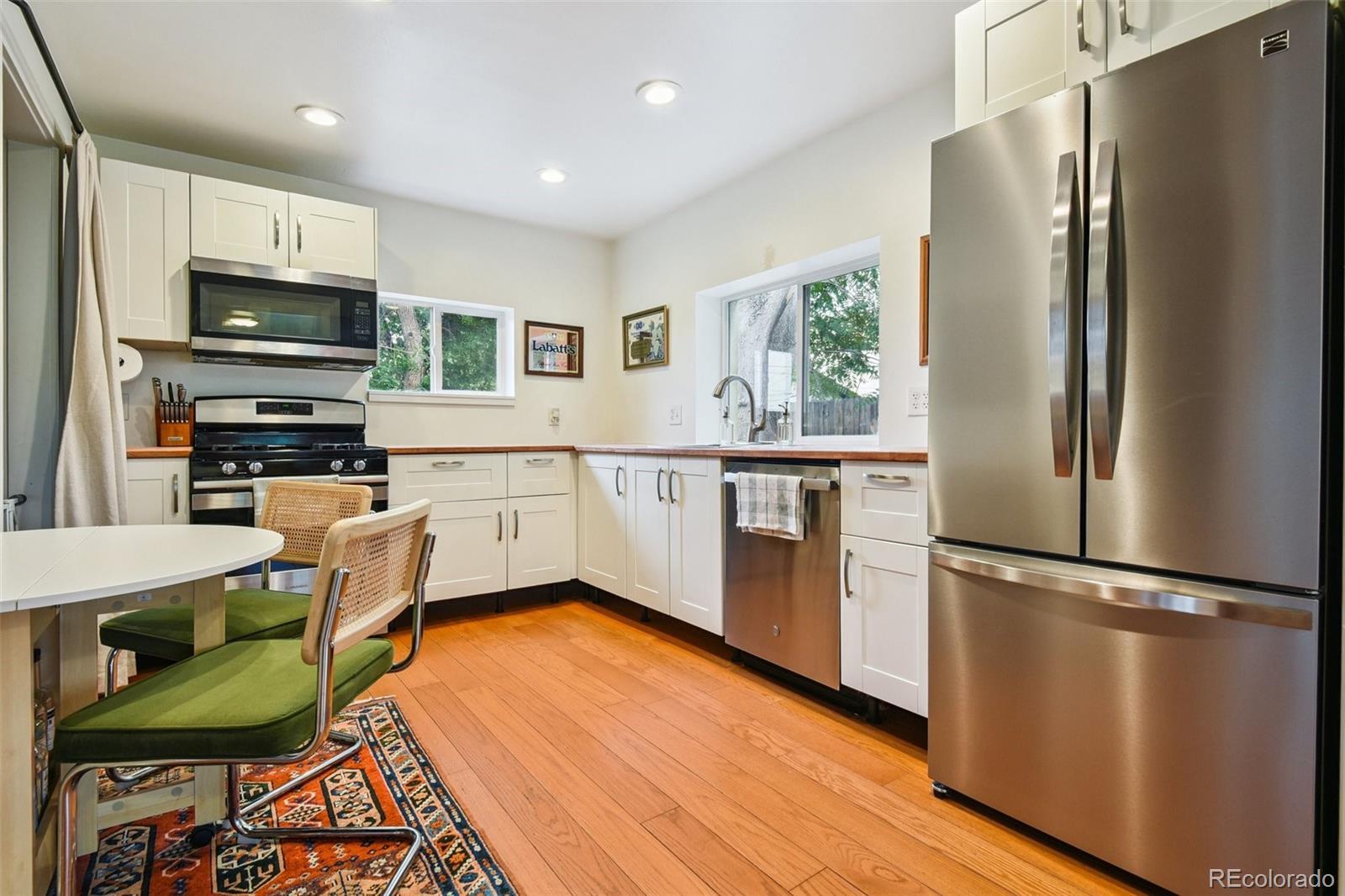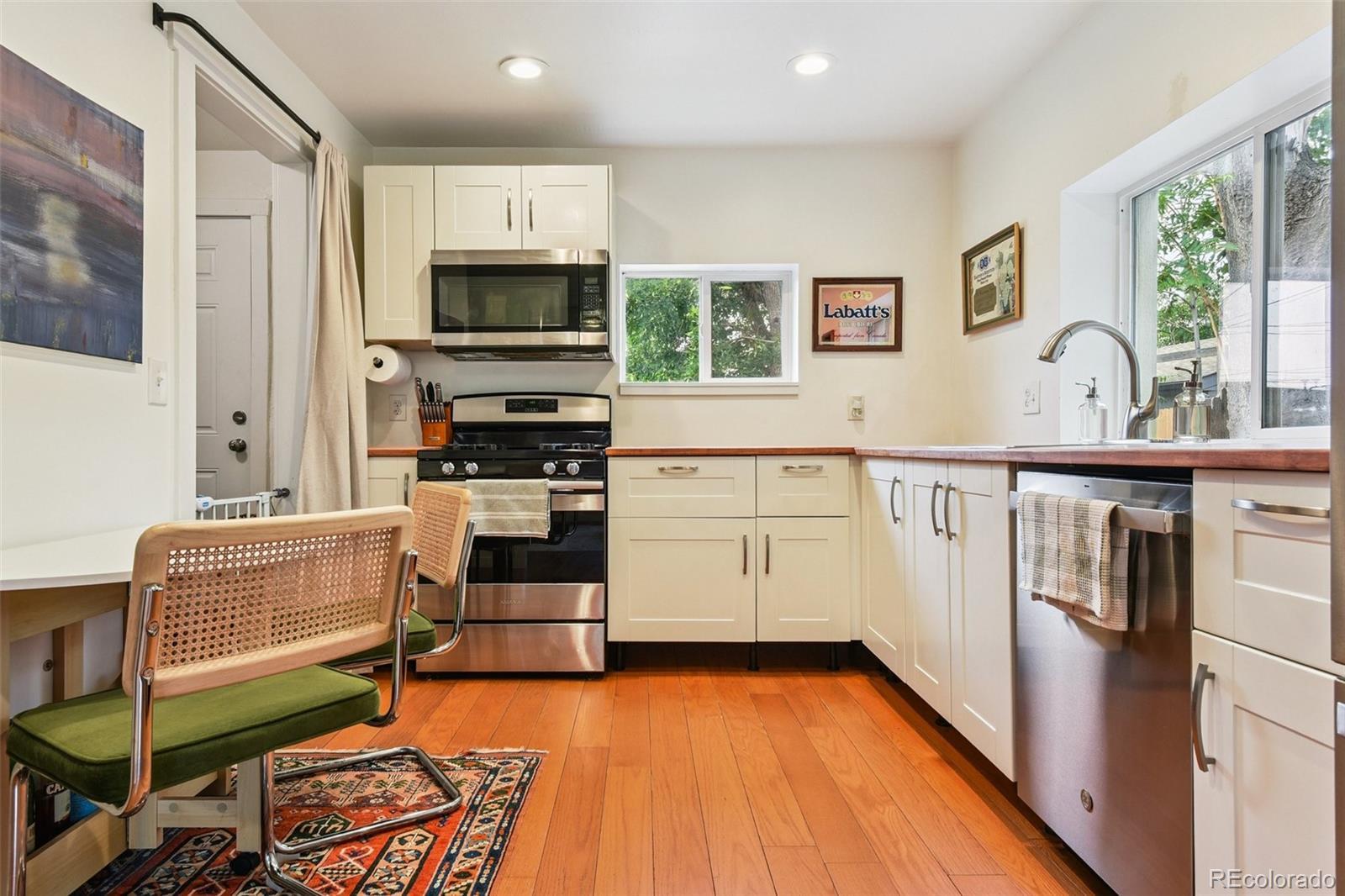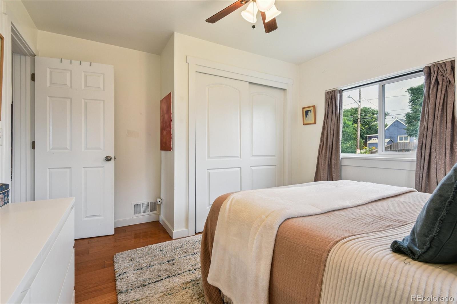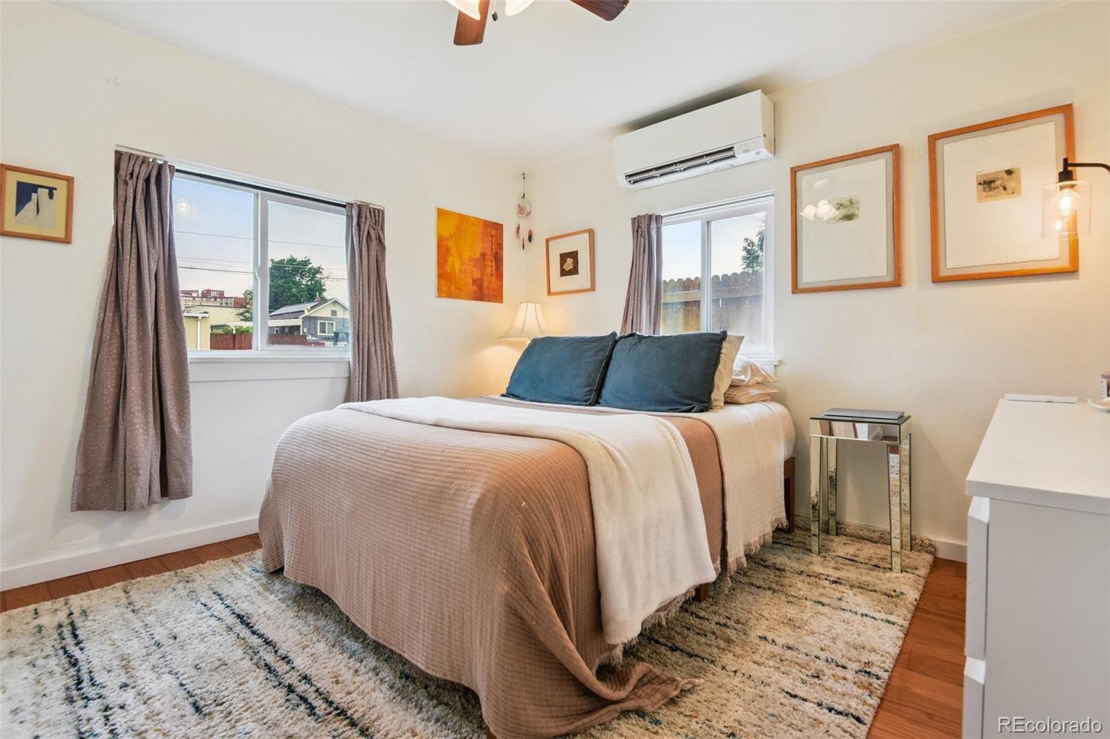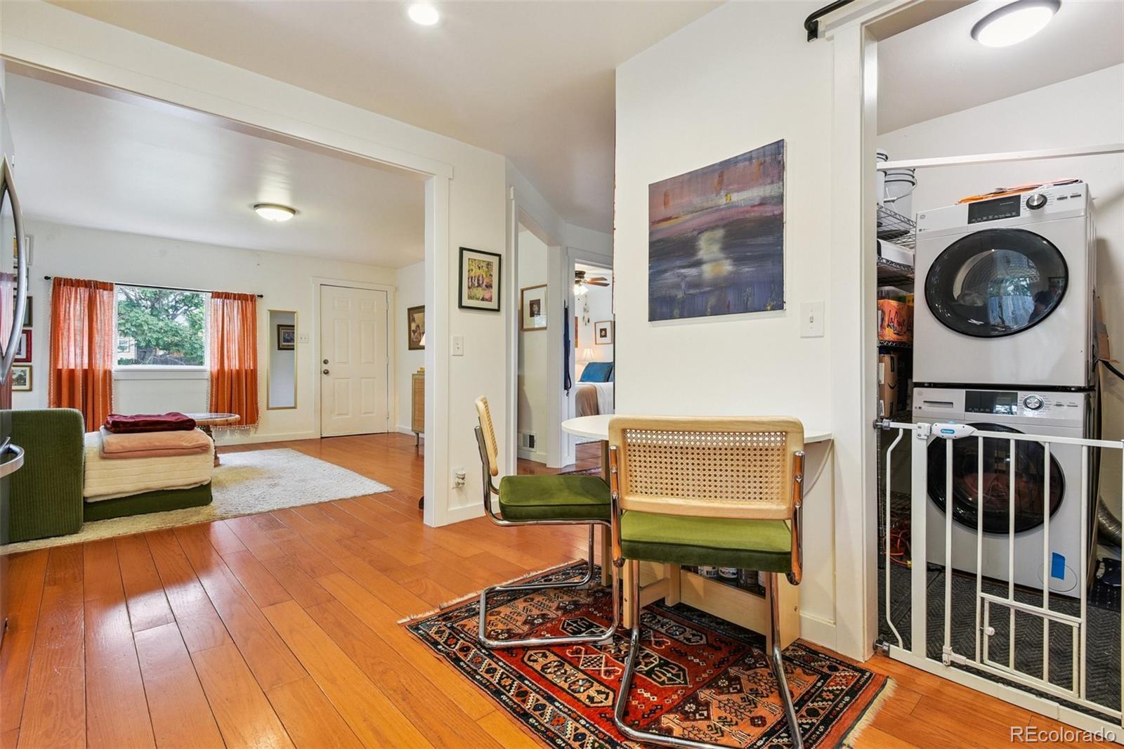 This bright and cheerful two-bedroom, one-bath home in Denver's Globeville neighborhood offers the perfect blend of city convenience and neighborhood charm. Tucked on a quiet street just minutes from Argo Park and the South Platte Farm Trail, with easy access to I-70 and I-25, this home is filled with amazing natural light at all hours of the day. Updates include an energy-efficient washer, dryer, refrigerator, and dishwasher, plus a Mitsubishi mini-split A/C system and a radon mitigation system for year-round comfort and peace of mind. The kitchen and bathroom are stylishly updated, while the newer water heater and Rain Bird sprinkler system keep daily living simple and stress-free. Outside, enjoy a fully fenced yard with a fire pit and a detached two-car garage. Walk to neighborhood favorites including a cocktail lounge, coffee shop, bakery, concert venue, and the RiNo Arts and Ballpark Districts. Move-in ready and full of potential, this is a great opportunity to own a single-family home in one of Denver's fastest-growing areas.