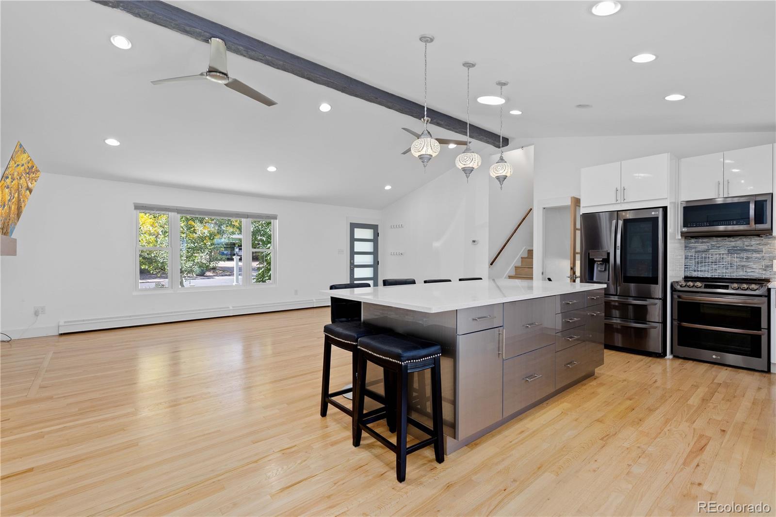 Ceiling Fan(s), Eat-in Kitchen, High Ceilings, In-Law Floorplan, Kitchen Island, Open Floorplan, Quartz Counters, Vaulted Ceiling(s)