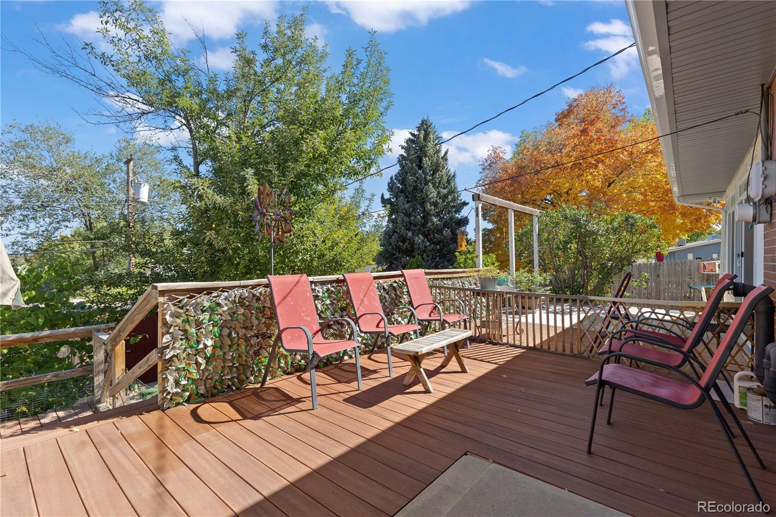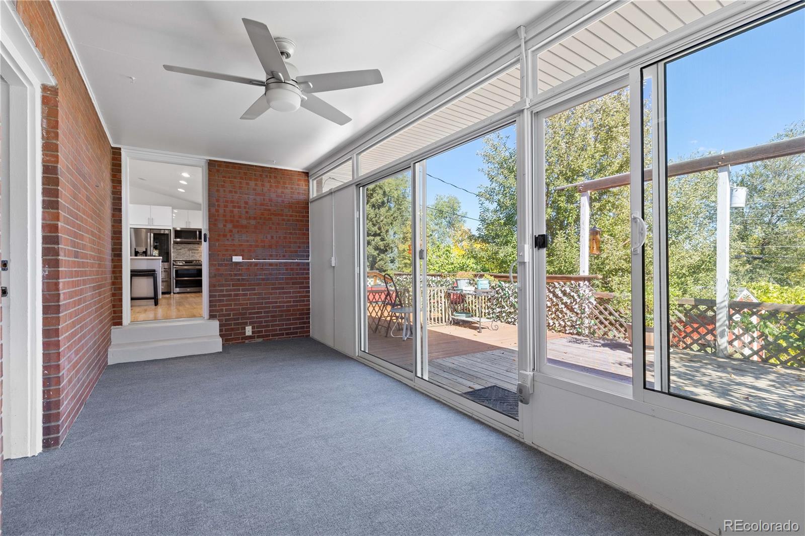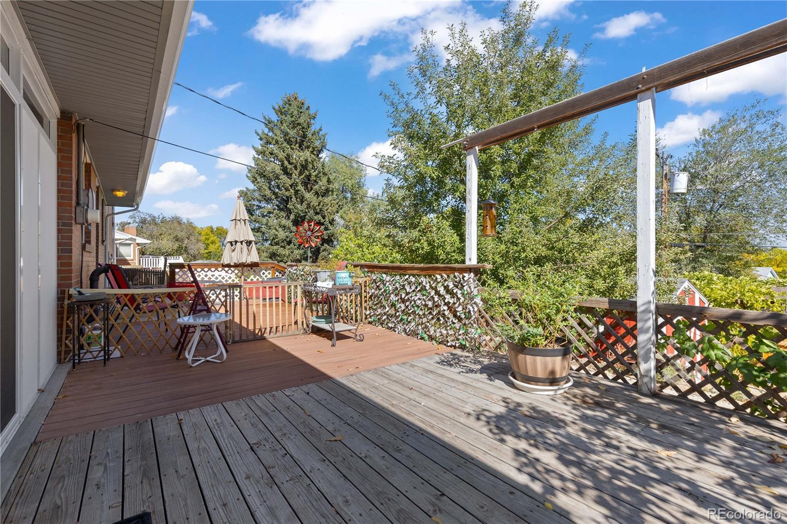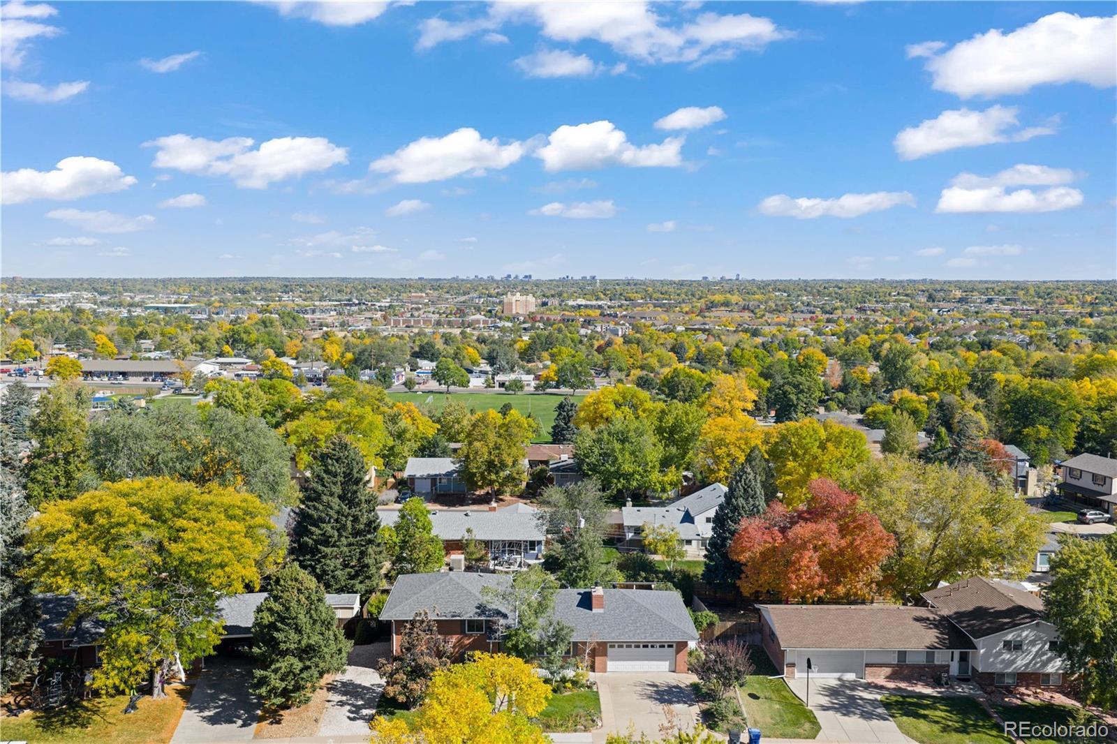 Beautifully updated brick multi-level gem in a great Littleton location with no HOA. This charming home sits on a beautifully landscaped lot and offers an easy lifestyle with lovely city views. Enjoy energy efficiency and a wonderful outdoor setting with big decks, a garden area, and a spacious backyard perfect for entertaining. The home includes both upper and lower level washer/dryer connections and can easily be configured to accommodate an in-law space if desired. The quiet neighborhood is a true highlight, offering the convenience of walking to most amenities, two nearby parks—one with a pool and tennis courts—plus good schools and a daycare close by. This tri-level design provides comfort and accessibility throughout. The open-concept living room and eat-in kitchen flow together seamlessly, united by gorgeous hardwood floors and vaulted ceilings. The chef-worthy kitchen shines with modern updates, while a bright and sunny sunroom off the kitchen adds even more space to relax or entertain. Finished 160' sunroom off the kitchen (not reflected in overall sq ft) is the perfect sunny spot to relax after a long day. Upstairs, you’ll find three generous bedrooms with hardwood floors. The primary retreat features a chic en-suite bath with pebble rock flooring that continues into the stylish walk-in shower. The lower level offers another bedroom, a large family room with access to the backyard, and great flexibility for multi-generational living or guests. Outside, the home offers two driveways with space for an RV, a large patio, and a lovely shed that blends perfectly into the serene, tree-filled backyard. Major updates include remodeled bathrooms (2019), a new heating system (2018), roof (2017), evaporative cooler (2022), remodeled kitchen and great room (2020), new sewer system from house to street (2021), and an enclosed sunroom (2022). This is a move-in-ready gem in a peaceful, well-cared-for community.
