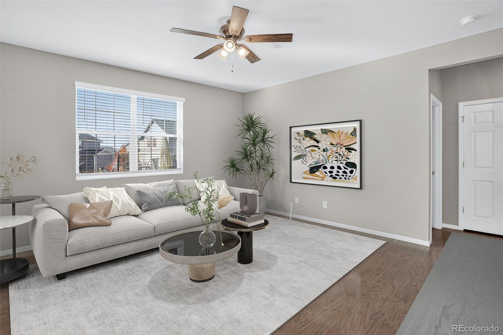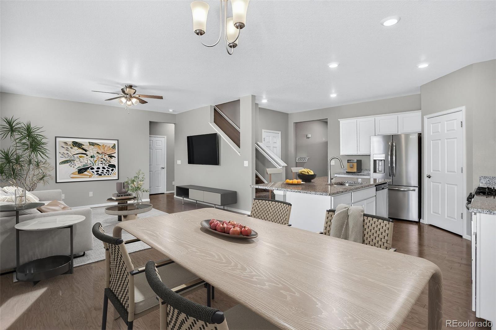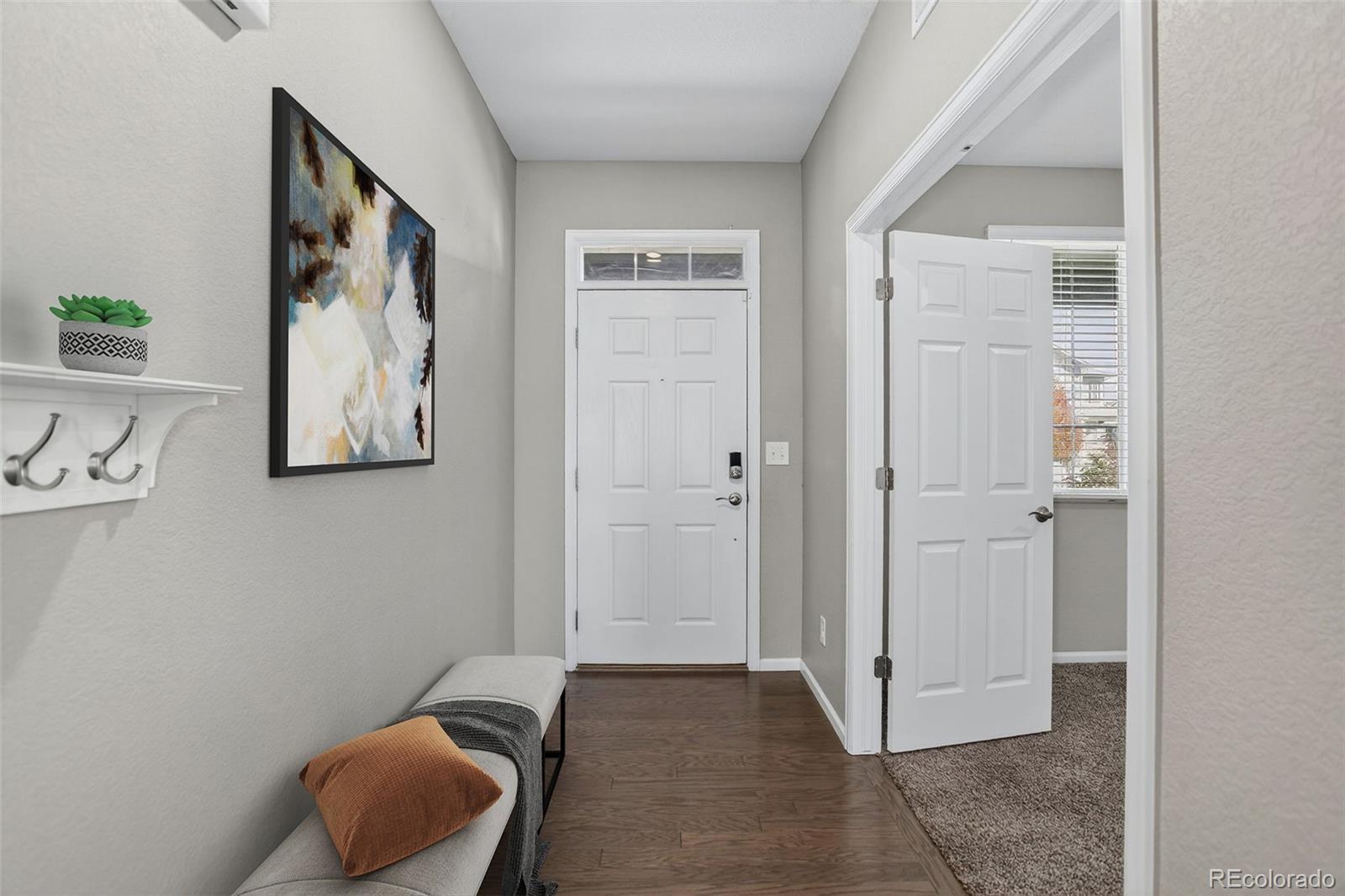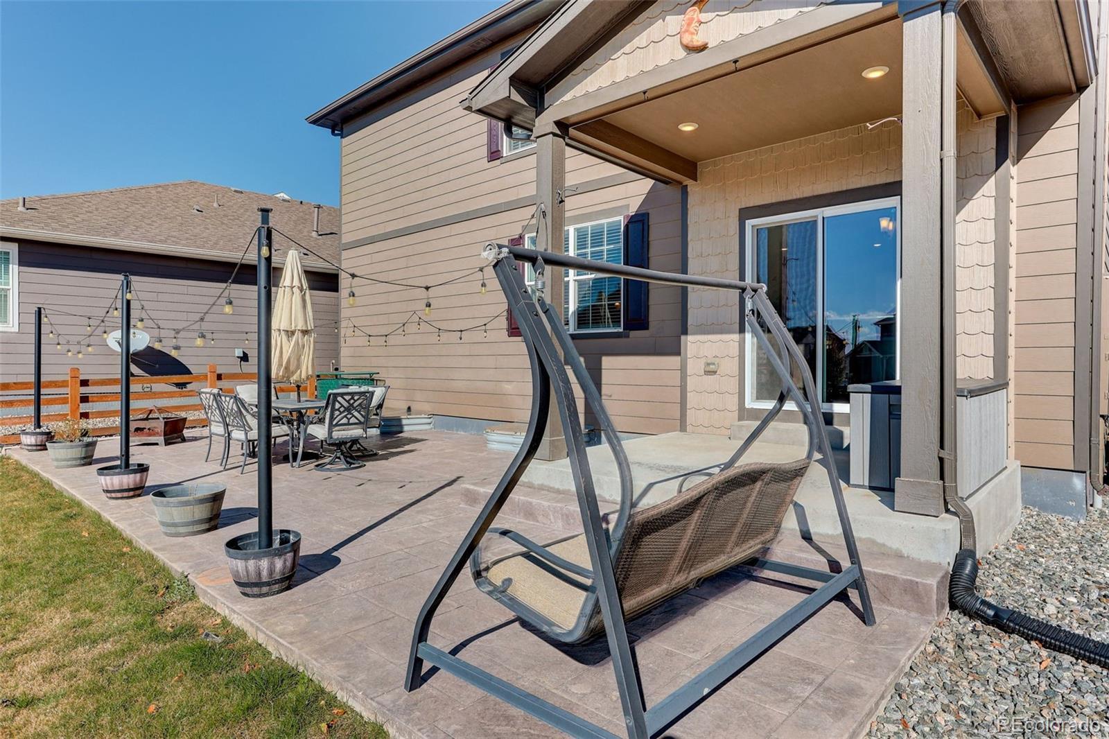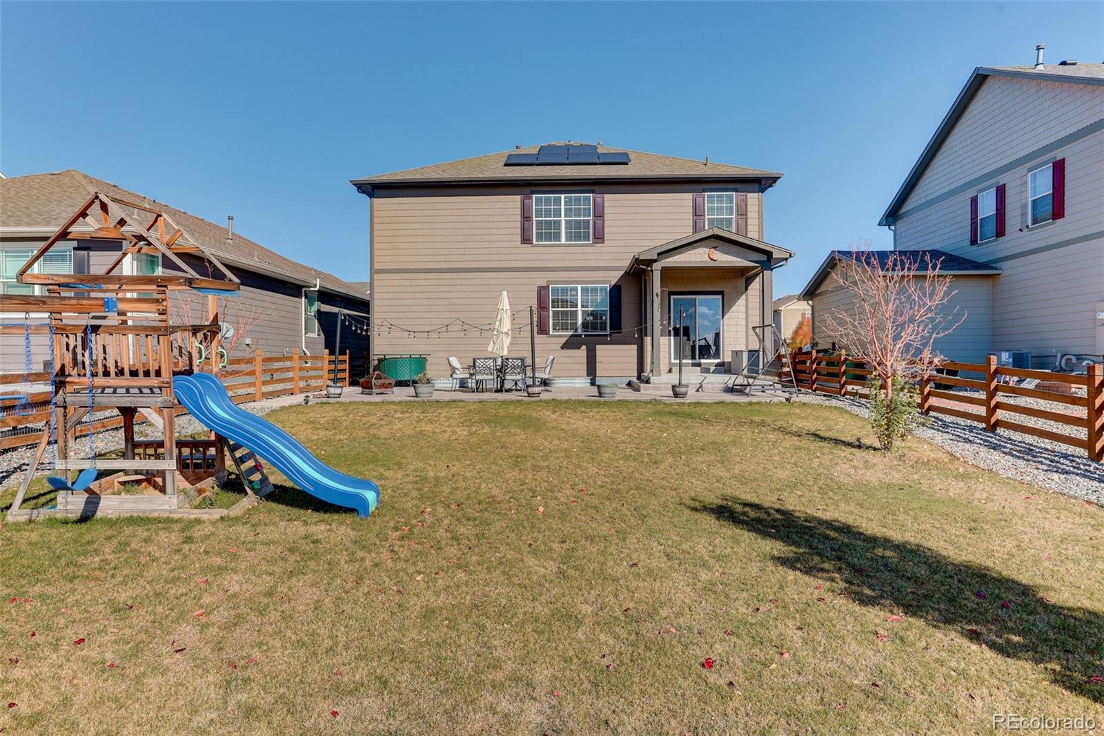 Built in 2019, this thoughtfully designed 5-bedroom home offers a versatile floor plan that adapts to every stage of life. The main level features a bedroom with access to a full bath, ideal for guests, multi-generational living, or anyone seeking single-level convenience. A dedicated home office provides the perfect work-from-home setup, while the open-concept kitchen, dining, and living areas create a connected space for everyday living and entertaining. Upstairs, you’ll find 4 spacious bedrooms, a loft, and a convenient laundry room—washer and dryer included. The primary suite is a true retreat, with a sitting area perfect for reading, relaxing, or watching TV and a spacious walk-in closet. The kitchen shines with white cabinetry, granite counters, and a center island, while owned solar panels provide energy savings. Recent maintenance includes professional cleaning of the gutters and air ducts, offering peace of mind for the next homeowner. The unfinished basement with a rough-in bath offers endless potential for future expansion—whether you envision a media room, gym, or guest suite. Step outside to an impressive backyard offering endless possibilities for outdoor living and entertaining. Enjoy the covered patio and an extended stamped concrete patio to accommodate gatherings large and small—and a playset ready for hours of fun. The covered front porch is the perfect spot to unwind. Some photos have been virtually staged. Located in the Copperleaf community, this home offers easy access to E-470, Southlands Shopping Center, the Aurora Reservoir and DIA. Residents enjoy community parks, trails, the Arboretum Clubhouse, sports court, and outdoor pools. The neighborhood’s Activities Committee hosts year-round events—food trucks, movie nights, and holiday celebrations—that make it easy to connect with neighbors. Plus, the home is within the Cherry Creek School District. This home combines comfort, flexibility, and a fantastic location—don’t miss this opportunity!