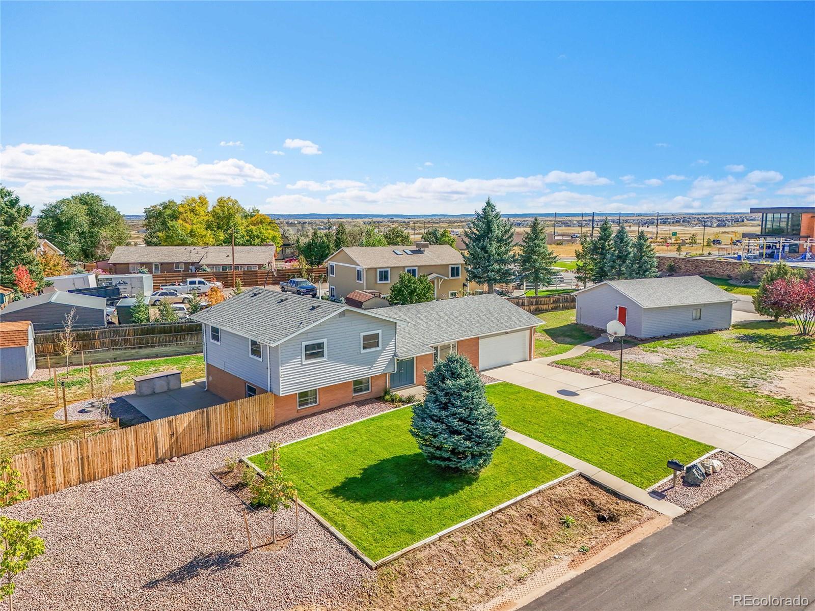 Welcome to 7658 Carolyn Dr, a beautifully maintained 4 bedroom, 2 bathroom home tucked away in a quiet neighborhood. This gem sits on a generous lot and offers the perfect blend of comfort, functionality, and space. Step inside to find a bright, open layout with plenty of natural light, fresh updates, and space to spread out. The kitchen features ample cabinet space and flows easily into dining and living areas, great for everyday living or entertaining. The bedrooms are well sized with good closet space and two full bathrooms. Outside, you'll love the large yard with a built in fire pit, perfect for gardening, pets, relaxing and entertaining. The property features a large, detached heated garage that's perfect for a workshop, extra storage, or hobby space. Enjoy the quiet, walkable neighborhood with beautiful views of the front range. Located just minutes from the Castle Rock Outlets, local restaurants, the Parker incline, Daniels Park and I-25, this home is truly in the perfect location. You'll enjoy both convenience and peace and quiet with no traffic noise. With no HOA and plenty of room to make it your own, this home offers the freedom and flexibility you've been looking for!