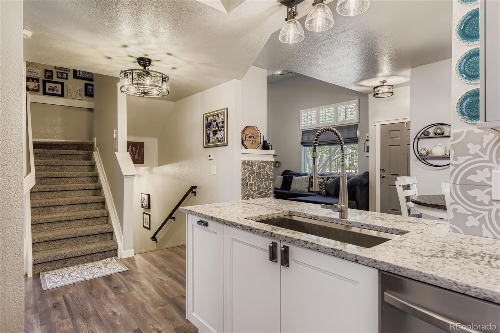 Beautifully updated from tip to toe two-story townhome. This three-bedroom, three-bathroom gem sits inside the gated, resort-style community of Palomino Park in the vibrant Silver Mesa neighborhood. The home is fully remodeled with granite counters, new cabinets, new wood floors and carpet, new paint throughout, new plantation shutters and blinds, new light fixtures. All you have to do is enjoy a resort-like lifestyle. The main level features a spacious living room with vaulted ceilings, a stunning kitchen, and newer appliances. The main level bedroom with French doors can double as a home office and has an adjacent ¾ bath. Dining room with access to a private patio where you can BBQ and entertain. The primary suite, with vaulted ceilings, a 5 pc bath with a soaking tub, a shower, and a walk-in closet. Secondary upstairs bedroom is oversized, also has vaulted ceilings, a walk-in closet, and an en-suite bath. The oversized garage comes with bonus storage for all your gear, gadgets, or hobbies. Palamino Park gives you access to two exclusive clubhouses. You have the Silver Mesa clubhouse for a quick hangout or the expansive Colorado Club for a full-on resort experience. You have top-of-the-line gym equipment, a full-size indoor basketball court, racquetball, 4 new pickleball courts, a 9-hole disc golf course, and free fitness classes. Outside, lush landscaping and big grilling areas make weekend gatherings a breeze. There's also a paved jogging path, three full-size tennis courts, an outdoor putting green, soccer and football fields, a baseball diamond, grass and sand volleyball courts, and a pond with a gazebo and picnic spots. Plus steam rooms, massage therapy, and a resort-style pool and spa! If that’s not enough, Highlands Ranch offers access to all 4 state of the art rec centers. You have to see this home!