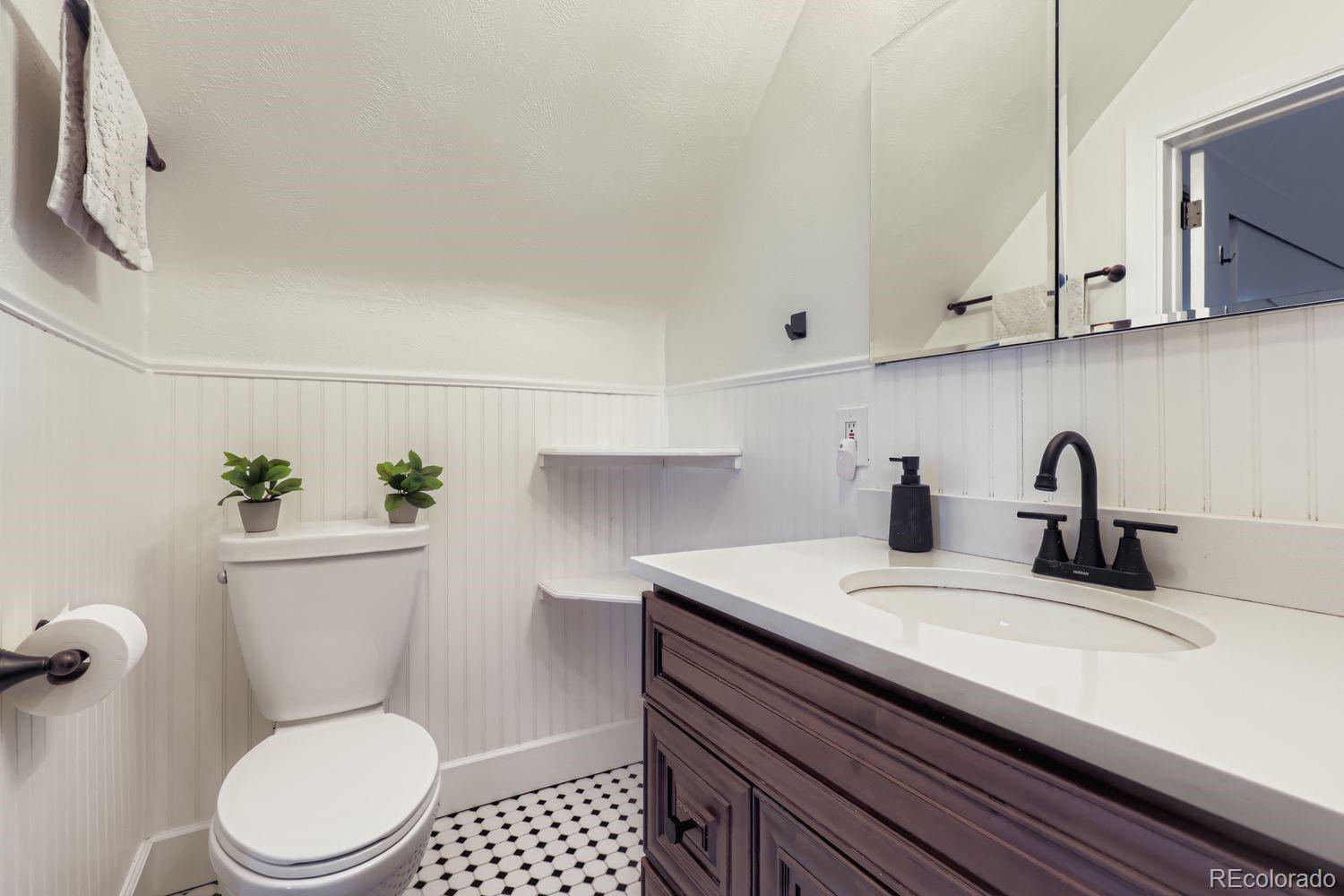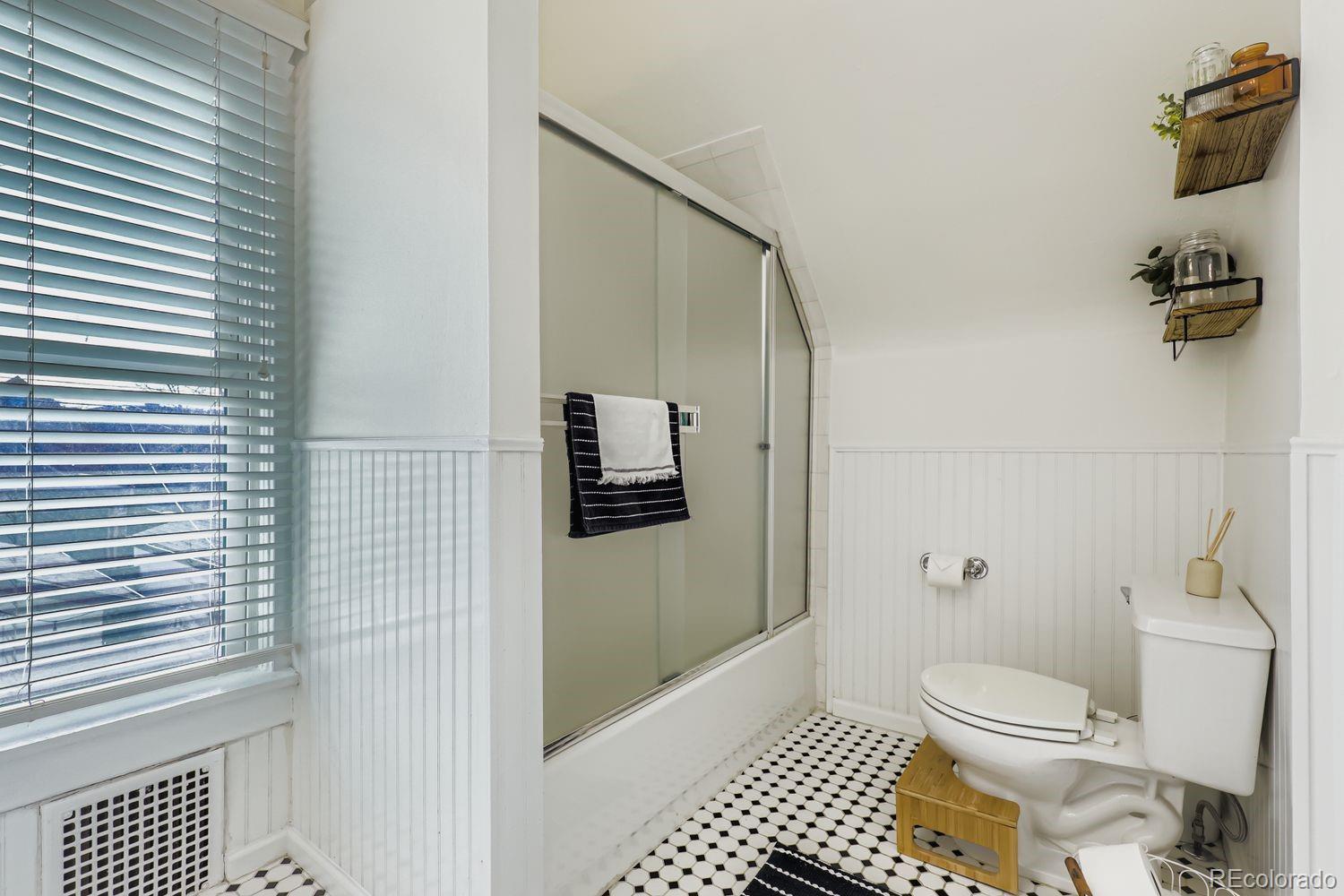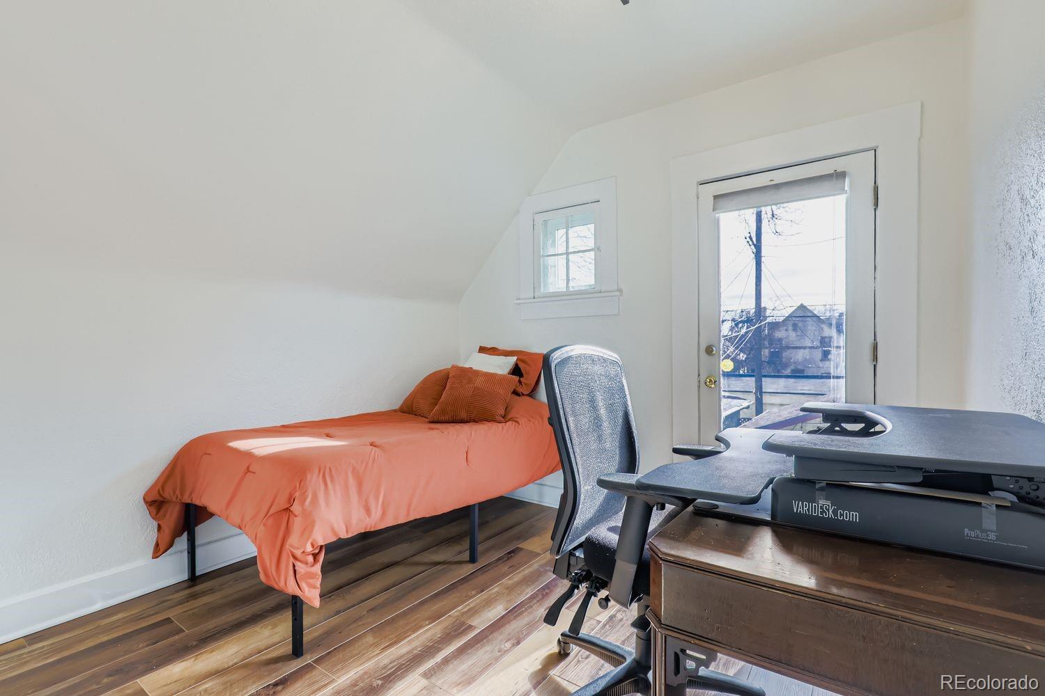 Charming, thoughtfully updated Victorian in Denver’s historic Baker neighborhood. A welcoming front porch framed by ornate gingerbread trim leads into this turn-of-the-century home. The main level offers an open floor plan with generously sized living, dining, and kitchen spaces. Soaring ceilings and expansive windows with custom blinds highlight the original fireplace, hardwood floors, and exposed brick. Beyond the powder bath, the updated kitchen features newer cabinetry, granite countertops, and stainless steel appliances, along with a convenient laundry closet and direct access to the backyard, where a Trex deck steps down into the fully fenced yard. Upstairs, all three bedrooms are located on the same level, including a primary suite with a private three-quarter bath and ample space for a king-size bed and desk or vanity. New laminate flooring extends throughout the upper level into two additional bedrooms that share a full bathroom. A spacious detached two-car garage provides convenient parking and storage, while the unfinished basement offers ample additional storage. Located near the Broadway light rail station, I-25, neighborhood restaurants, coffee shops, and local amenities, this home blends preserved architectural character with practical updates in one of Denver’s most walkable neighborhoods.