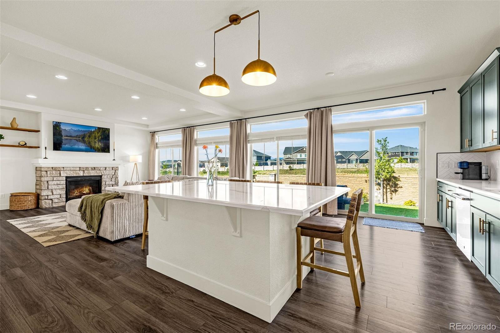 Breakfast Bar, Built-in Features, Eat-in Kitchen, High Ceilings, Kitchen Island, Pantry, Quartz Counters, Vaulted Ceiling(s)