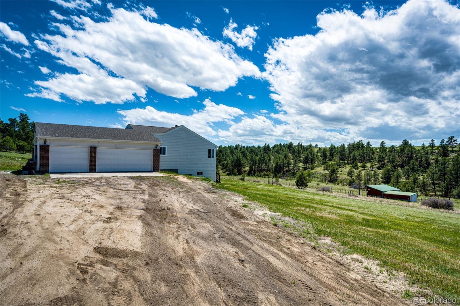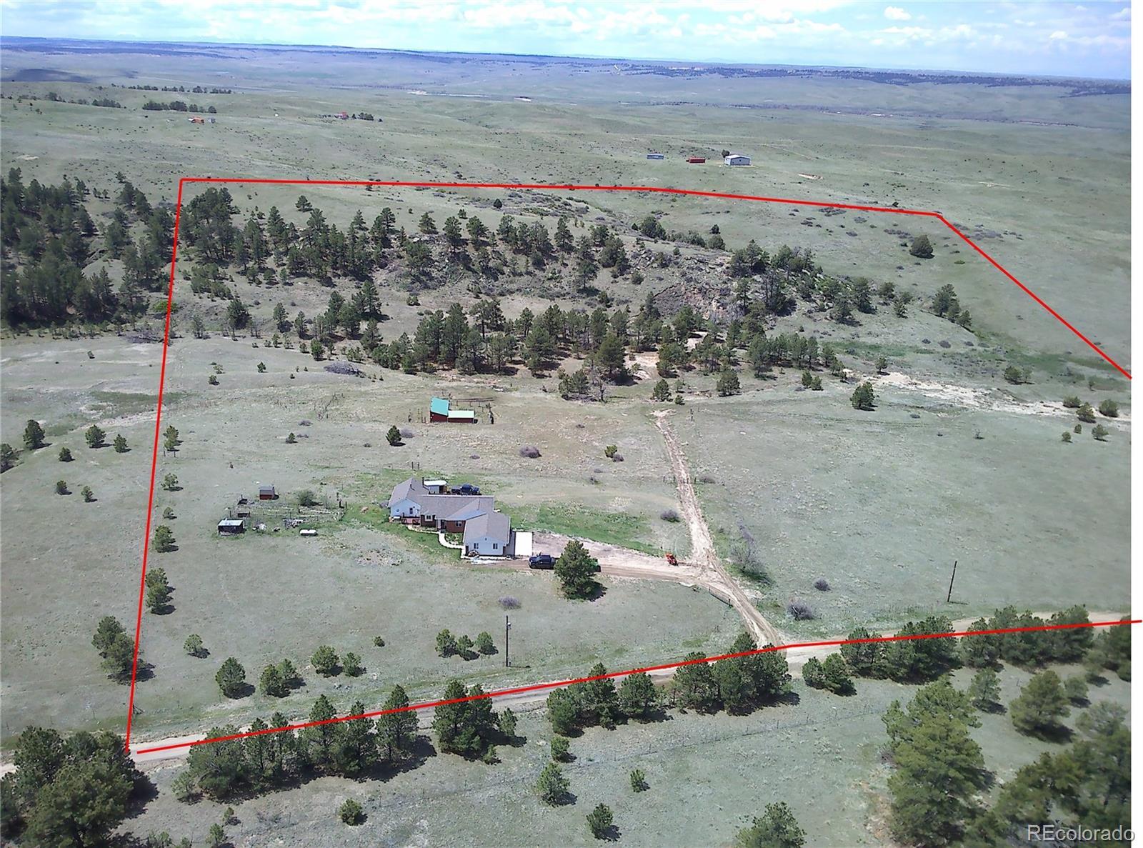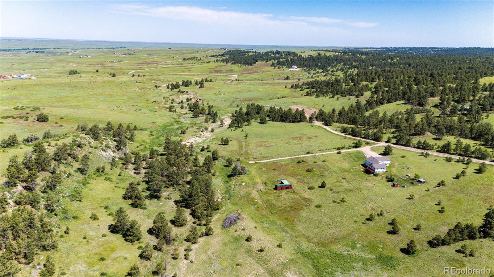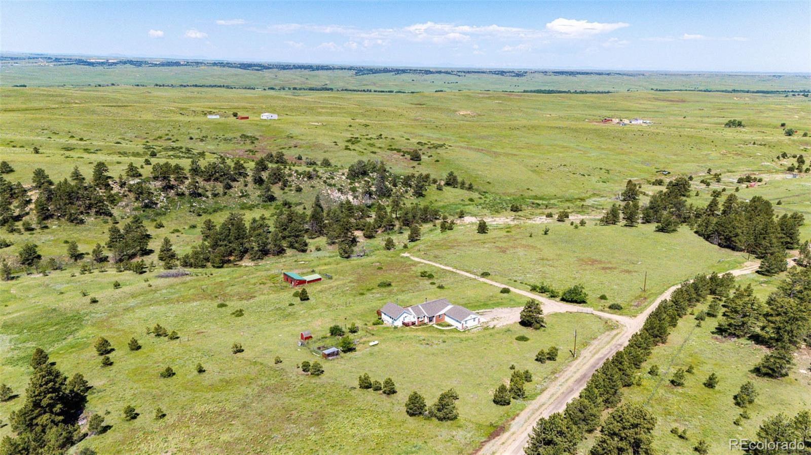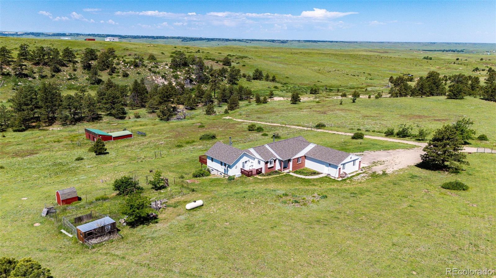 !!! Seller is offering a $5000.00 towards seller concession !!!Amazing 35 acre fully fenced property! Plentiful pastures perfect for horses and livestock with mature trees surrounded by peace and quiet, complete with a unique seasonal flowing creek. Recently updated, move in ready home offering approx 3500 sq. ft. with an open layout perfect for entertaining and main level living with 4 bedrooms and 4 bathrooms. The finished basement is complete with a second primary suite and a huge game room. Large deck boasting incredible views of the front range where the wildlife roams. Complete with barn, chicken coop, sheds and gardens ready for planting. Located on a dead-end road with minimal traffic. Only 90 minutes to Denver, 60 minutes to Denver International Airport, 45 minutes to Parker and less than 30 minutes to Elizabeth. Let this property serve as your personal paradise for year round or seasonal living.