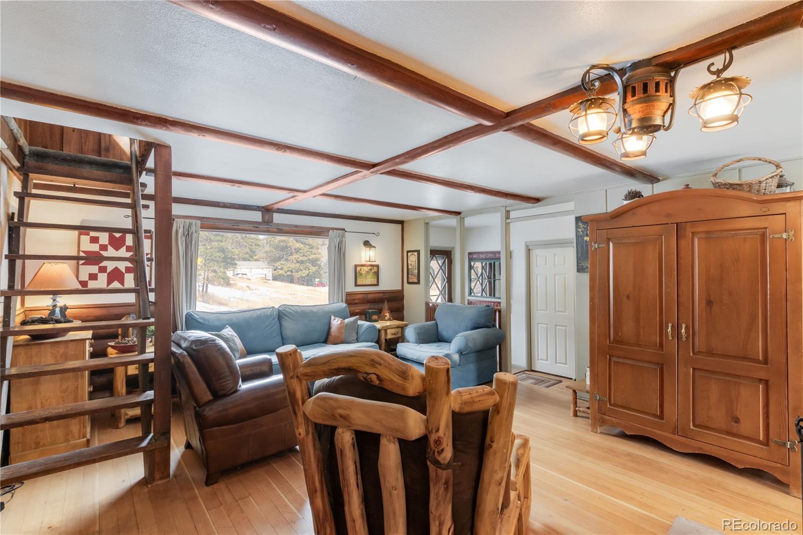 Nestled in the peaceful Cascade Mountains, 10225 Ute Pass Avenue invites you to become part of the charming community of Green Mountain Falls—one of Colorado’s best-kept secrets. Known for its timeless small-town atmosphere, this historic mountain community offers a slow-paced lifestyle, surrounded by natural beauty and tranquility. Residents cherish the community’s annual Green Box Arts Festival, scenic hiking and biking trails, and serene setting. This home is within walking distance to Fountain Creek, the iconic Green Mountain Falls Gazebo, local parks, and restaurants. Historically a summer retreat for visitors seeking cool temperatures and a slower pace of life, Green Mountain Falls remains ideally located—just 10 minutes from Colorado Springs, 5 minutes to Woodland Park, and approximately 25 minutes to the Colorado Springs Airport, Peterson SFB, USAFA, Fort Carson, and Cheyenne Mountain. Set on a quiet dead-end street, this 3-bedroom, 1-bath meticulously cared-for home is rich in character and mountain charm. The sunlit living room features hardwood floors, rustic log beam ceilings, and a cozy wood-burning fireplace. The kitchen showcases original built-ins for storage and stainless steel appliances. The spacious primary suite includes built-in cabinetry and a walkout to a private rear patio. Upstairs, a versatile loft-style space with a second wood-burning stove and 2-skylights, makes an ideal office, studio, or additional bedroom and opens to an expansive deck with breathtaking mountain views. Outside, enjoy a fully fenced backyard with multiple sitting areas, offering privacy, mountain scenery, and room for pets, play, or entertaining. Additional features include ample built-in storage throughout the home, and a radon mitigation system. Whether you’re seeking a full-time residence or a mountain retreat, this home is a place where friends and family will love to visit. Come and discover why so many are proud to call Green Mountain Falls home.
