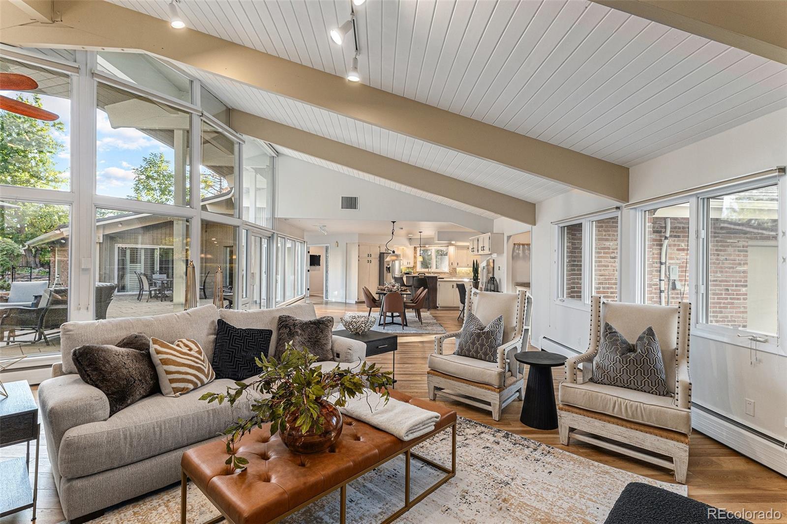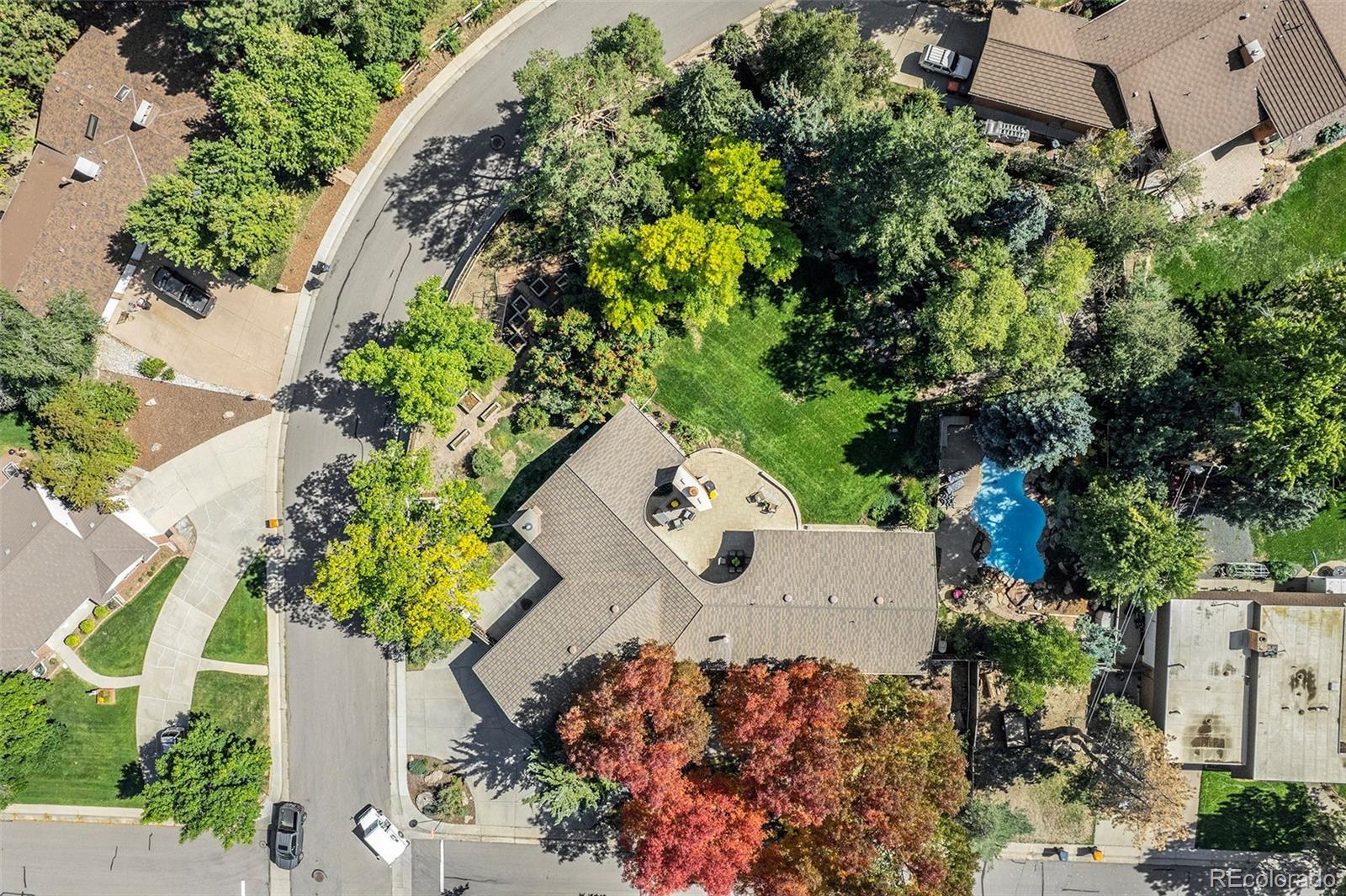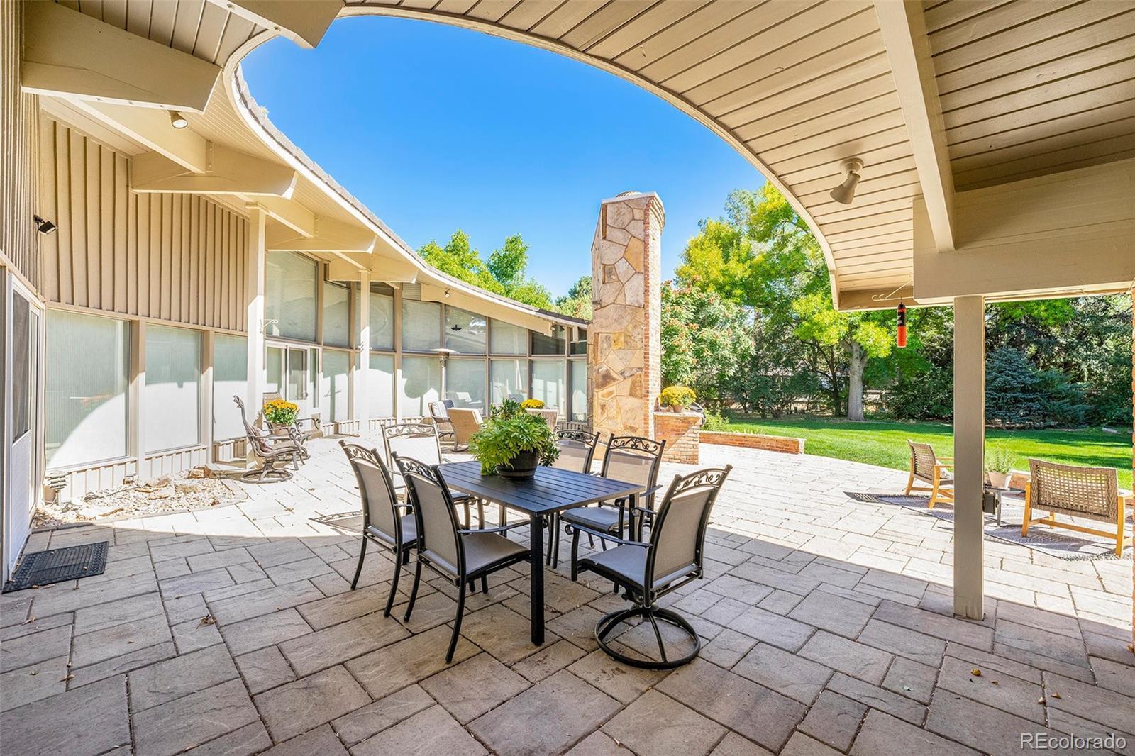 Welcome to one of Cherry Creek Village’s most architecturally significant homes—where modern design meets unmatched privacy and scale. Offered at $100,000 BELOW its appraised value, this stunning, impeccably designed residence is a true original. Built by the neighborhood’s developer as his personal home, it has since been thoughtfully updated throughout. Flooded with natural light and defined by clean lines, natural stone elements, and floor-to-ceiling windows, this one-of-a-kind property offers nearly 5,000 square feet of refined living space on a rare .89-acre lot—a size virtually unheard of in this coveted area. Nestled on a serene corner lot, the grounds are a private oasis with lush, professionally landscaped and managed gardens, towering trees, striking boulders, a large water feature, and a charming raised garden area complete with its own garden shed. The outdoor living experience continues with a spectacular, private pool, a 1300 sq ft sprawling patio featuring a massive stone gas fireplace, and an outdoor grill area perfect for entertaining. The home’s layout offers exceptional flexibility and convenience. The main floor spans over 3,400 sq ft, featuring three spacious bedrooms, expansive open living areas, and seamless integration between indoor and outdoor spaces—ideal for those seeking single-level living. The finished basement provides additional space for relaxing or entertaining guests. Parking is abundant with an attached 2-car garage (which includes TWO EV Chargers), two additional gated spaces, and a large circular driveway—perfect for hosting or accommodating a growing household. Located in the heart of Cherry Creek Village, this home offers quick access to I-25 and 225, Cherry Creek Schools, DTC, shopping, dining, parks, and scenic walking trails.