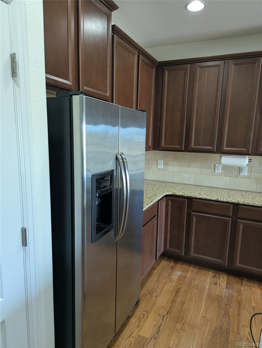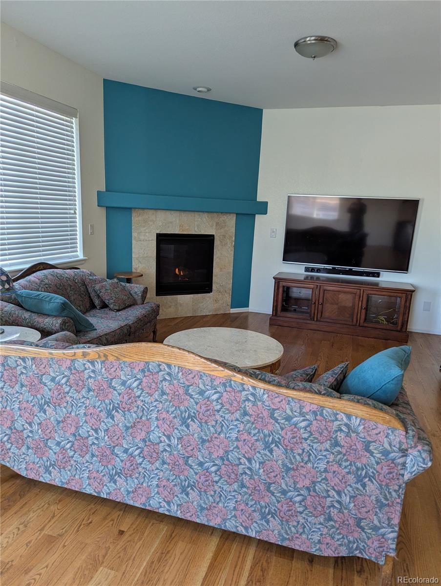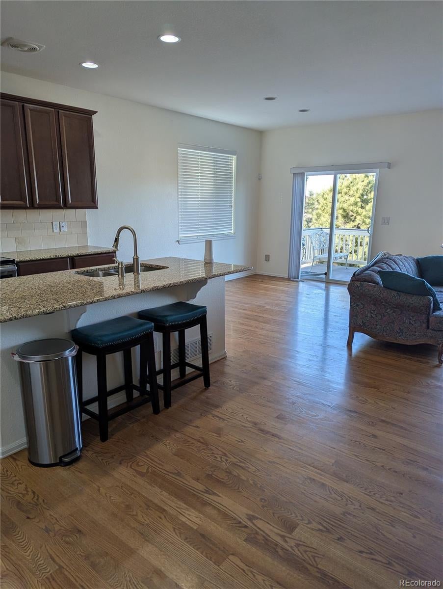 Imagine Living In This Well Cared-For Ranch Home Backing To Open Space With Distant Mountain Views In The Sought-After Neighborhood Of Adonea In Aurora. Original Owners Watched It Being Built And Lovingly Cared For It Since Purchasing. Enter Via a Wide Hallway Leading To The Well Appointed Kitchen In Back With A Large Island, Granite, Stainless Appliances And An Upgraded Backsplash. There Is A Designated Eating Area And Great Room With A Gas Log Fireplace And Tile Surround. Hardwood Flooring Is Throughout The Entire Main Floor With The Exception Of Tile In The Primary Bathroom And Vinyl In The Hall Bathroom And Laundry Room. Ceilings Are 9 FT High On The Main Level. The Owner Worked From Home And Had French Doors Installed In The Middle Bedroom. So It Is Currently A Designated Home Office. It Can Easily Be Converted Back To A Third Bedroom, As The Closet Doors And Trim Are Stored In The Basement, Ready To Frame And Drywall A Closet If Desired. The Window In The Large Primary Bedroom Overlooks The Open Space. It Includes An En-Suite Bath With Dual Sinks, Tub, Shower, Water Closet and Walkin Closet. The Front Bedroom Is Sunny And Bright. Picture Barbequing From The Large, Elevated Deck Overlooking Adonea's Park And Open Space. The Community Pool And Clubhouse Are In View, As Well As The Basketball & Volley Ball Courts, The Playground And Walking Trails. The Lower Grassy Backyard Is Perfect For Playing Badminton. The Home Has a Garden Level Basement, Allowing Plenty of Light In. Basement Additions Include Wall To Wall Carpet With Roughed In Plumbing, Ready For Additional Bedrooms And A Bathroom, To Expand Living Space and Increase Value. A Radon Mitigation System Is Installed. The Home is Secured By A Blue Ribbon Home Warranty For The First 14 Months Of Ownership For Your Peace Of Mind! Convenient Location In A Vibrant Community For Kids, Adults And Seniors! If This Sounds Like Your Ideal Home Contact Your Realtor For A Personal Showing!