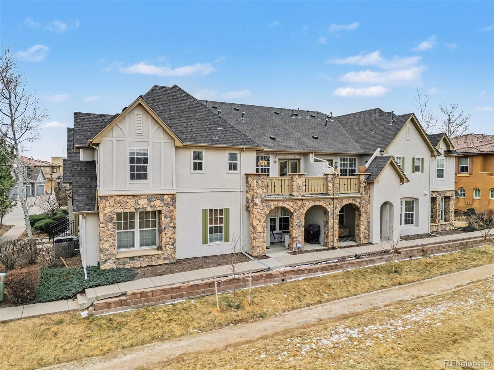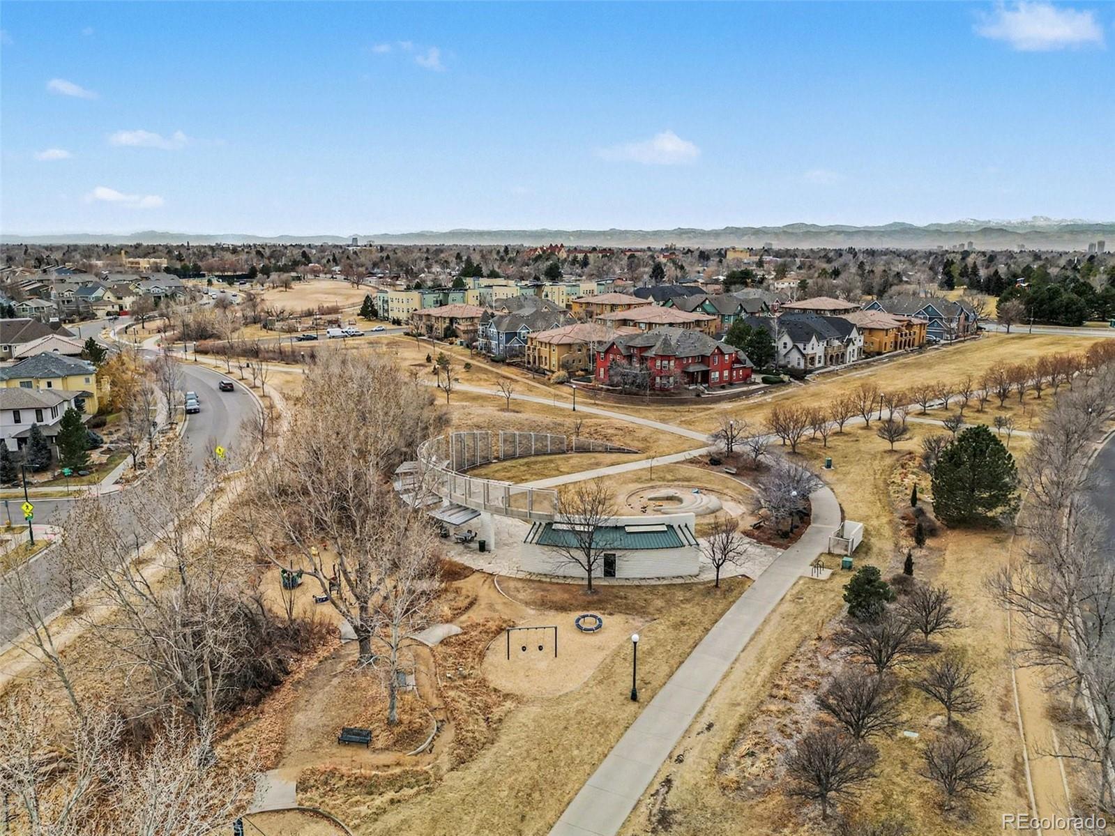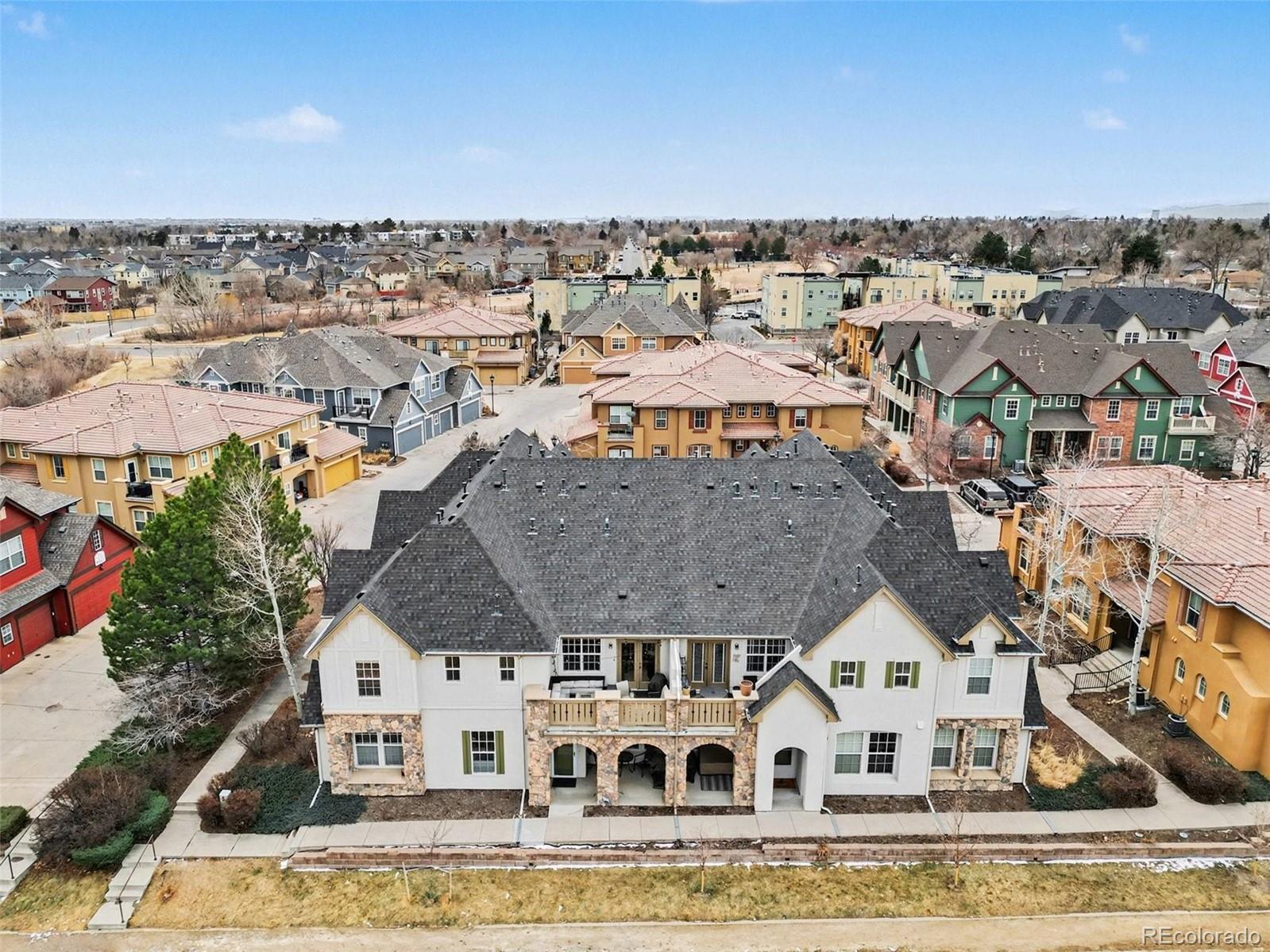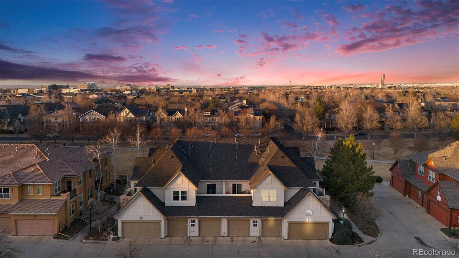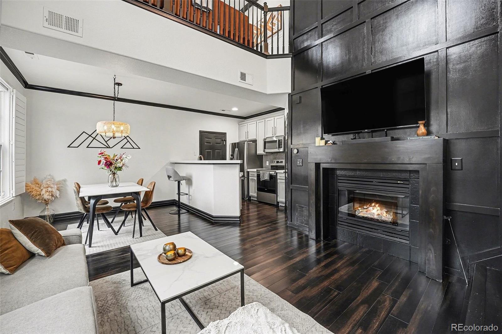 Luxuriously updated modern townhome backing directly to Greenway Park, ideally situated in the highly sought-after heart of Central Park. This light-filled 2-bedroom, 2-bath residence offers the perfect blend of style, comfort, and walkability. Soaring ceilings and an open, airy floor plan create a welcoming atmosphere throughout. The gourmet kitchen features quartz countertops, stainless steel appliances, a custom glass tile backsplash, and a walk-in pantry, all flowing seamlessly into the spacious great room with a gas fireplace and refined finishes; ideal for both everyday living and entertaining. The expansive primary suite includes a spa-like bath with a custom shower and an exceptional walk-in closet with abundant storage. A generous secondary bedroom is complemented by an updated full bath, while convenient upstairs laundry (washer and dryer included) adds everyday ease. A full professional remodel was completed in 2025, along with newer HVAC and water heater, new carpet, and refinished wood flooring throughout. The oversized, finished two-car garage is light and bright and features new garage doors, a quiet MyQ smart opener, and built-in storage and shelving. The well-managed Goodwin HOA boasts healthy reserves per the 2025 reserve study and includes studs-out maintenance, water and sewer, landscaping, and snow removal. Step out to the park and enjoy a 5-minute walk to the off-leash dog park and a 10-minute walk to Central Park Town Center with restaurants, cafés, and a grocery store. Walkable to coffee shops, breweries, trails, and Central Park amenities including Aviator Pool, playgrounds, and sandboxes. Easy access to I-70, downtown Denver, light rail, and DIA. With over 80 acres of parks, sports fields, a sledding hill, and Founders Green hosting the iconic summer Farmers Market, Central Park offers an unmatched Coloradan neighborhood lifestyle.