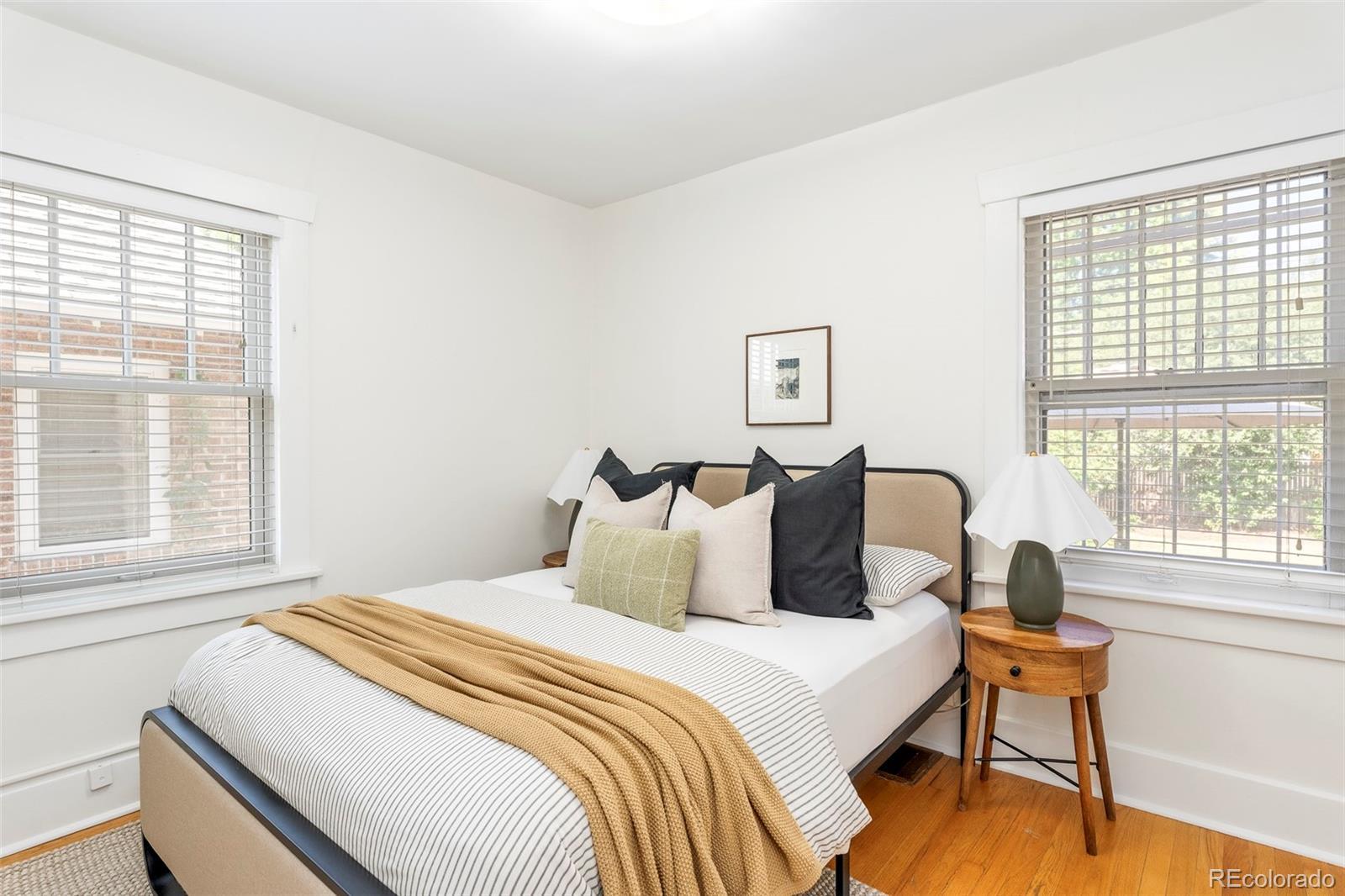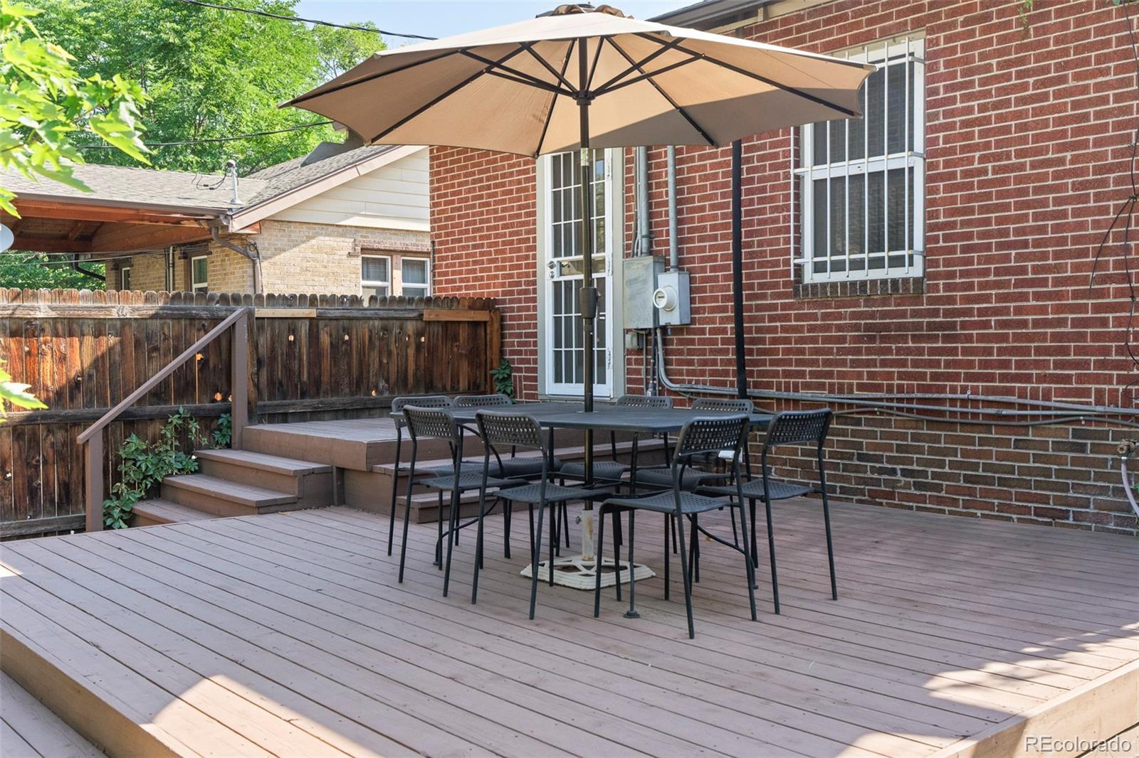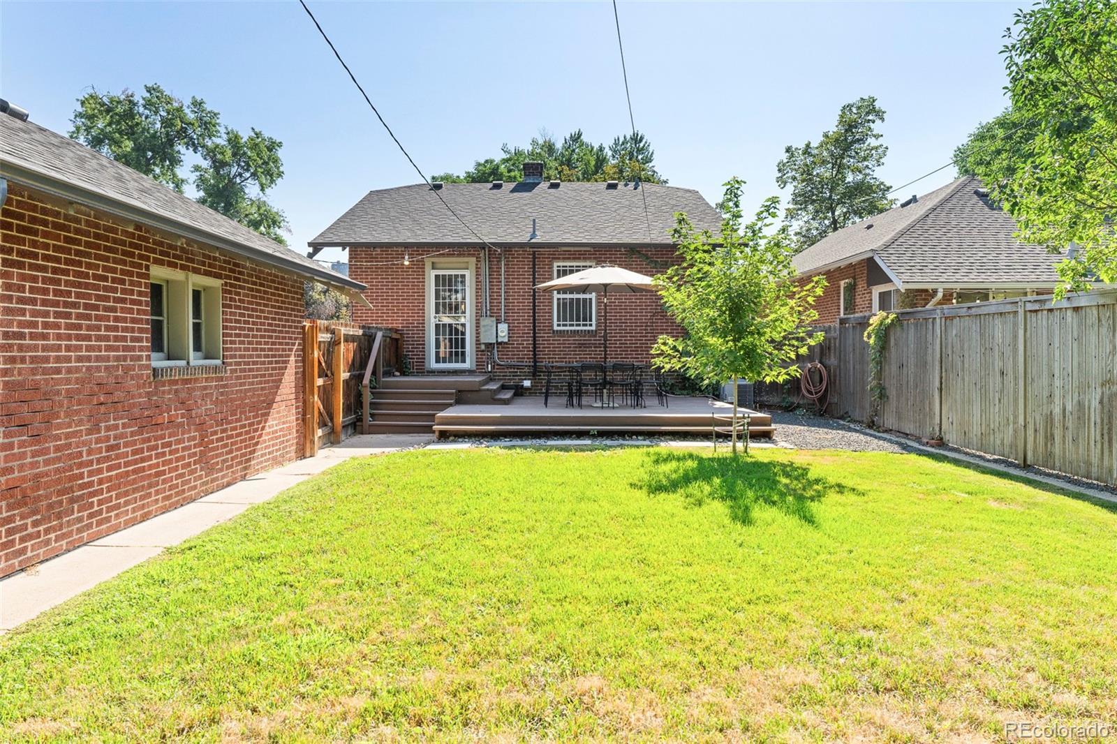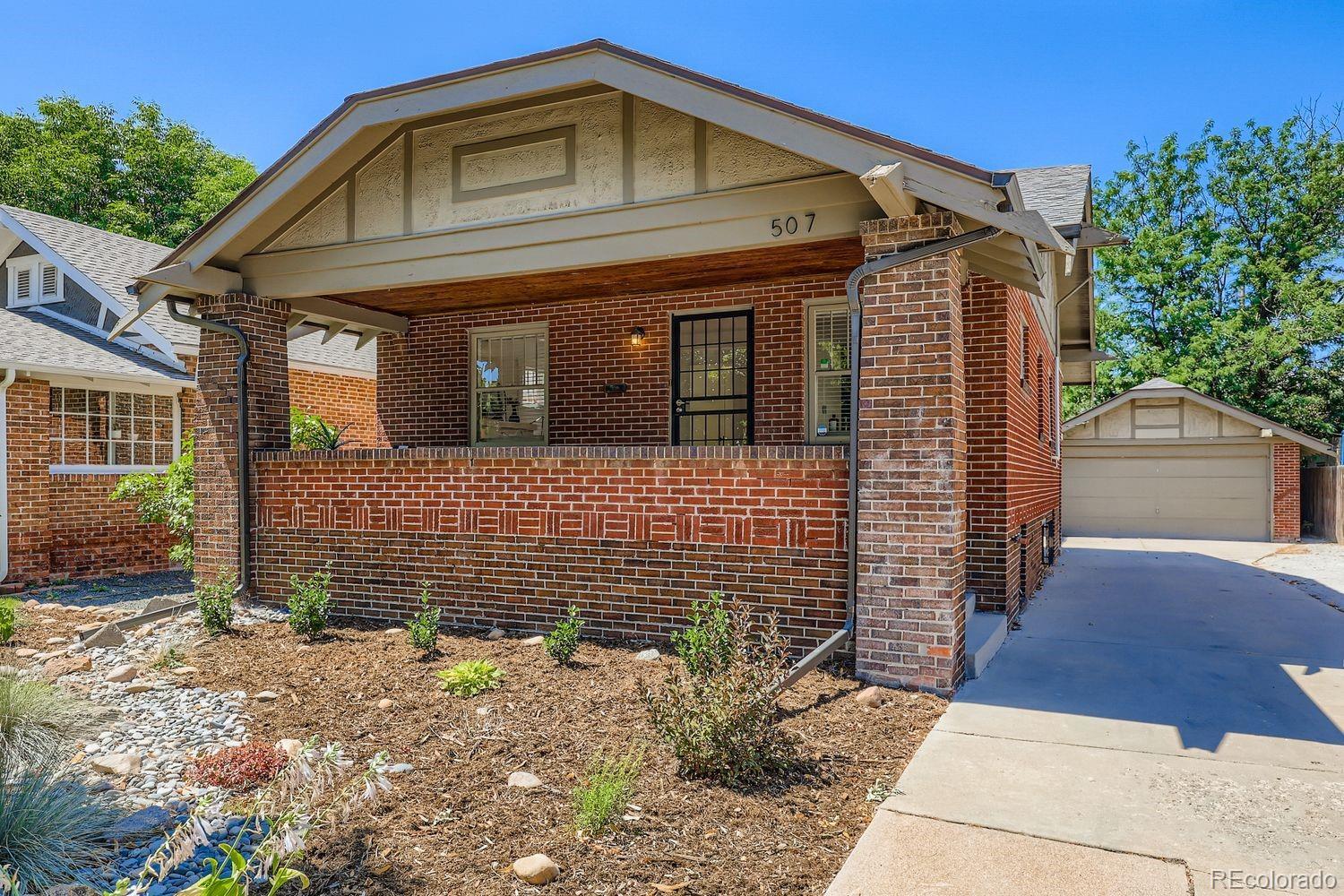 Classic charm meets modern refinement in this classic red-brick bungalow, gracefully poised on a rare 6,620-square-foot lot in West Wash Park. A spacious covered front porch sets the tone for serene mornings and effortless connection with the neighborhood. Inside, hardwood floors lead through an airy dining and living space anchored by a wood-burning fireplace. The kitchen is a contemporary centerpiece, boasting quartz countertops, peninsula seating, and newer stainless steel appliances. A tranquil main-floor primary bedroom overlooks the landscaped backyard, joined by a versatile secondary bedroom or office and a newly reimagined bathroom. A light-filled mudroom with custom shelving offers both style and function. Downstairs, a garden-level primary or third bedroom unfolds as a private retreat with a chic, renovated bathroom, recreation room, flex space, laundry and storage— all enhanced by a statement brick wall and fresh carpet. Outdoor living is redefined with a newer dining deck, privacy fencing, and abundant green space. A two-car front-load garage with potential alley access adds rare convenience. Perfectly positioned near Wash Perk coffee, S. Gaylord Street, and the culinary gems of S. Pearl — including Sushi Den — this home embodies a seamless blend of architectural heritage, modern comfort, and a vibrant city lifestyle.