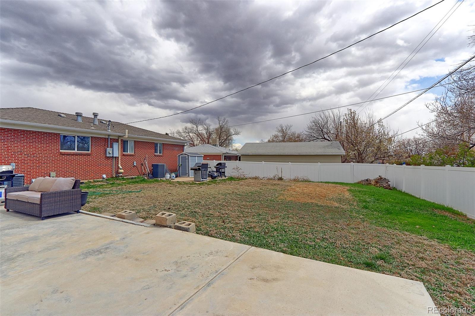 Welcome to this charming brick ranch house nestled in the heart of Northglenn, with NO HOA. This cozy home boasts three bedrooms and two bathrooms, perfect for comfortable living. Situated on a large lot, the property features a spacious backyard with ample room for outdoor enjoyment, as well as additional concrete space ideal for parking your recreational vehicle or toys. The large unfinished basement has an additional electrical panel installed, ready for you to create extra living space the way you desire. Don't miss the opportunity to make this great home yours!