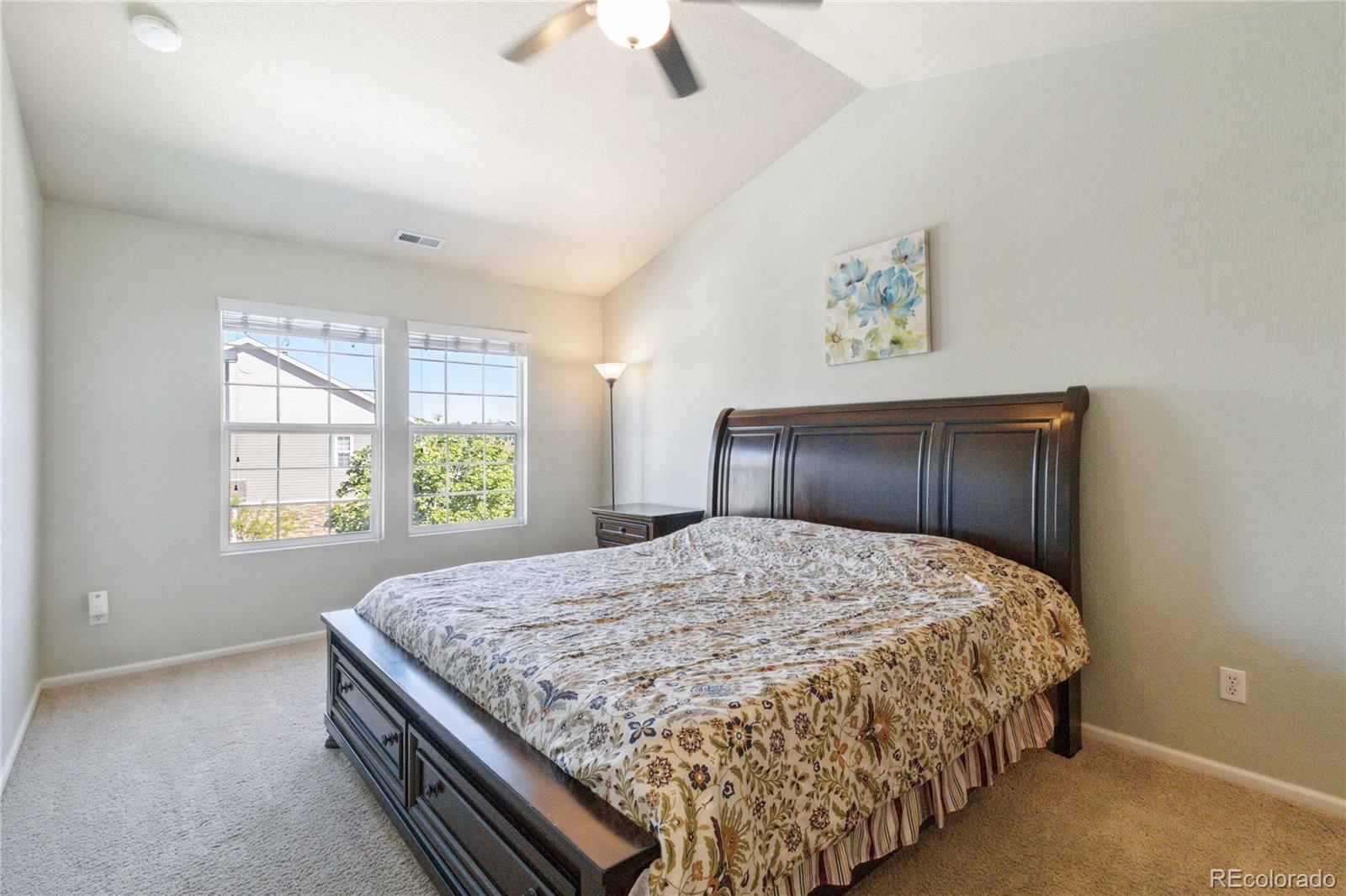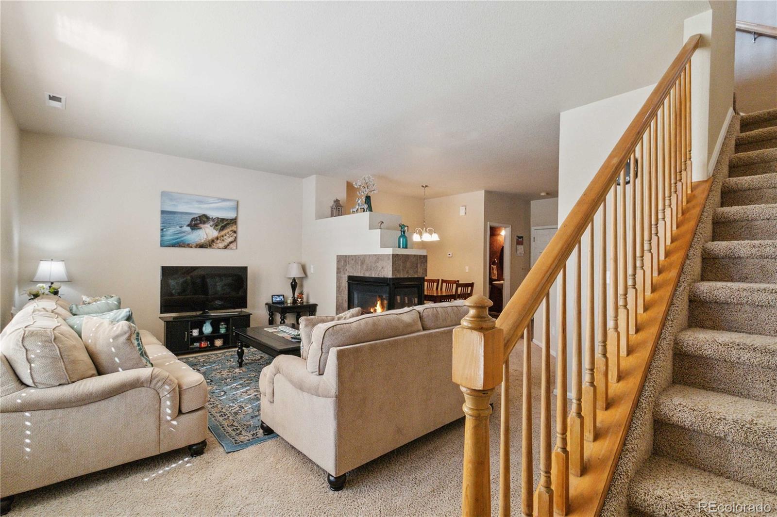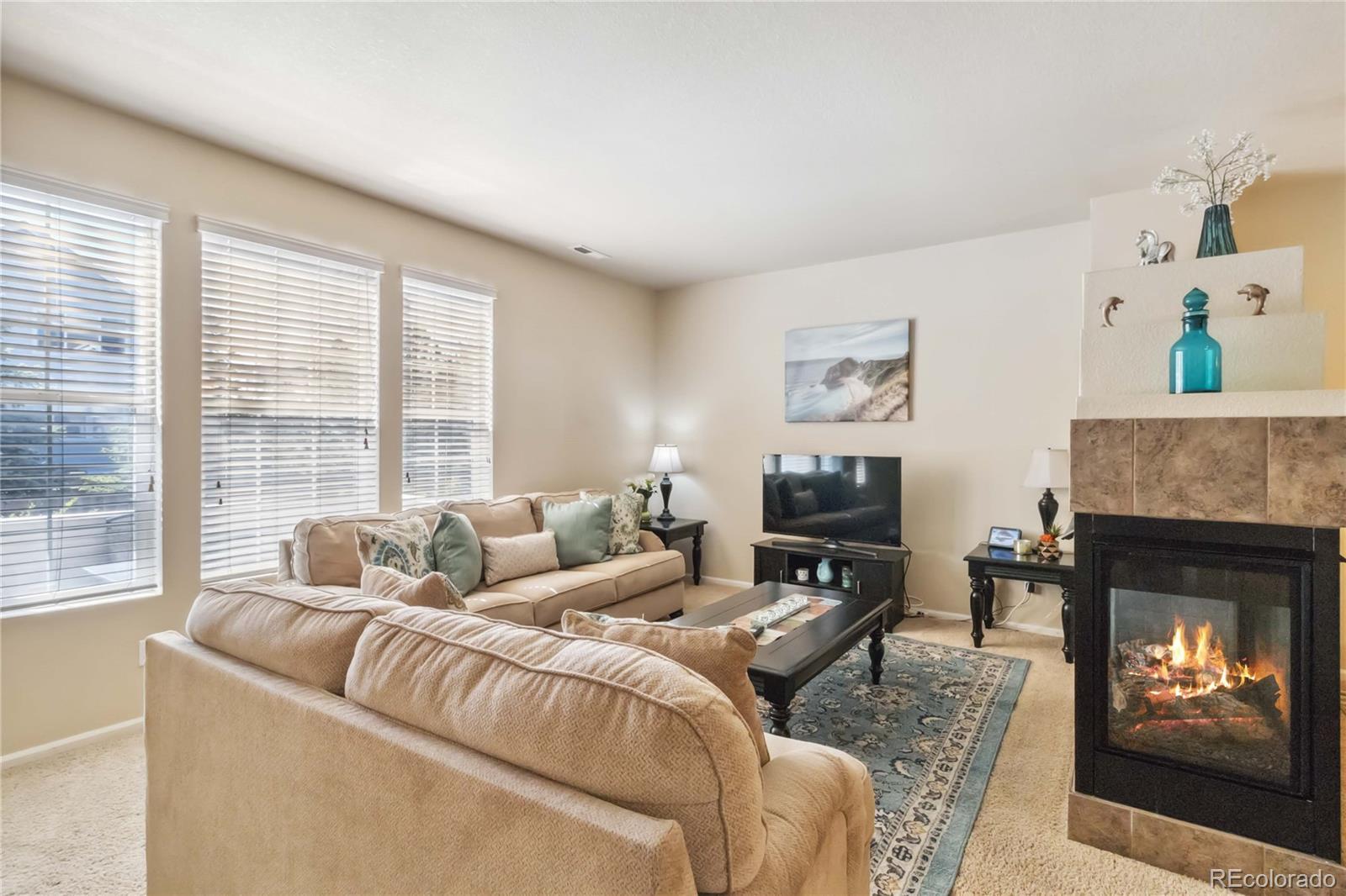 You’ll love this beautifully maintained and thoughtfully designed 2-bedroom, 3-bath townhome with an open floorplan, high ceilings, and an abundance of natural light. With over 1,670 square feet of finished living space, this home offers comfort, flexibility, and an unbeatable location just steps from Sage Creek Park and minutes from shopping and dining. Inside, discover a bright and inviting main level, where a stunning three-sided gas fireplace creates a warm focal point between the living and dining rooms—perfect for cozy winter nights. The open-concept layout continues into the spacious kitchen, which features plenty of cabinets, a pantry, new microwave, and a smart flow for everyday living or entertaining. Upstairs, you’ll find a generous loft —ideal as a home office, media space, or conversion into a third bedroom. The primary suite is a true retreat, with soaring vaulted ceilings, large walk-in closet, and spacious bath with dual sinks and a soaking tub. A second bedroom, full hall bath, and convenient laundry with washer and dryer included round out the upper level. Additional highlights include an attached 2-car garage, ceiling fans and central A/C for year-round comfort and a charming front porch with space for seating. Location is everything, and this home delivers! Just outside your door is Sage Creek Park, complete with a pond, playground, walking and biking paths. You’re also minutes from the Trail Winds Recreation Center, which offers an impressive array of amenities including a pool, lazy river, hot tub, climbing wall, indoor track, and more. With easy access to I-25, E-470, DIA, and Denver, commuting is a breeze—whether you’re headed downtown, to Boulder, or the airport. Shopping, dining, and schools are all conveniently nearby, making this townhome the perfect balance of quiet comfort and urban convenience. Whether you’re looking for your first home, downsizing, or seeking low-maintenance living with space to grow, this home checks all the boxes.