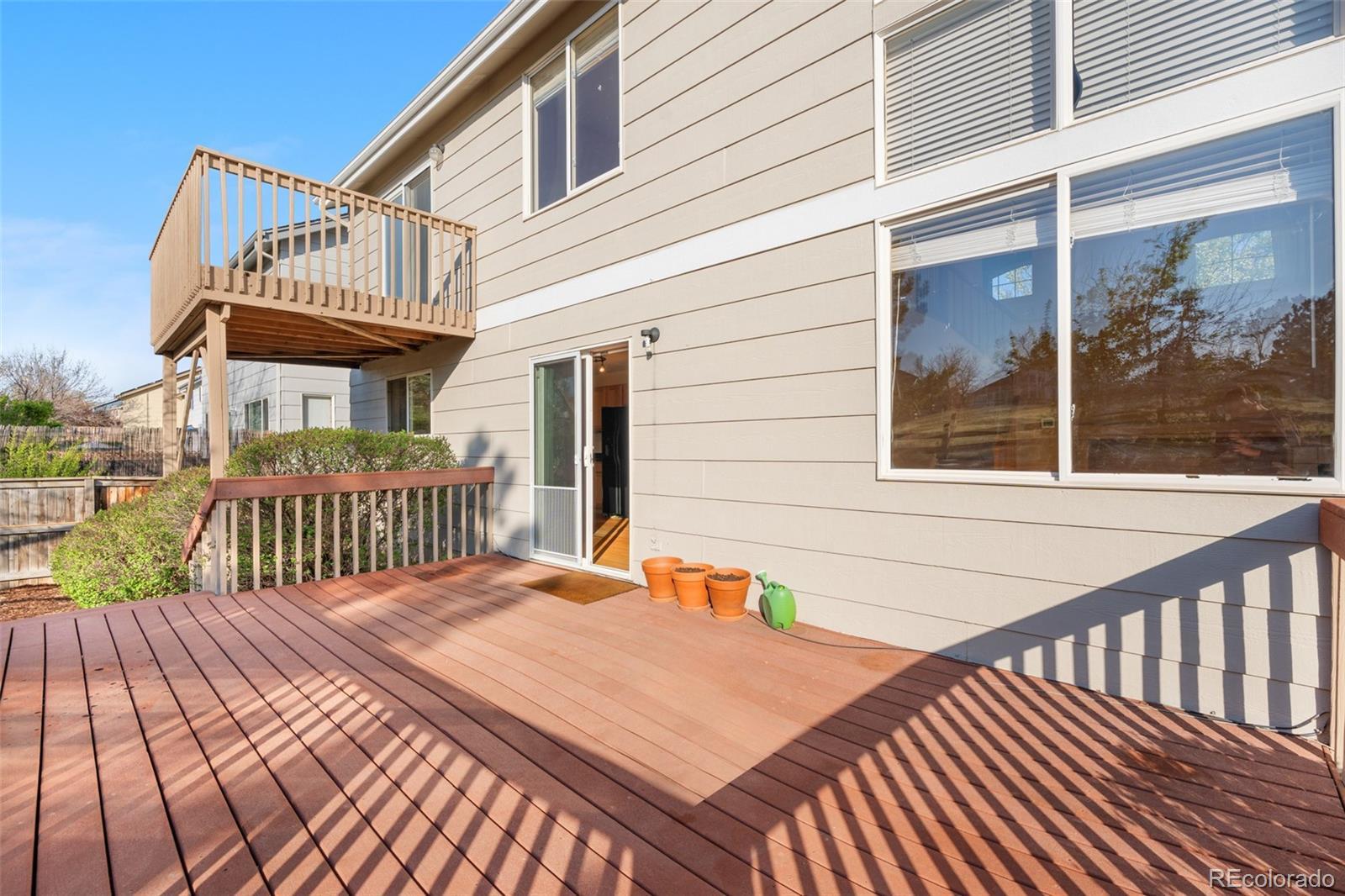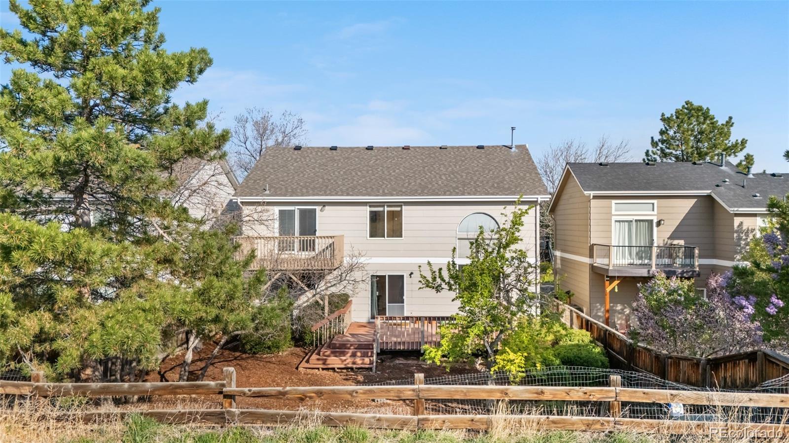 This well-maintained home has a lovely treks type deck in the backyard backing to open space that has a trail that will take you all the way into Downtown Denver. New Carpeting throughout. The Master Bedroom has a walk-in closet, double sinks, separate tub & shower as well as a private deck that also overlooks the backyard and open area. All appliances, including washer & dryer are included in the sale. The basement offers a finished bonus room that would be perfect for: workouts, crafts, hobbies or whatever room. Low maintenance yard with sprinkler system and quick possession. See for yourself. This is the best value in Highlands Ranch!