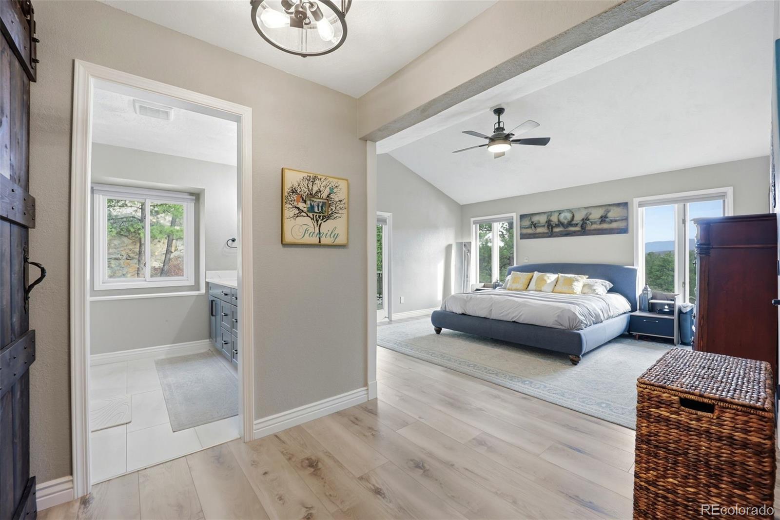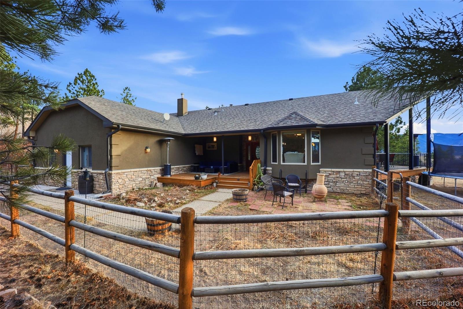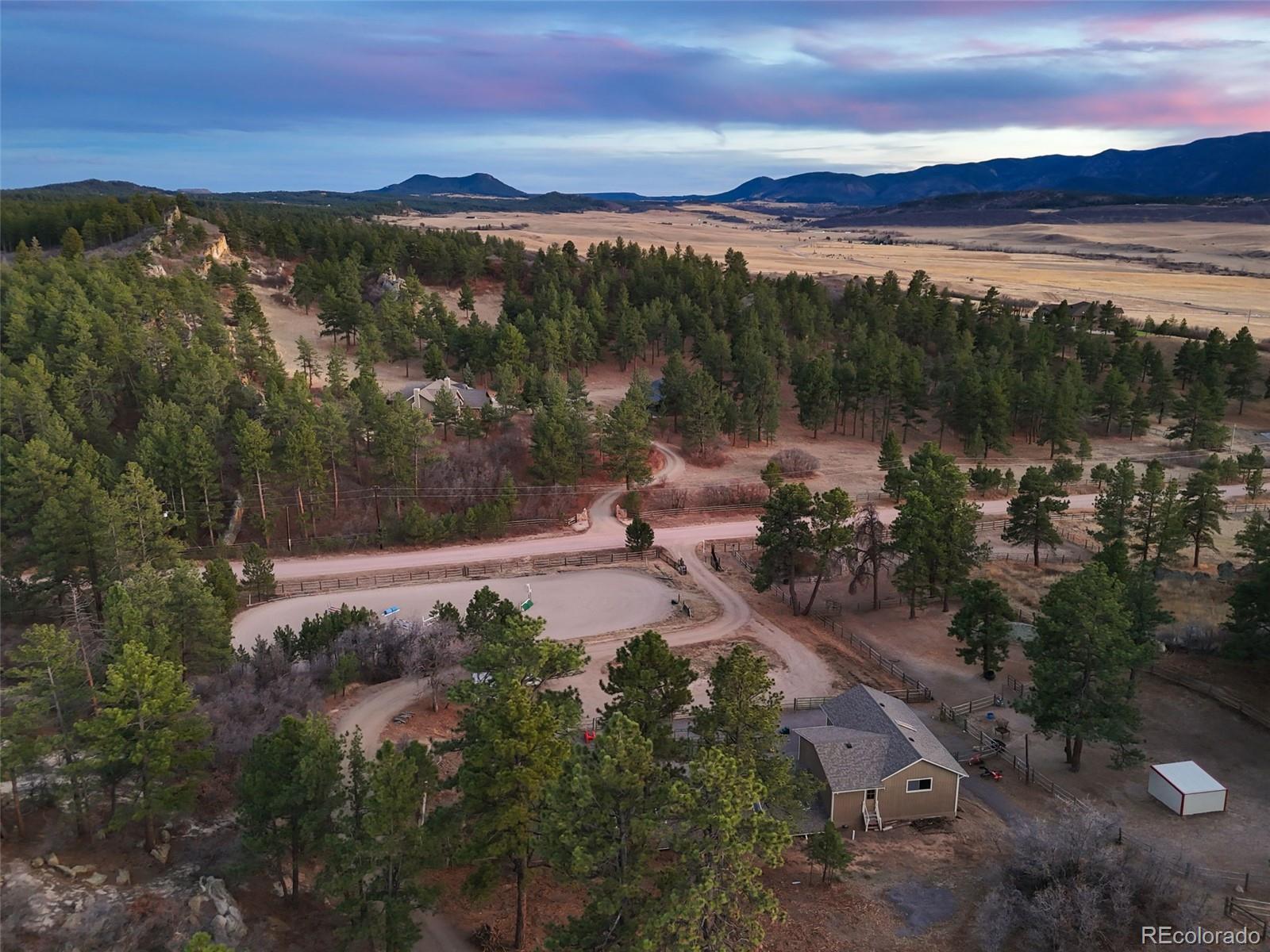 Tucked away in the highly sought-after Dawson Butte area, this extraordinary private retreat is a rare offering set on more than 35 pristine acres just 10 minutes from Castle Rock, with sweeping panoramic views in nearly every direction. Rolling meadows, dramatic rock outcroppings, mature pines, and scenic riding trails create a landscape that feels both expansive and serene. The property is fully fenced with extensive new fencing, offering exceptional privacy & breathtaking scenery throughout, while thoughtful fire mitigation enhances safety & preservation of the natural surroundings. The residence has undergone extensive renovations with elevated finishes and cohesive design. The kitchen anchors the home with refined style and functionality, flowing seamlessly into inviting living and dining spaces designed for gathering. Updated bathrooms—including the primary suite and ensuite—offer a sophisticated, spa-inspired feel with modern fixtures & timeless materials. The refreshed laundry room and half bath, along with the fully refinished walkout basement featuring a private sauna, add comfort & versatility. Newer gutters, an updated deck, and additional upgrades ensure the home feels turnkey and meticulously maintained. The walkout basement opens to tranquil patios and outdoor living areas, creating seamless indoor-outdoor flow ideal for entertaining or enjoying quiet evenings under Colorado’s vast skies. Equestrian amenities are equally impressive, including a six-stall barn with a heated wash rack and heated tack room, an unfinished apartment & hay loft offering flexibility for guests or caretakers, a remarkable 9,180-square-foot enclosed riding arena for year-round training, and a breathtaking outdoor arena set against sweeping mountain views. With no HOA and a setting that cannot be replicated, this property offers privacy, views, thoughtful upgrades, and exceptional functionality—a true equestrian masterpiece in one of the area’s most desirable locations.