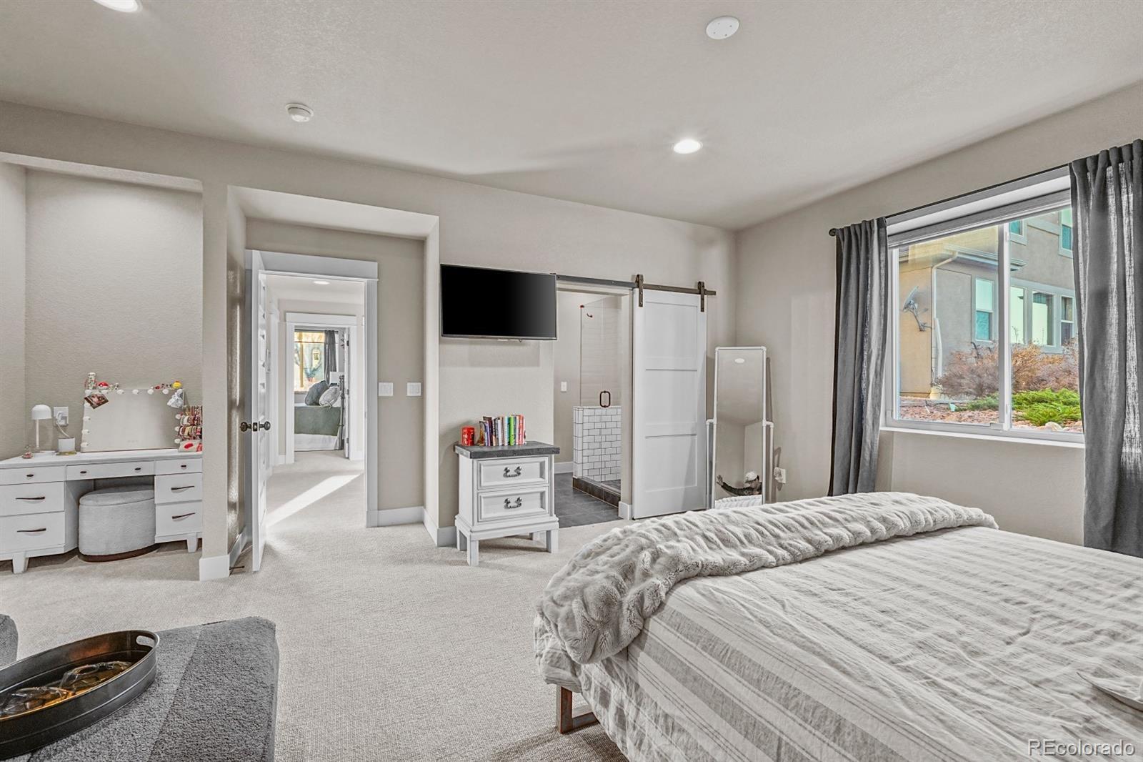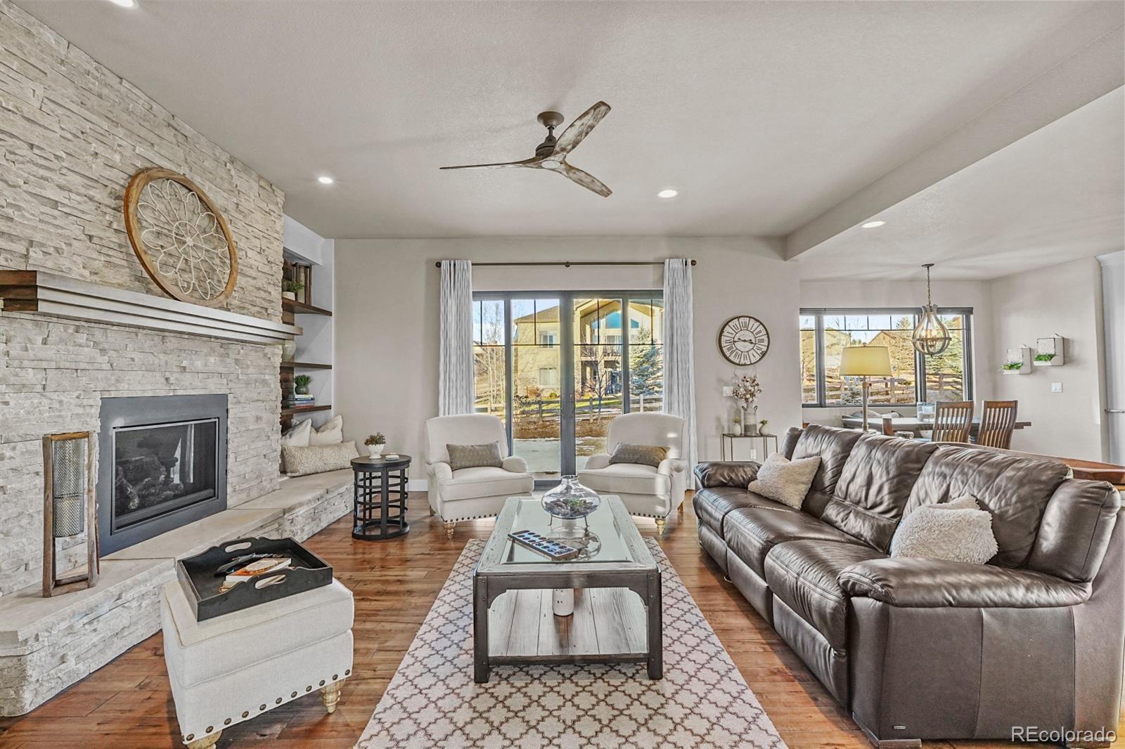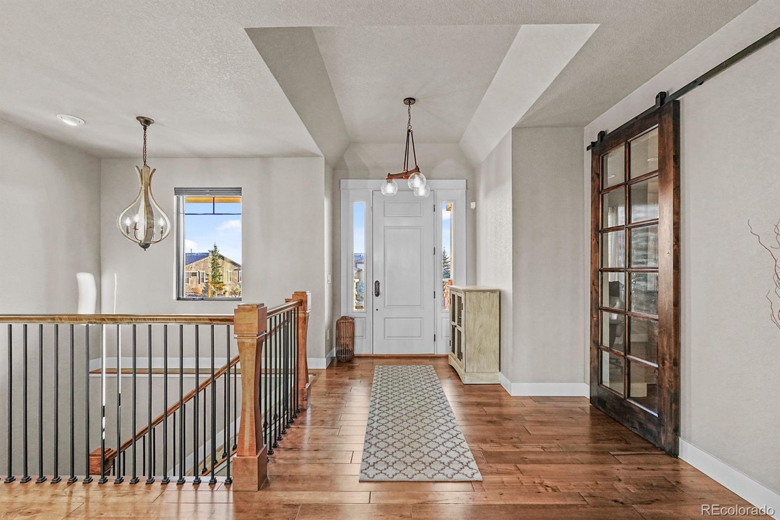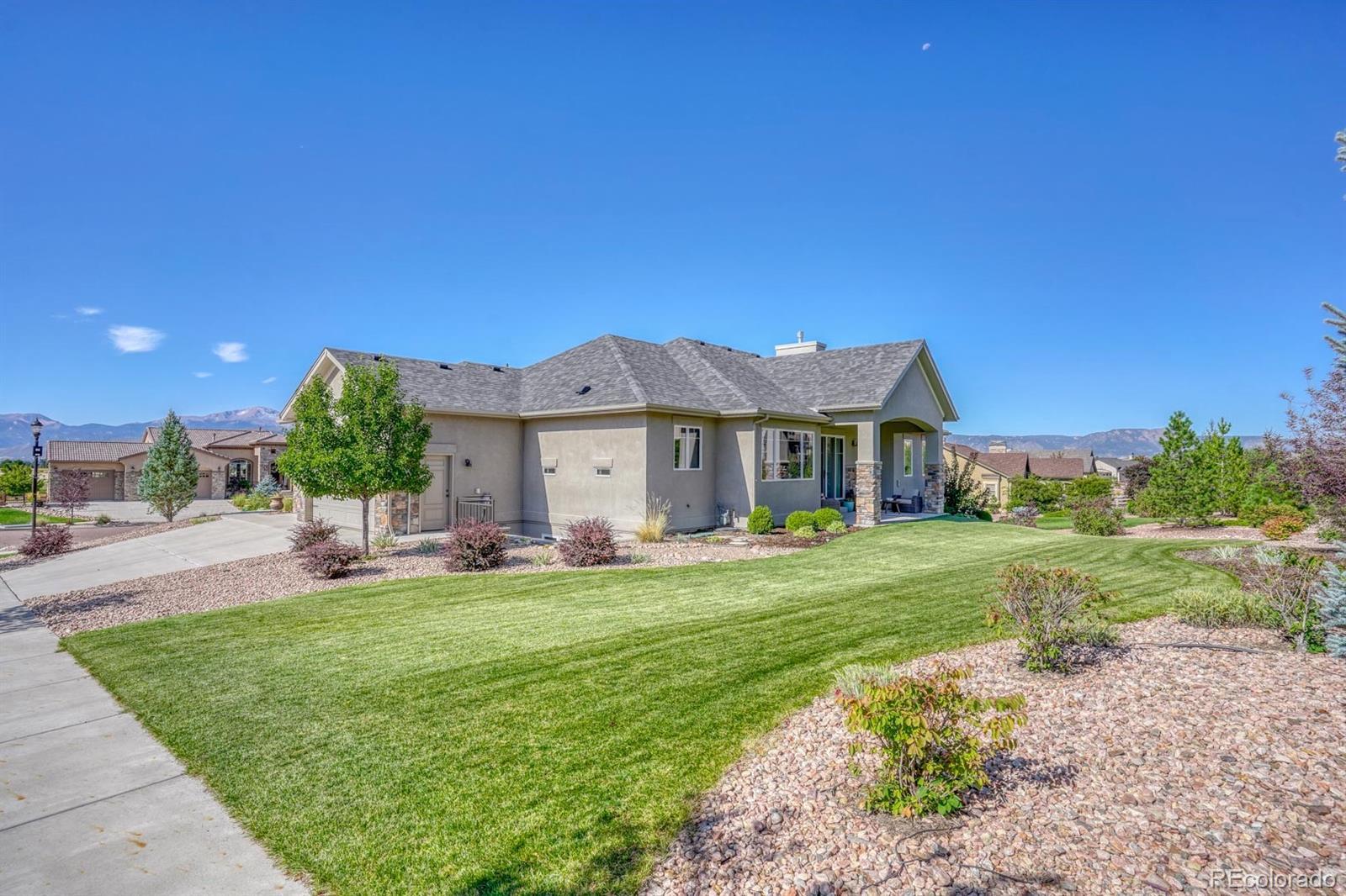 ***Custom Urban Farmhouse in Flying Horse – Rare Opportunity Under $1M*** Experience the rare chance to own the only true custom home in the prestigious Flying Horse community priced under $1 million. Unlike nearby ranch-style homes built from standard plans, this Urban Farmhouse-style ranch was individually designed & constructed with a one-of-a-kind vision, premium finishes & uncompromising attention to detail. Set on a beautifully landscaped corner lot, the home’s inviting covered front porch captures breathtaking Pikes Peak views—and even offers a front-row seat to Flying Horse’s 4th of July fireworks! Inside, enjoy a warm & balanced environment thanks to whole-house in-floor radiant heat, keeping every room evenly comfortable while maintaining low utility costs. The main level impresses with 10-ft ceilings, engineered hardwood floors, and a welcoming living room featuring custom Eden Oaks built-ins and a stone fireplace. The chef’s kitchen is an entertainer’s dream—featuring custom cabinetry, a massive 9'×13' leathered granite island, level-6 granite countertops, a Sub-Zero refrigerator, convection microwave, and a built-in coffee bar. A roomy butler’s pantry with quartz counters and extensive storage adds both beauty and practicality. The primary suite a retreat w/ plantation shutters, a spa-inspired ensuite & a custom walk-in closet. A dining area, private office with sliding barn door, powder bath & laundry room complete the main level. Fully finished basement expands your living space with a large family room (pre-plumbed & wired for your future wet bar), a full bath & multiple bedroom suites—including an ensuite with walk-in closet, another with LVP flooring & a secondary suite with its own sitting nook & three-quarter bath. Additional highlights: • Class IV composite shingle roof • Insulated 3-car garage • 8-ft interior doors throughout • Central vacuum system • Low HOA fees • Proximity to Flying Horse parks, trails, and amenities!
