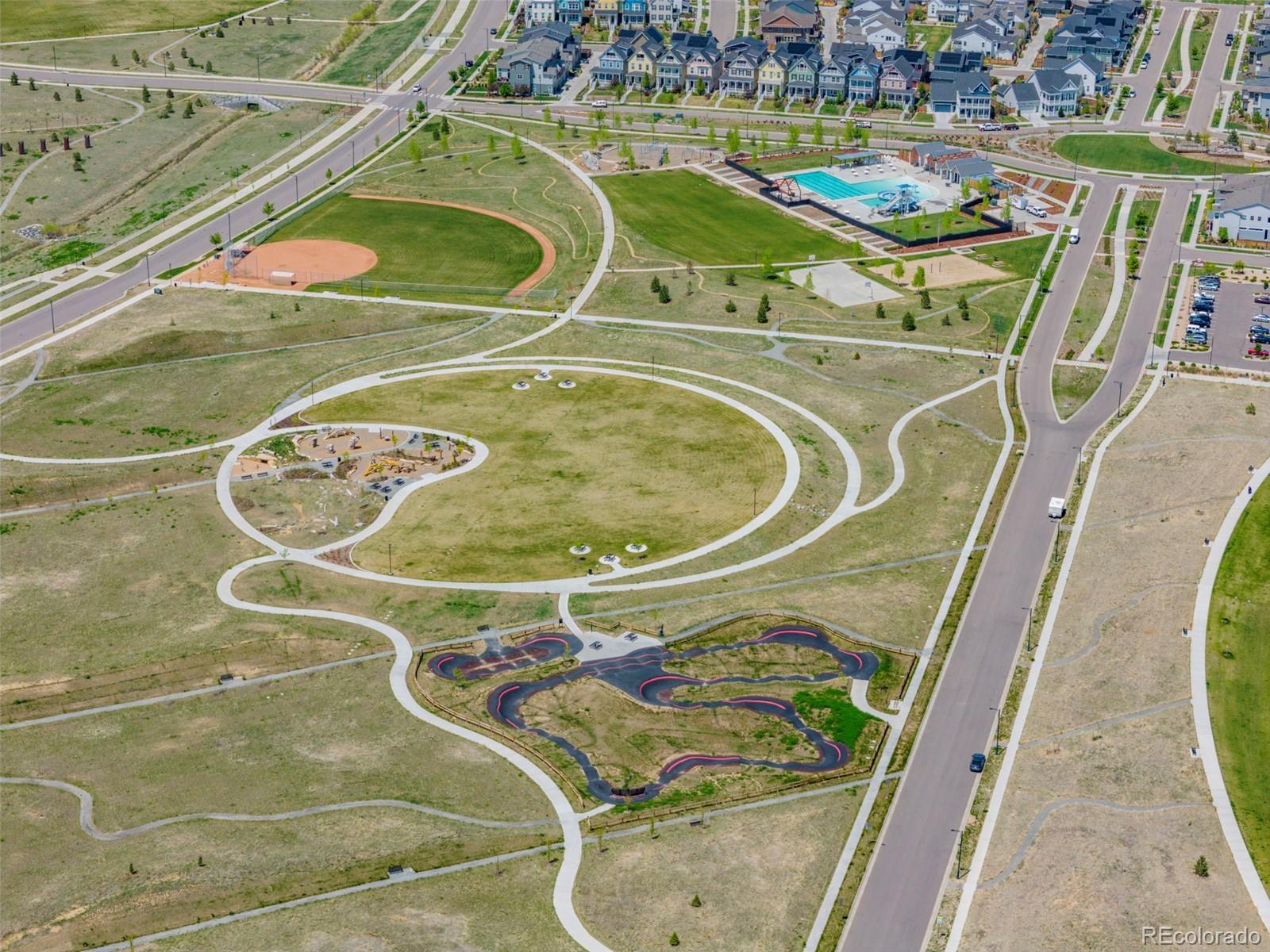 Experience the best of Central Park living in this exceptional, west-facing 2-bedroom, 1.5-bath townhome! Nestled in a prime location just one block from Highland Park and Pump Track and moments from Splash Landing Pool, North Sports Fields, and Inspire Elementary, this beautifully maintained home offers both convenience and luxury. Step onto your inviting front porch and into a fenced-in yard before ascending to the bright main level, where soaring 10-foot ceilings and rich hardwood floors create an airy, welcoming atmosphere. The open-concept living area is highlighted by a modern kitchen boasting gleaming quartz countertops, a 5-burner gas stove, stainless steel appliances, and crisp white shaker cabinetry. Adjacent to the kitchen, the spacious living room flows seamlessly onto a private west-facing balcony. Here, you'll enjoy spectacular mountain and city views, unwinding with breathtaking sunsets over the Rockies and Downtown Denver is a daily highlight. A thoughtfully designed half bath adds convenience to this level. Upstairs, discover the serene primary bedroom featuring a large walk-in closet and sweeping views sure to make every morning special. A beautifully appointed full bathroom with quartz counters, a tub/shower combo, and white shaker cabinets separates the primary suite from an additional well-proportioned bedroom. The lower level offers even more, with a cozy covered front porch patio, a welcoming foyer, a dedicated laundry room, and a 1-car attached garage. NO SUB HOA. New A/C. Roof replaced in 2024.
