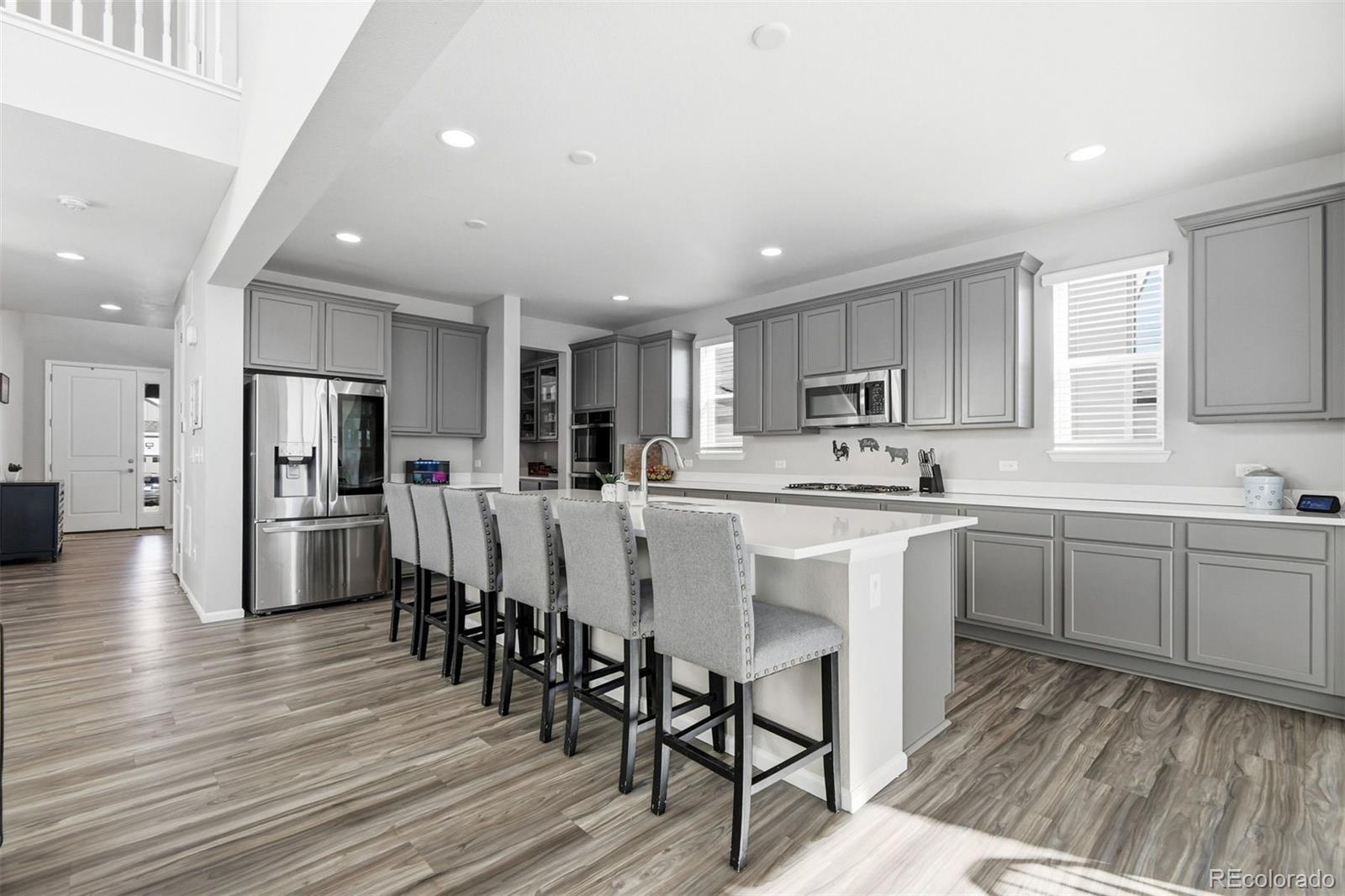 Welcome to your new home in the growing Independence community! This highly desirable Richmond Homes Dillon 2 floorplan offers the perfect blend of peaceful country living and everyday convenience—just 13 minutes to downtown Parker. Backing to open space and close to trails and a nearby park, this home is ideal for active families who love the outdoors. Inside, enjoy 5 bedrooms, 4.5 bathrooms, a private office, and a huge finished basement—providing space for growing families, guests, and recreation. A dramatic two-story entrance and two-story living room are flooded with natural light, creating a warm and welcoming atmosphere. The chef’s kitchen features stainless steel appliances, a double wall oven, a large island with seating for six, and a butler’s pantry, making it perfect for family gatherings and entertaining. A formal dining room and an additional dining space with a vaulted ceiling add both function and charm. Thoughtfully designed, beautifully situated, and surrounded by nature, this home offers room to grow, relax, and enjoy the best of Colorado living. Bonus: Get up to $5,000 in lender credit when the buyer chooses to work with the preferred lender.