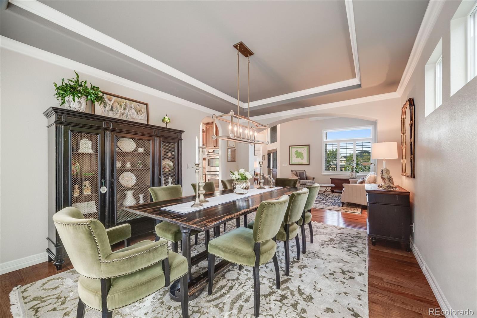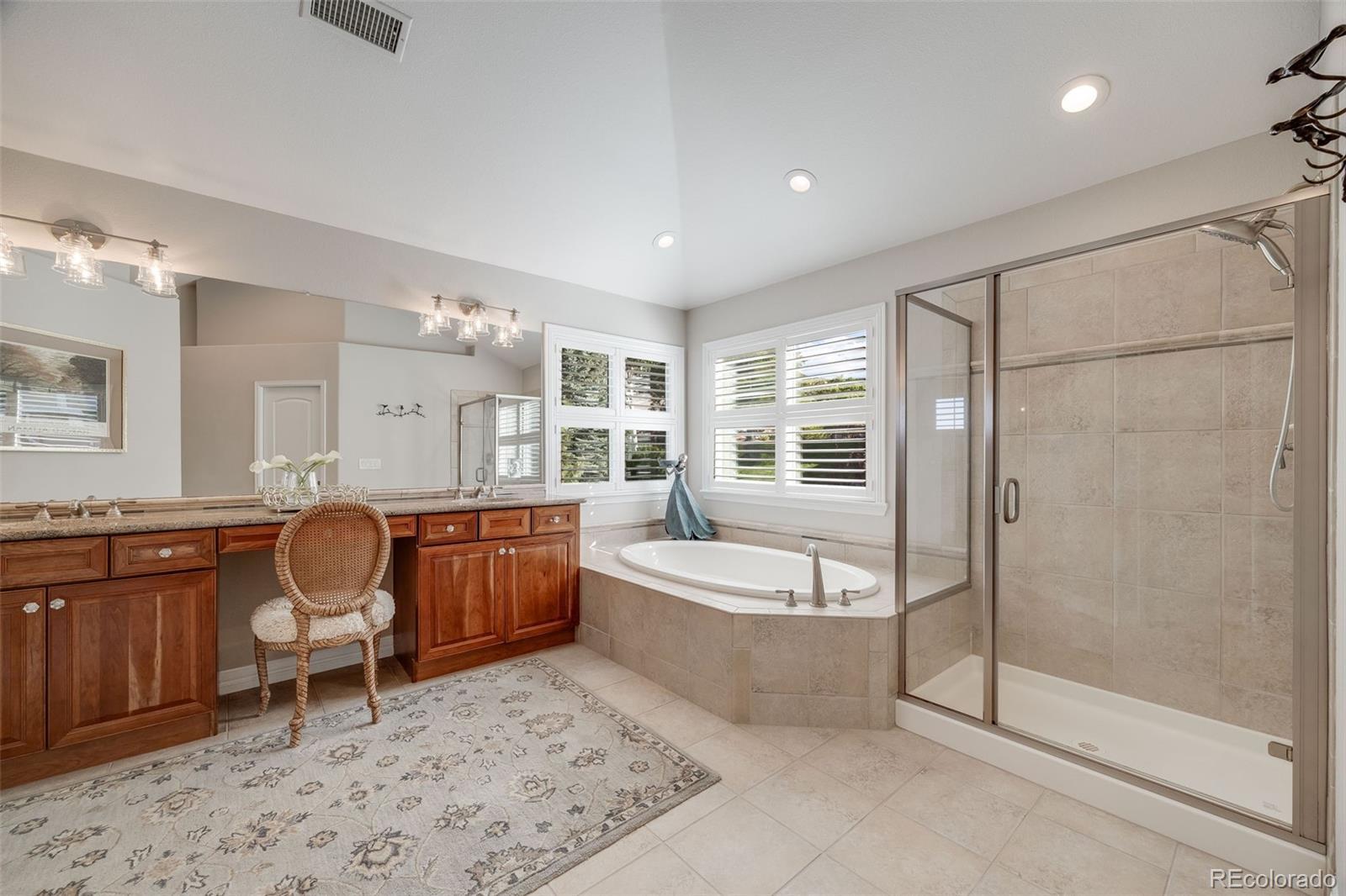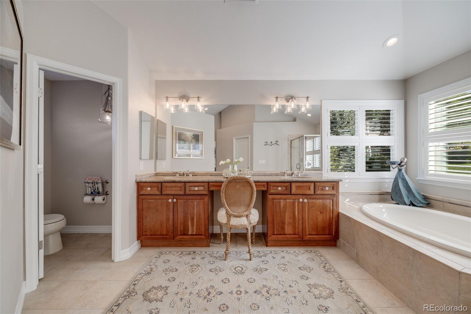 Welcome to this stunning home in the highly sought-after Tablerock community. Nestled in a private enclave, this beautifully maintained residence showcases exceptional upgrades and a thoughtful, spacious layout designed for modern living. Step through the grand entry foyer with soaring ceilings and an abundance of natural light. A serene living room flows seamlessly into a large dining area, ideal for gatherings and entertaining. The gourmet kitchen features rich cherry cabinetry, stainless steel appliances, gas range, walk-in pantry, and a sunny breakfast nook. The open floor plan continues into the expansive family room with a brand-new fireplace as its focal point. Additional main-level highlights include a large private office, full bathroom, generous laundry room with convenient laundry chute, and ample storage. Upstairs, retreat to a luxurious primary suite complete with a refaced fireplace, dual walk-in closets, and a private spa-inspired 5-piece ensuite. Two additional bedrooms each offer their own walk-in closets and private baths. A spacious loft adds versatile living space for additional entertainment. The fully finished basement is a true extension of the home’s living and entertaining space. Enjoy a secondary family room and a large recreation area featuring a custom wet bar—ideal for hosting gatherings or creating a private retreat. The basement also includes a spacious guest bedroom, a 3/4 bathroom, a second office for remote work or study, and a versatile bonus room, perfectly suited for a gym or hobby room. Outside, enjoy a private backyard oasis with front and back sprinklers and drip line system. Relax on an oversized patio designed for outdoor dining, lounging, and entertaining. Recent upgrades include all-new lighting fixtures, fresh interior and exterior paint, new interior doors throughout, brand-new hardwood floors, plush carpeting, and more.