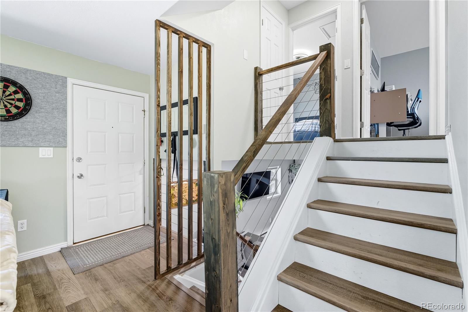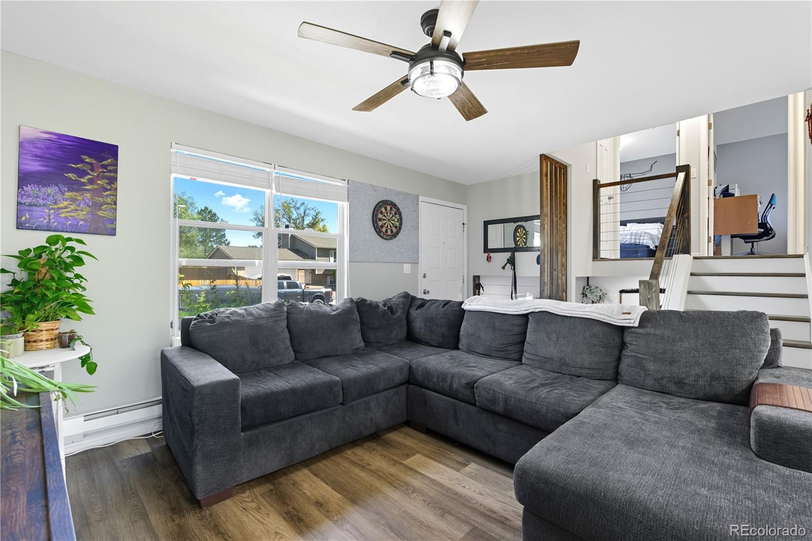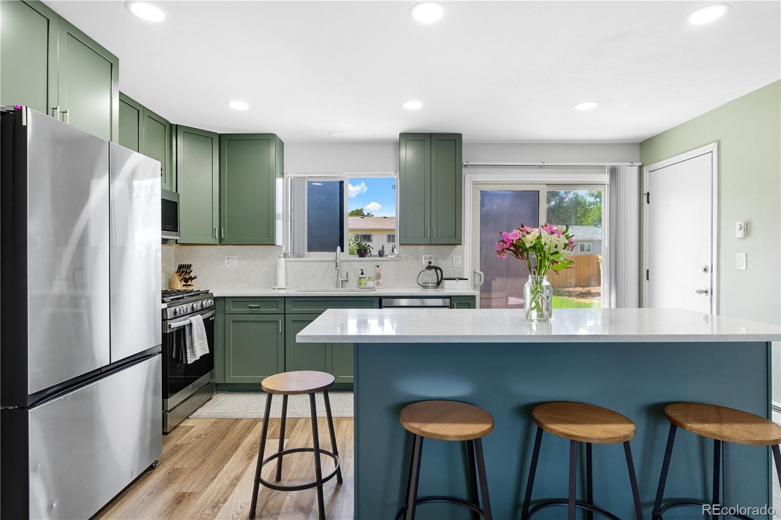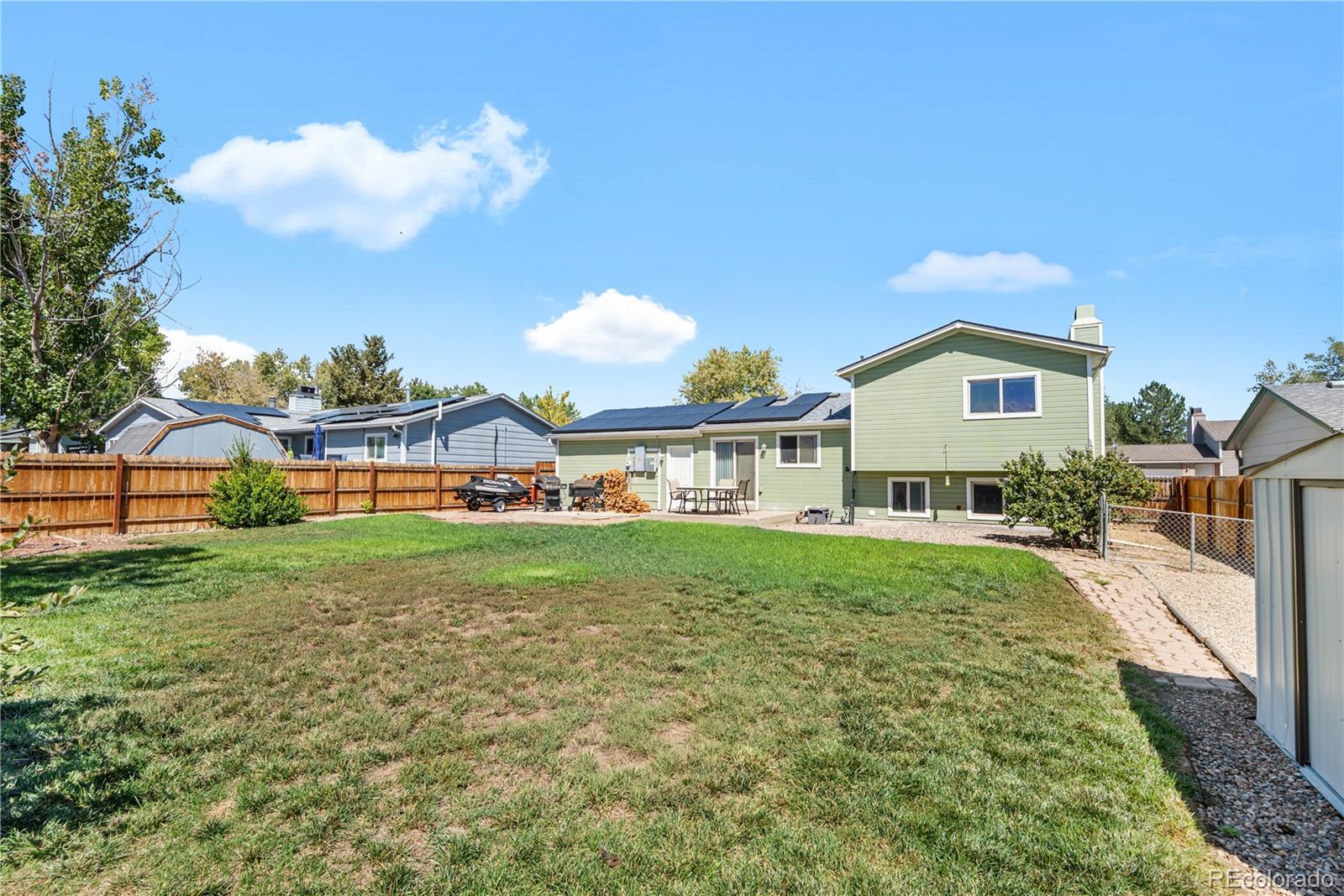 Charming and move-in ready, this updated 1970s home in Thornton offers 1,320 sq ft of comfortable living space with modern touches throughout. Nestled in a quiet neighborhood with easy access to parks, schools, Denver, DIA, lakes, and scenic trails, this home blends convenience with comfort. Inside, you’ll find thoughtful updates including fresh laminate flooring on the main and upper levels, newer carpet on the lower level, and stylish custom stair rails. The redesigned kitchen has been opened to the main floor living room, creating a bright, welcoming flow. Enjoy stainless steel appliances, new cabinets, a spacious kitchen island, and beautiful quartz countertops. Both bathrooms have been updated with new cabinetry, modern finishes, and the lower-level bath even features a large newer stackable washer and dryer. The south-facing backyard is fully fenced, offering plenty of room for play, gardening, and gatherings, along with a shed for extra storage. There's plenty of parking and storage space on this property. Whether you’re enjoying the open living spaces inside or relaxing in the spacious backyard, this home offers a wonderful balance of updates, charm, and location.