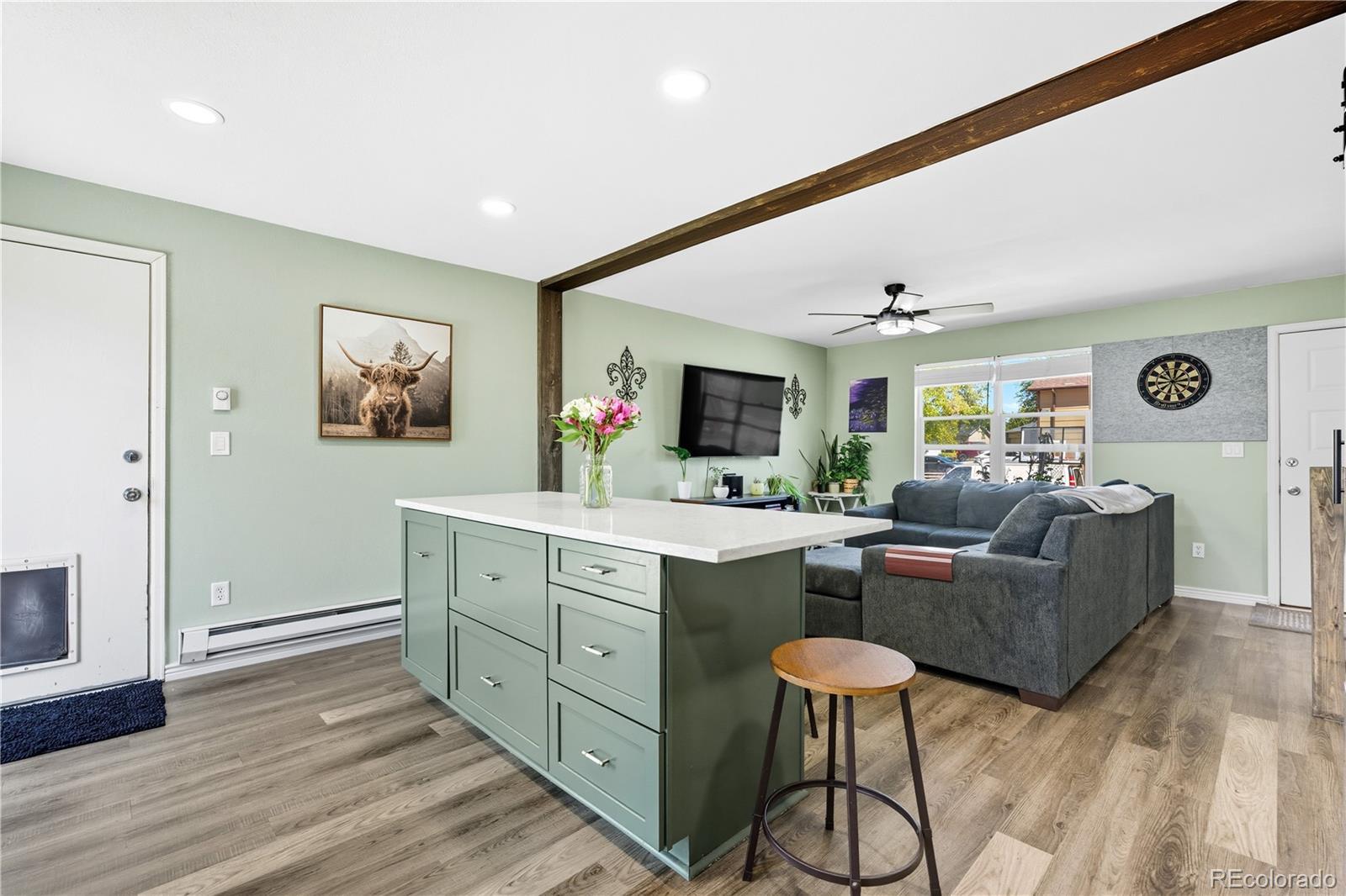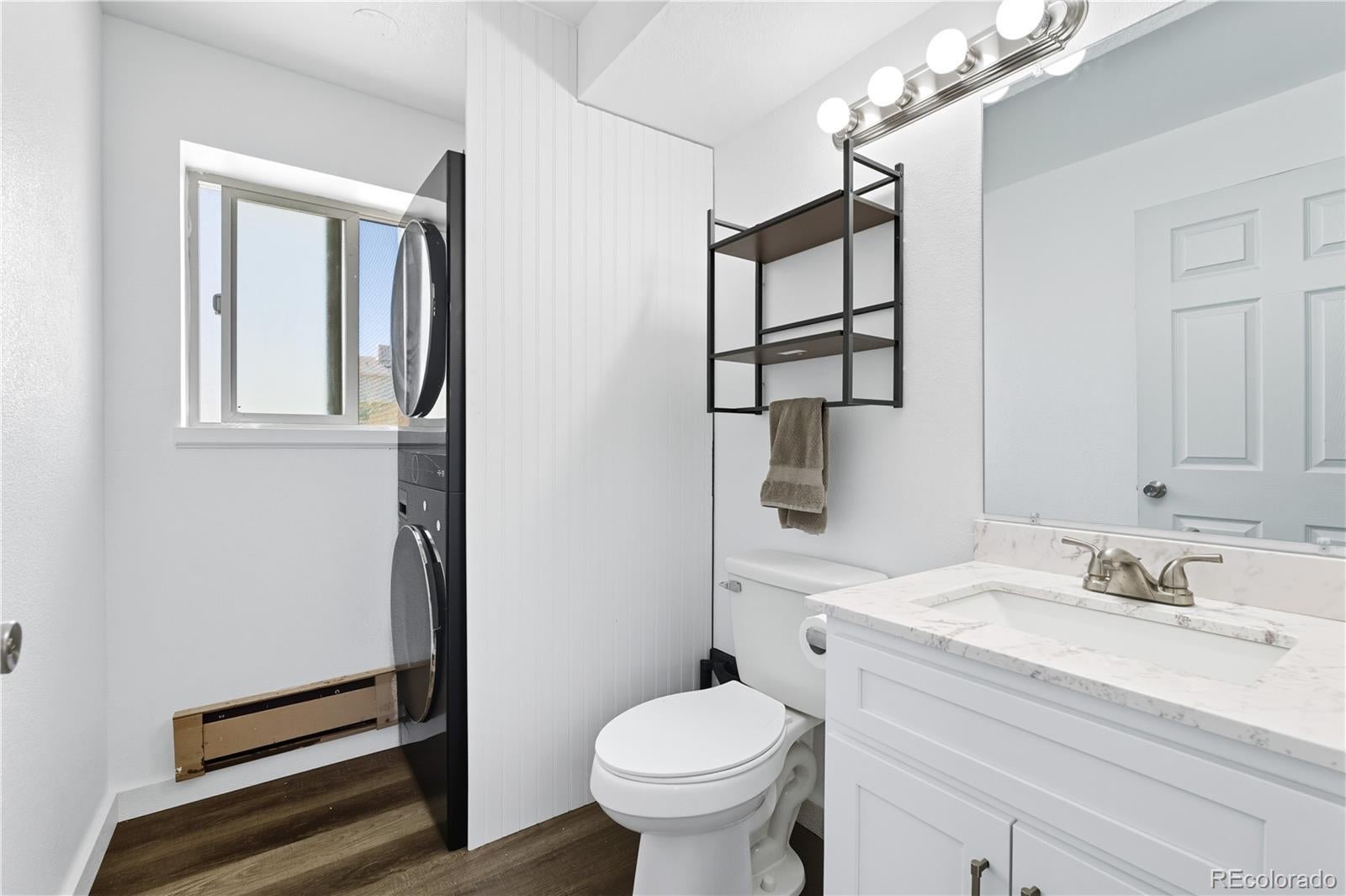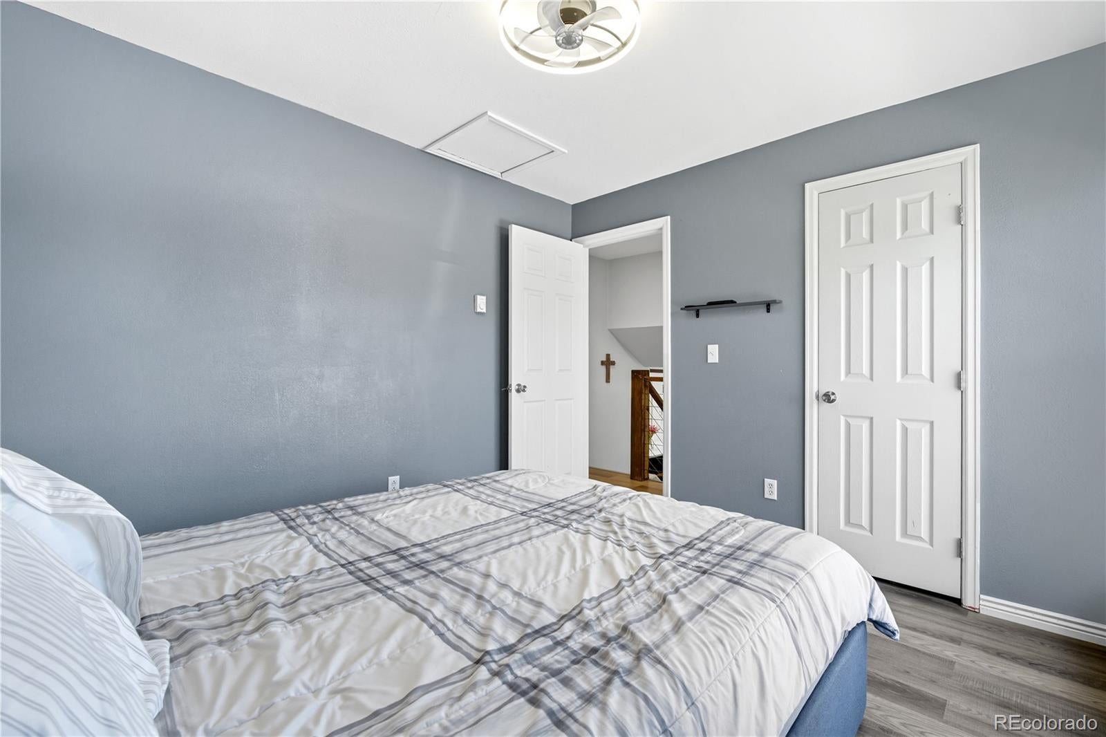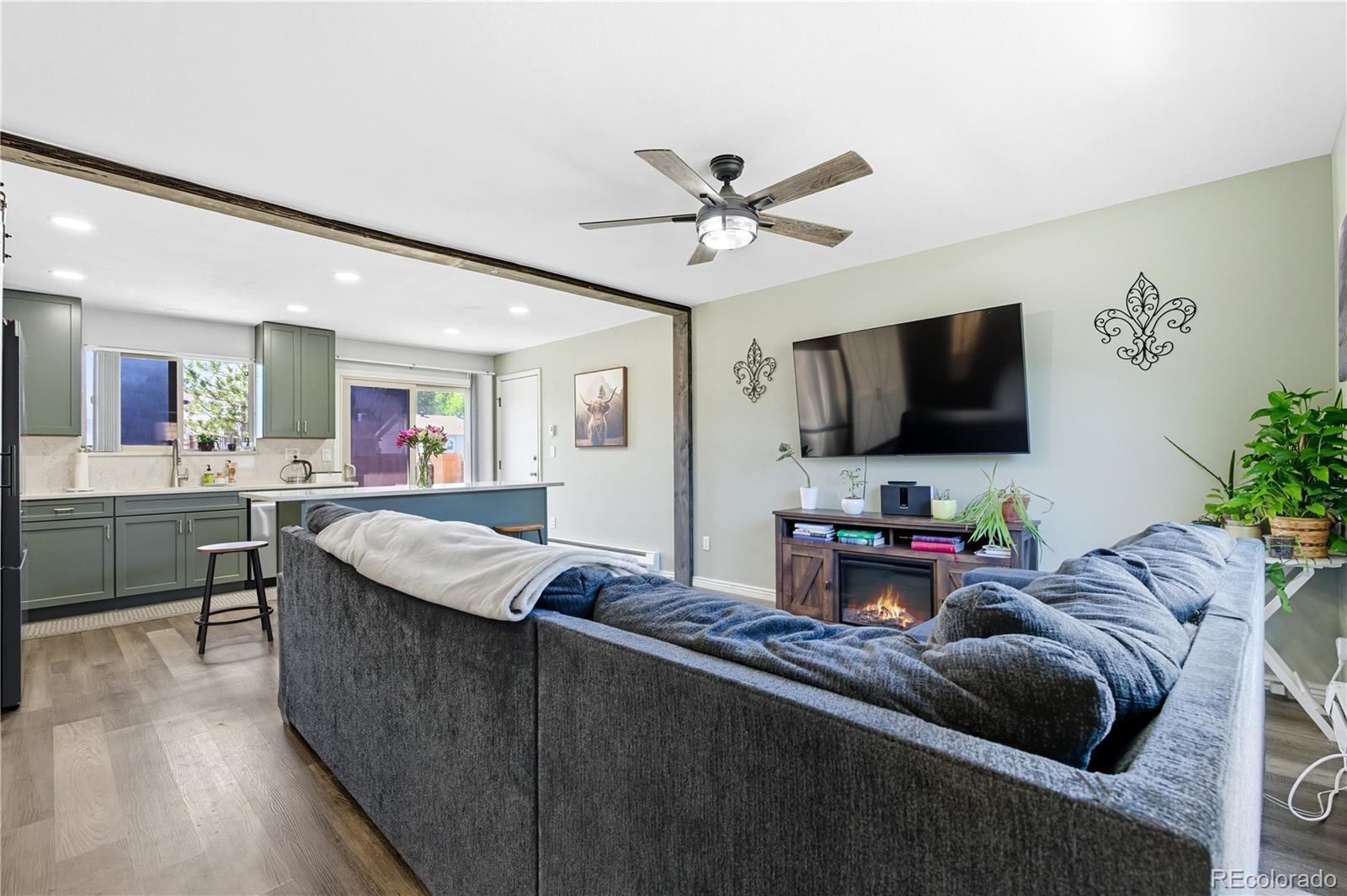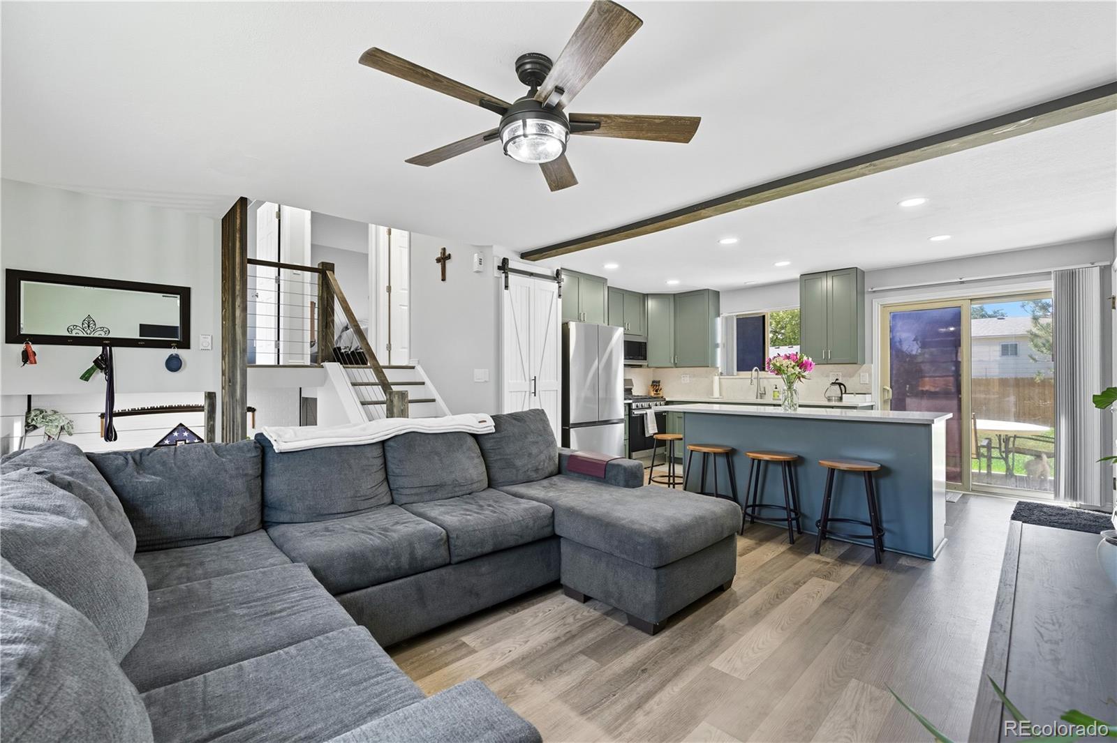 Charming and move-in ready, this updated 1970s home in Thornton offers 1,320 sq ft of comfortable living space with modern touches throughout. Nestled in a quiet neighborhood with easy access to parks, schools, Denver, DIA, lakes, and scenic trails, this home blends convenience with comfort. Inside, you’ll find thoughtful updates including fresh laminate flooring on the main and upper levels, newer carpet on the lower level, and stylish custom stair rails. The redesigned kitchen has been opened to the main floor living room, creating a bright, welcoming flow. Enjoy stainless steel appliances, new cabinets, a spacious kitchen island, and beautiful quartz countertops. Both bathrooms have been updated with new cabinetry, modern finishes, and the lower-level bath even features a large newer stackable washer and dryer. The south-facing backyard is fully fenced, offering plenty of room for play, gardening, and gatherings, along with a shed for extra storage. There's plenty of parking and storage space on this property. Whether you’re enjoying the open living spaces inside or relaxing in the spacious backyard, this home offers a wonderful balance of updates, charm, and location.